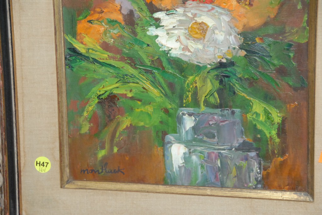 Edith Montlack American 1914 – 2003 oil on canvas still life of flowers signed lower left Montlack.