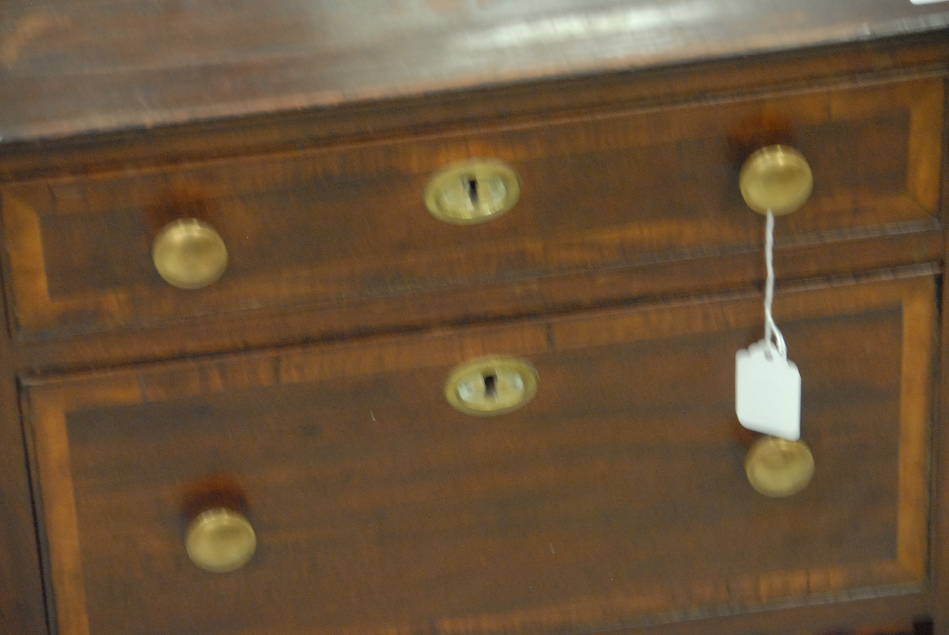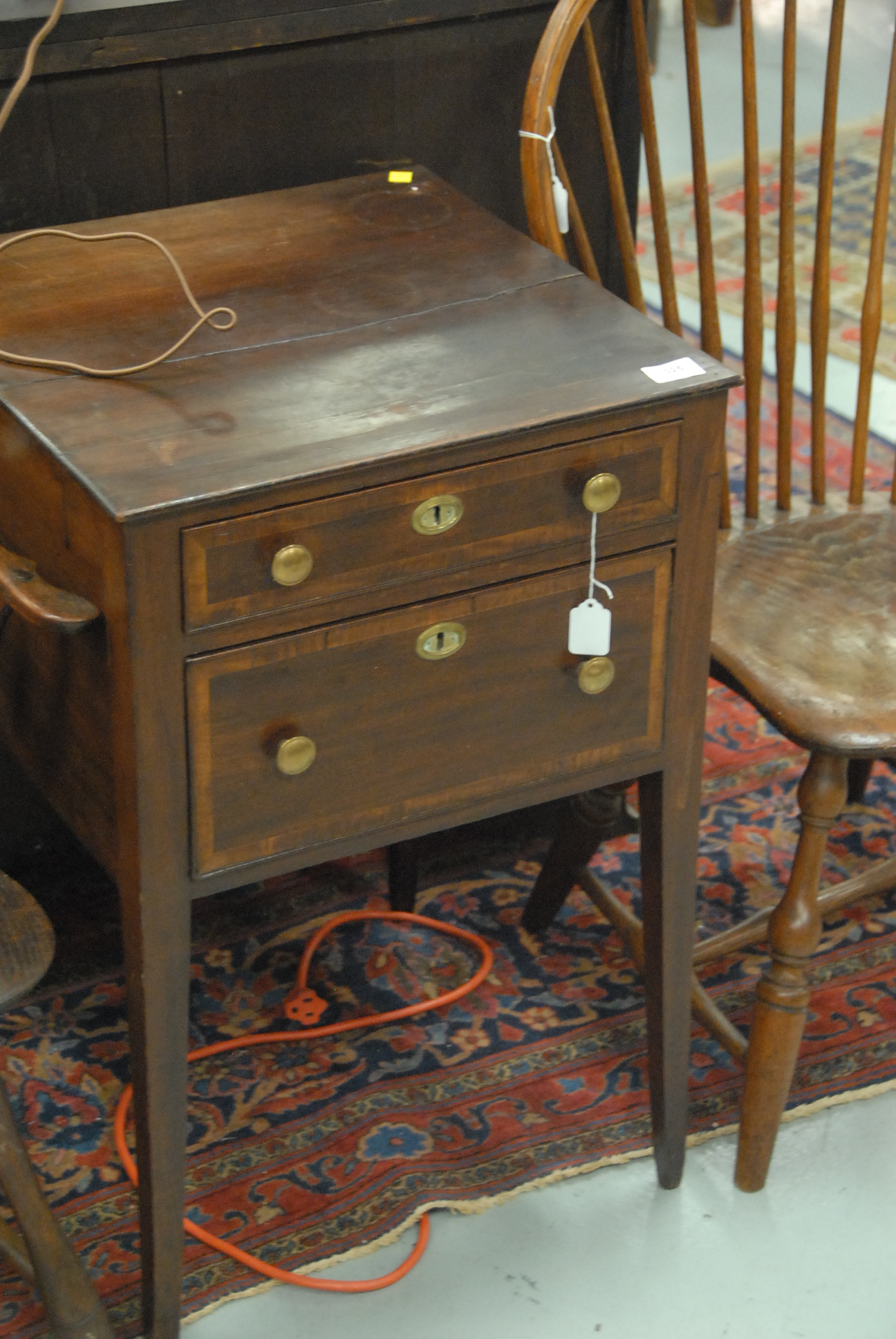 Lot 325: Federal mahogany stand with two drawers on square tapered legs, circa 1790-1810. ht. 28 1/2 in. top: 18 1/2 x 18 1/2