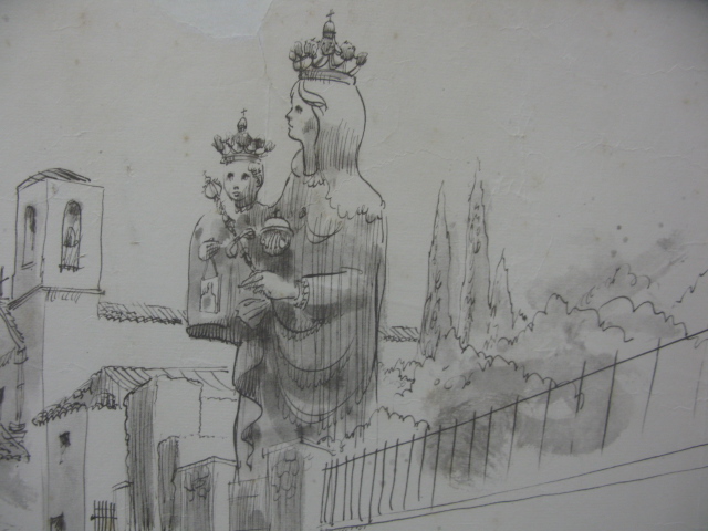 Lot 325: Group lot to include a pen and watercolor sketch