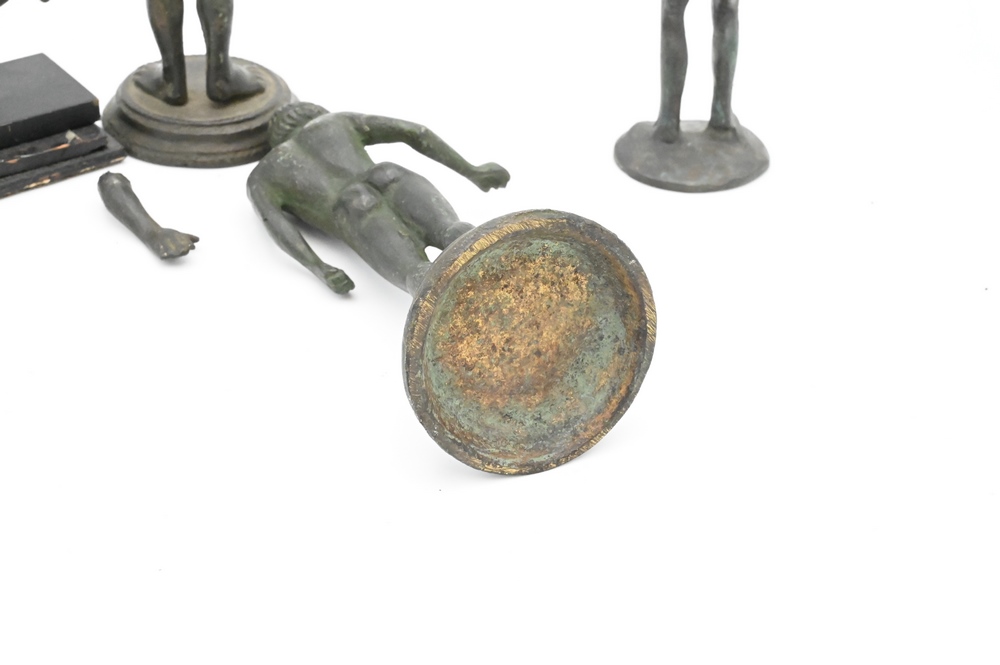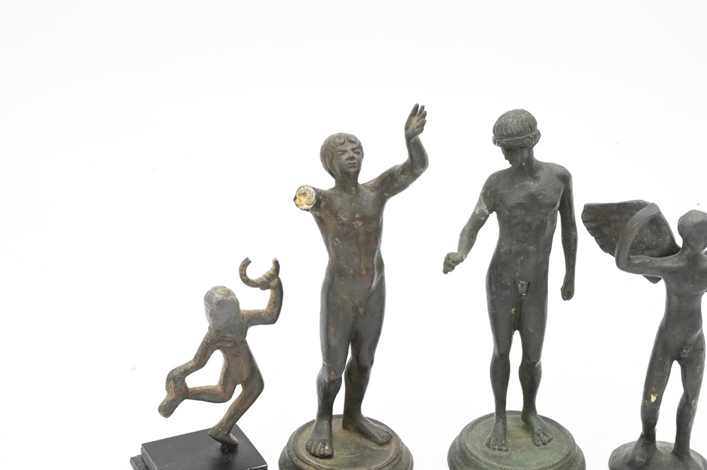 Group of Four Bronze Figures, one having disconnected arm but available, tallest 6 inches. Provenance: Estate of Wallace Bradway, New Haven, CT.