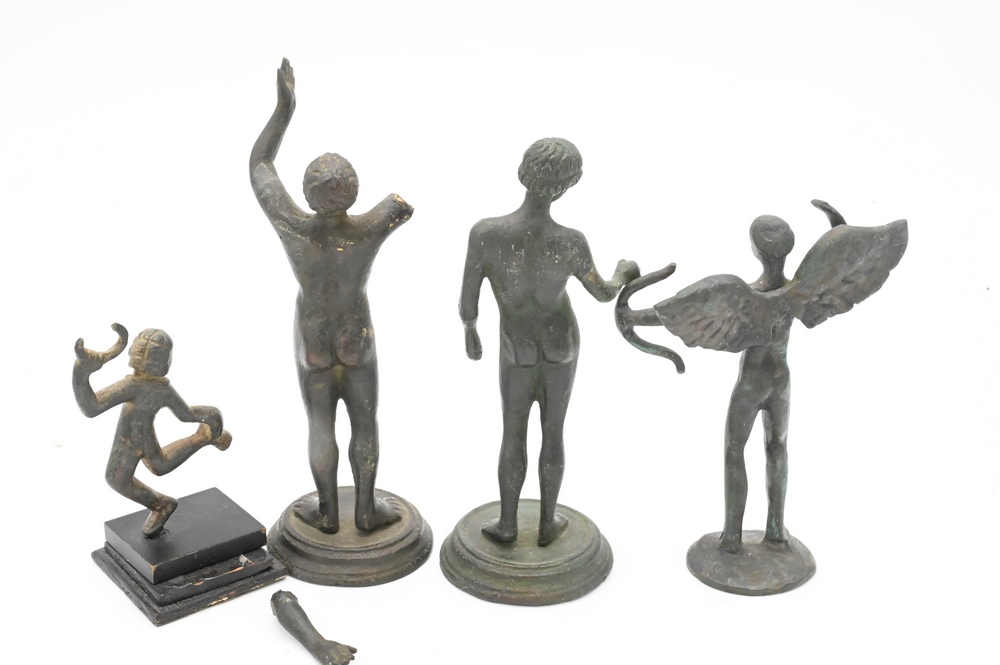 Lot 325: Group of Four Bronze Figures, one having disconnected arm but available, tallest 6 inches. Provenance: Estate of Wallace Bradway, New Haven, CT.