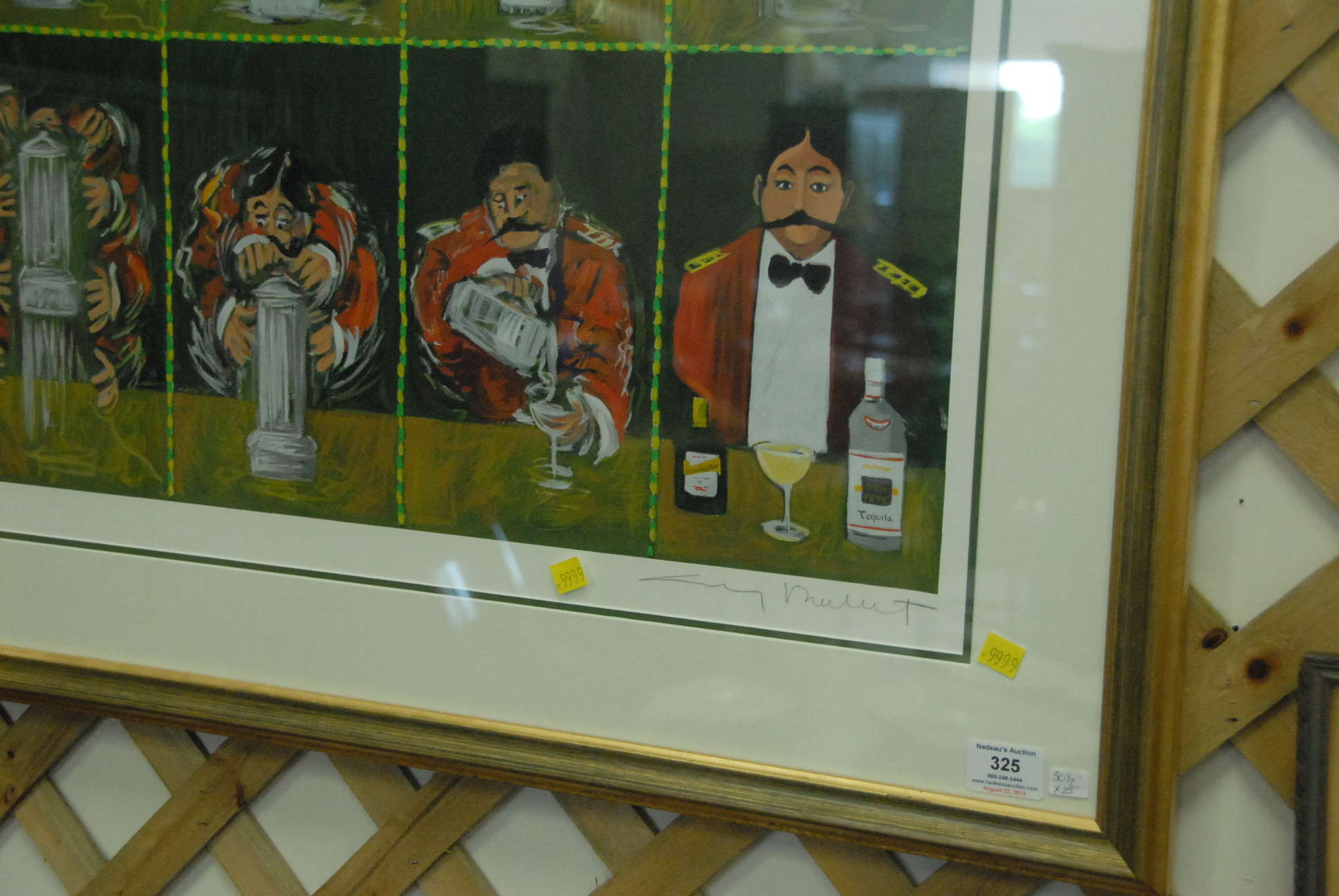 Lithograph Bartenders margarita signed indistinctly, sight size 30 x 20.