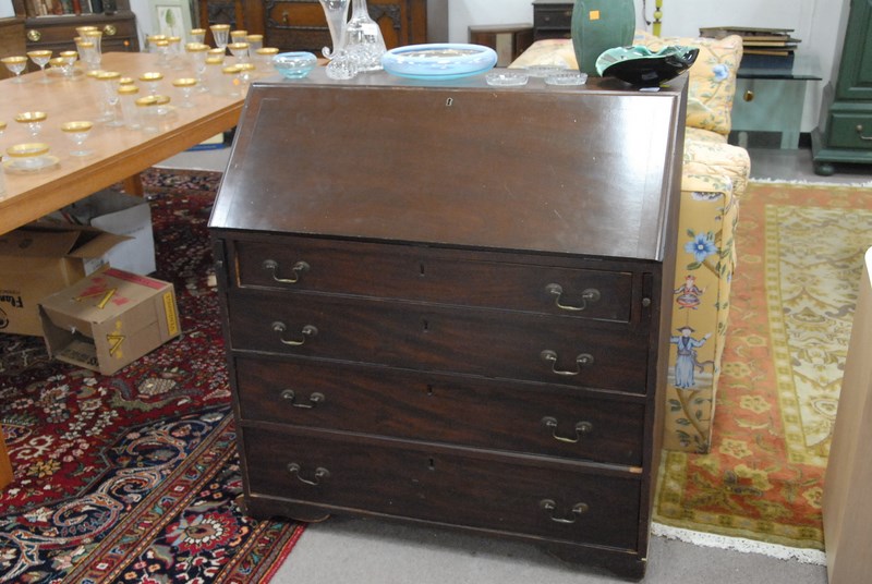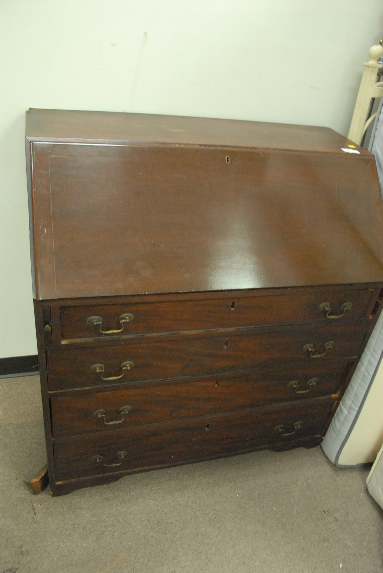 Mahogany slant front desk, circa 1780-1800 no feet. ht. 42in. wd. 40in.