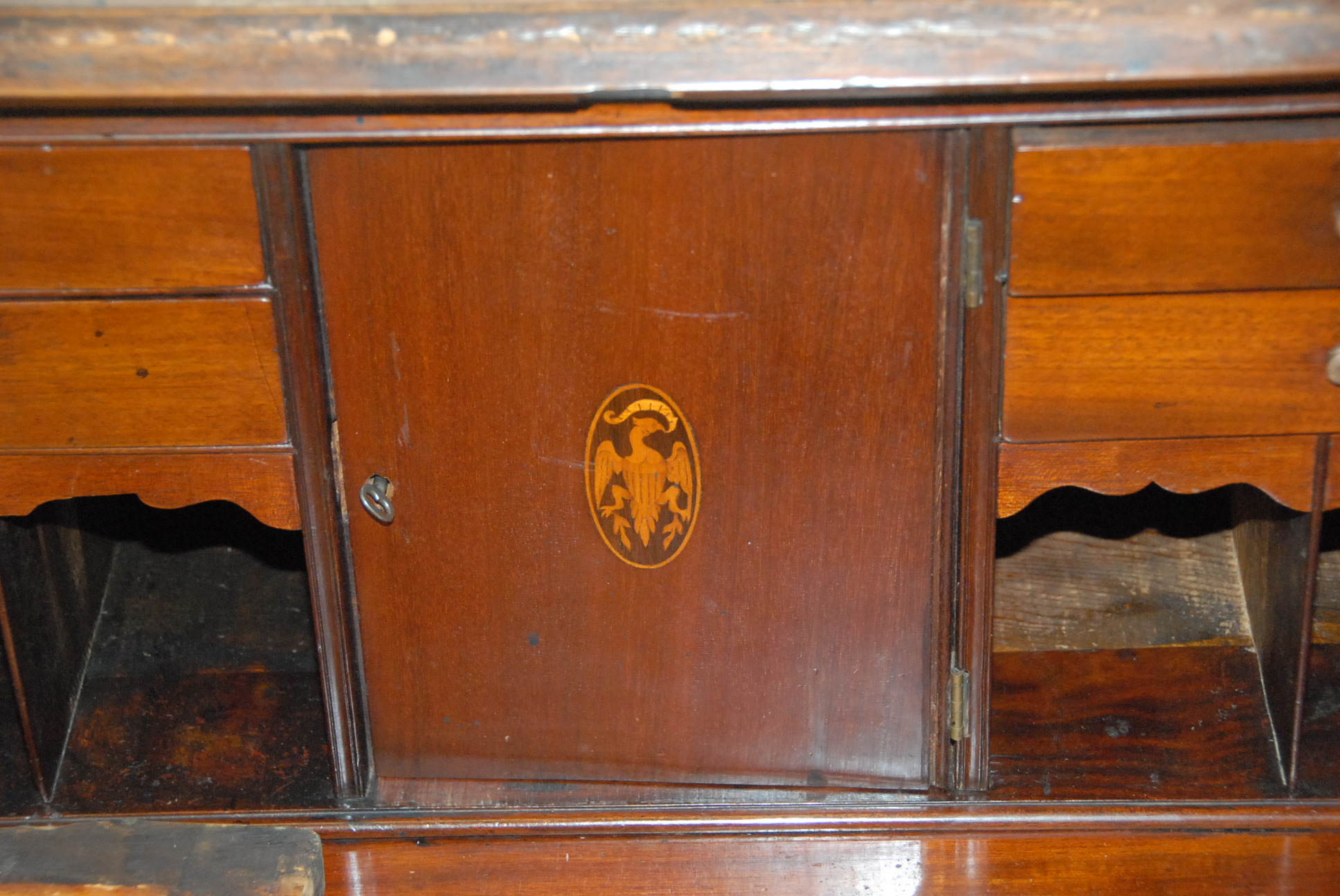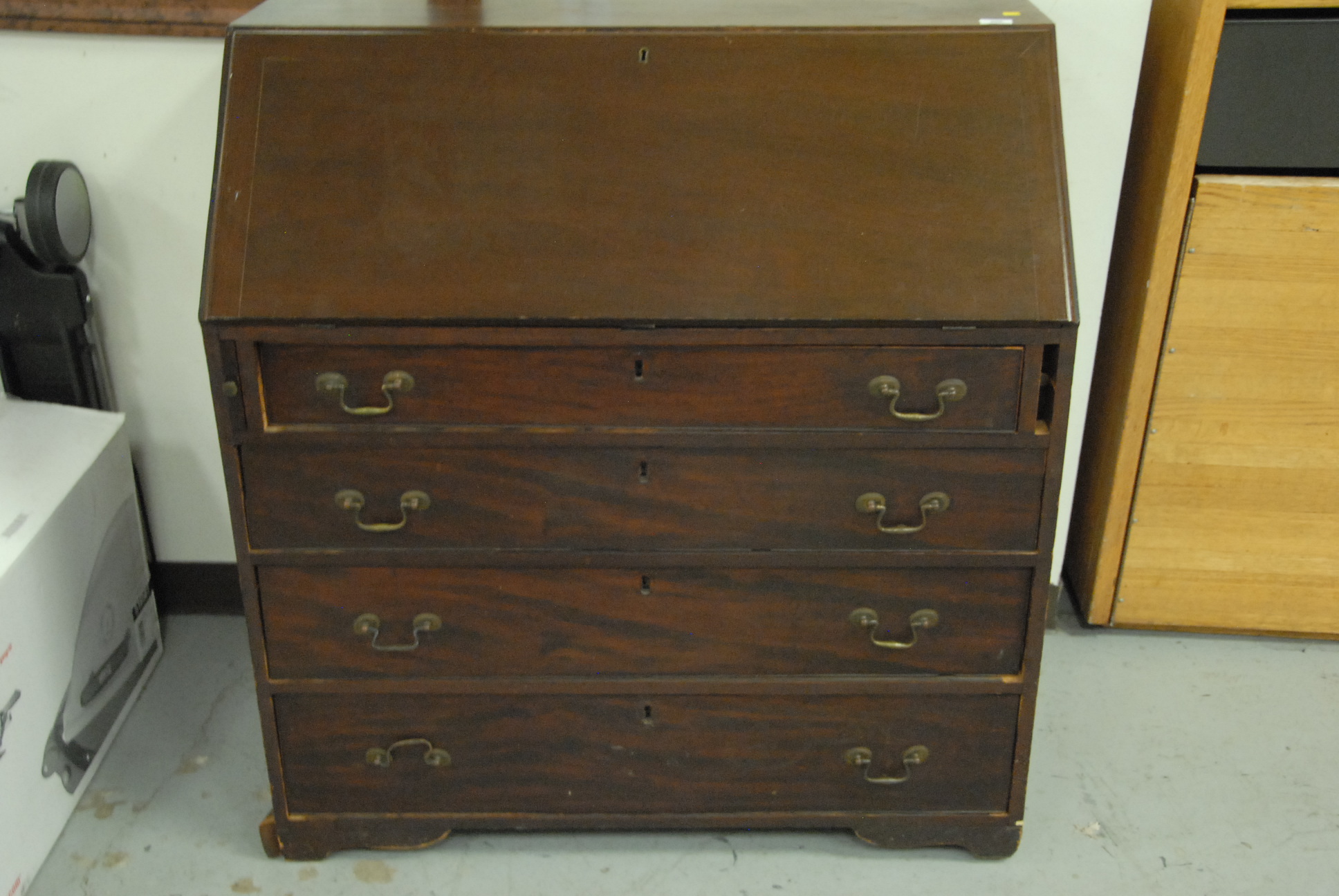 Lot 325: Mahogany slant front desk, circa 1780-1800 no feet. ht. 42in. wd. 40in.