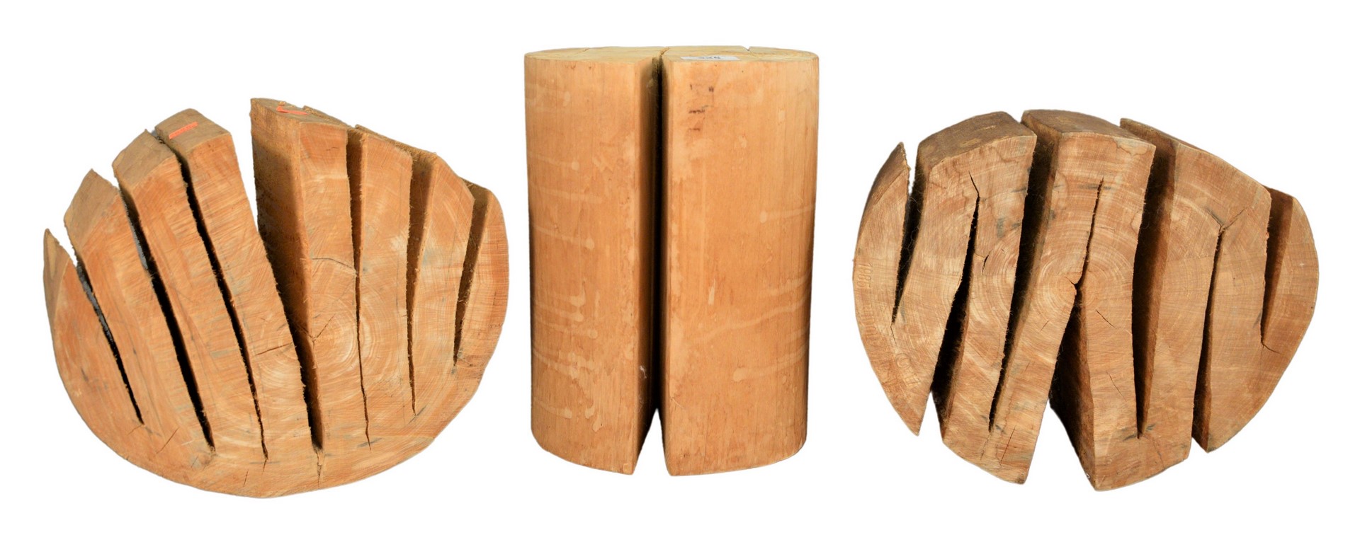 Lot 325: Rudolf Wachter (German, 1923 – 2011), Camp Fire, in three parts, carved wood, each stamped by the artist, one piece: height 10 inches, width 11 1/2 inches, depth 7 inches.