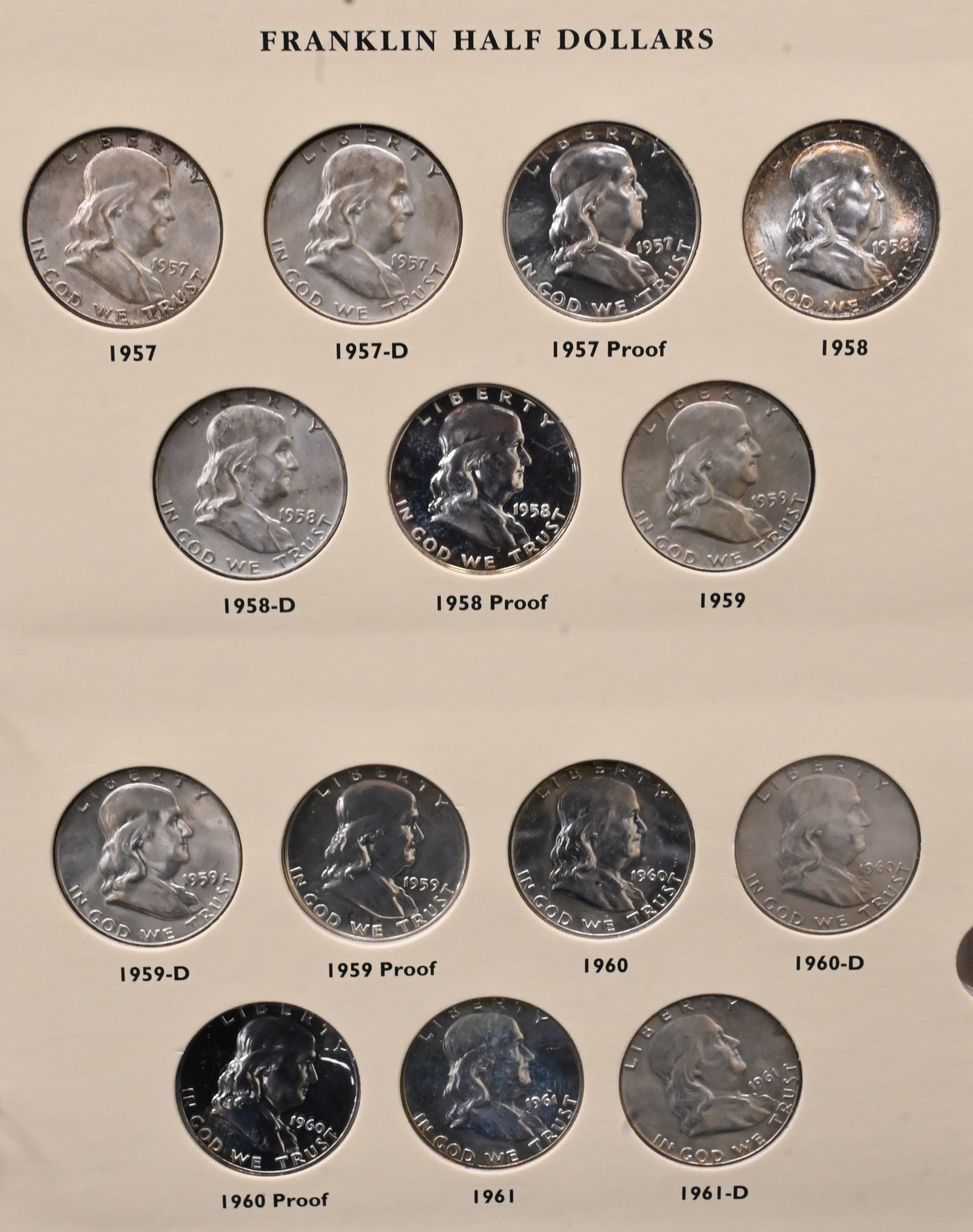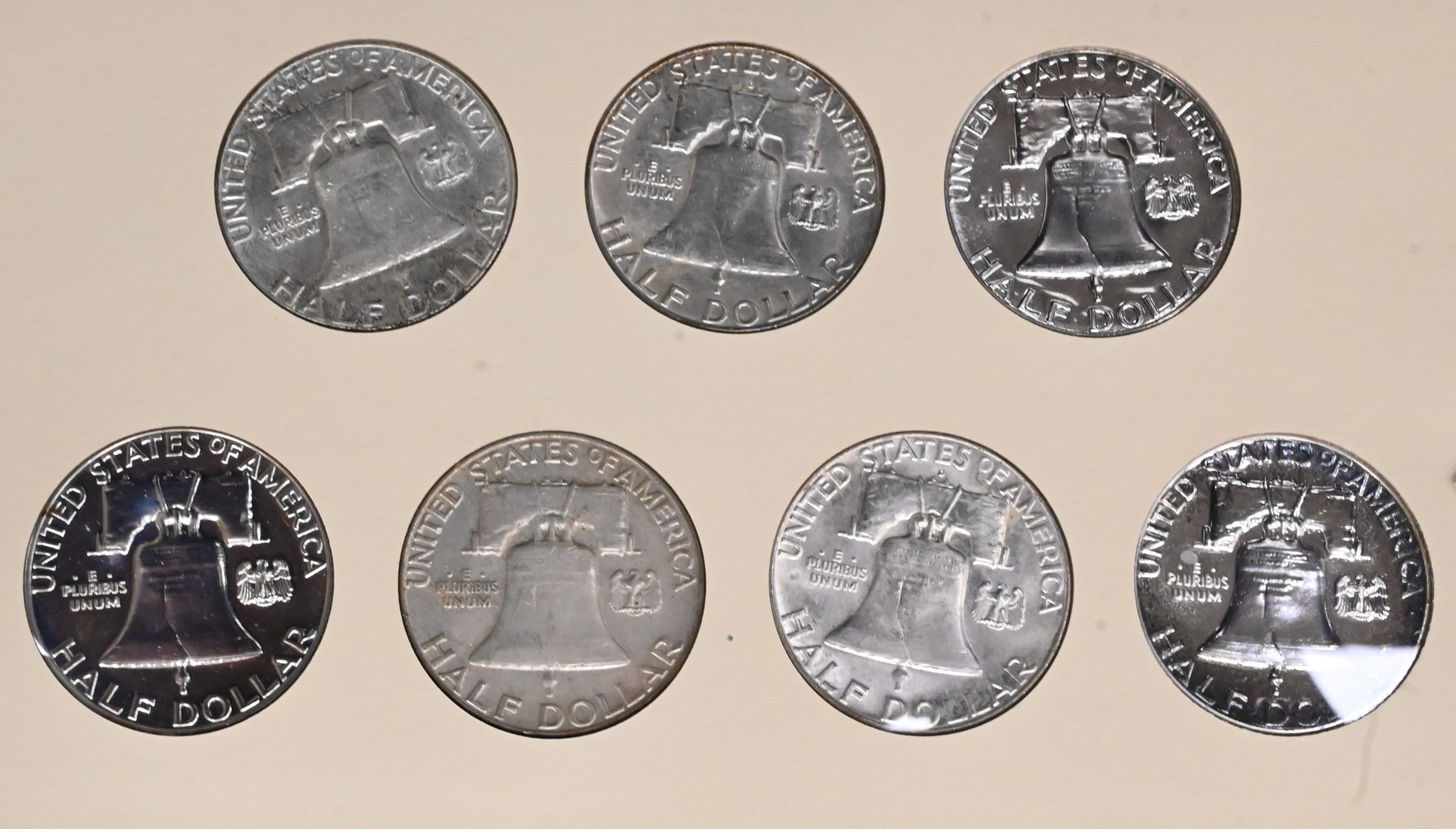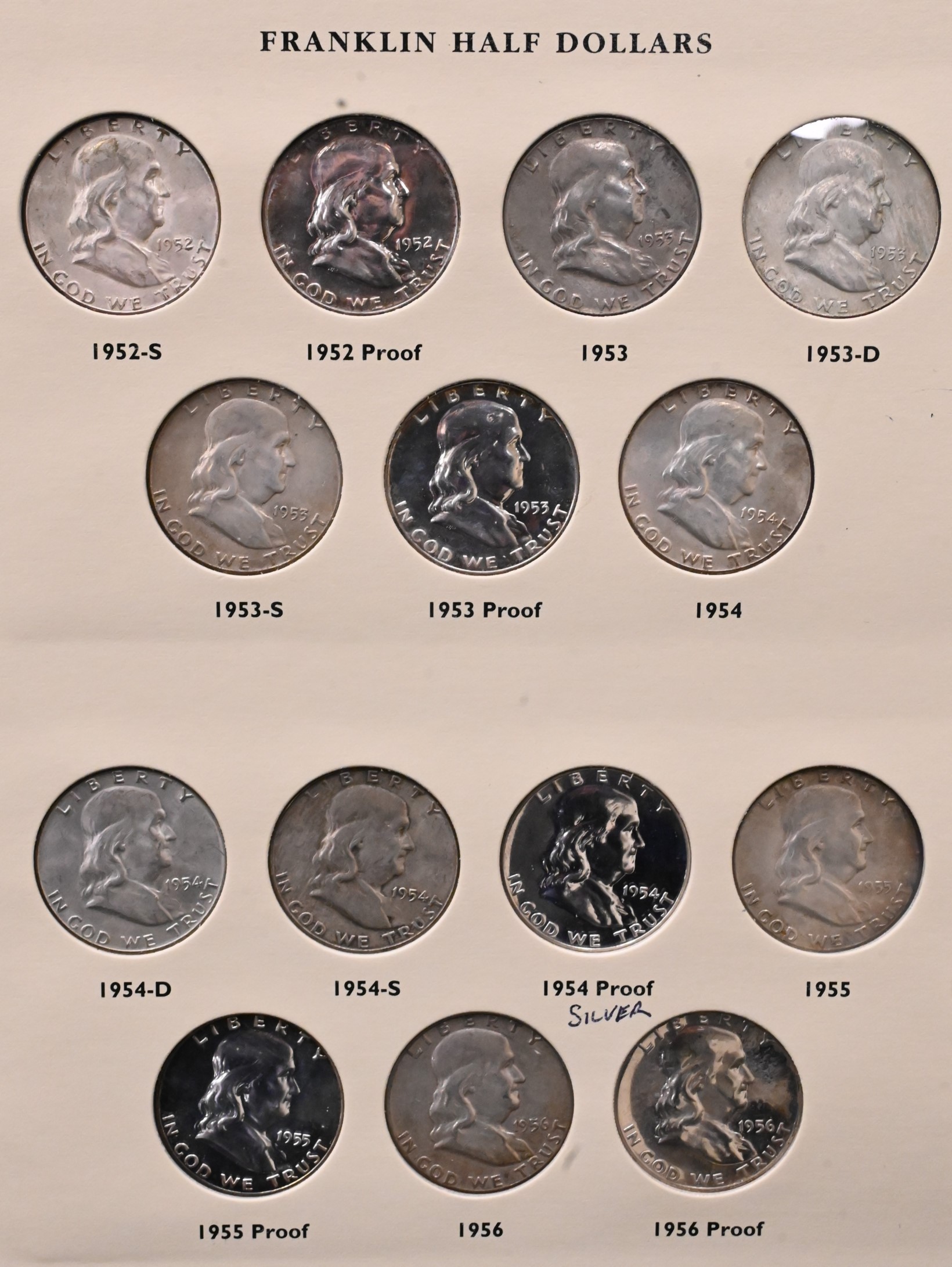 Set of Franklin Halves, 1948 to 1963 $17.50 face 90% plus 14 newer proof halfs