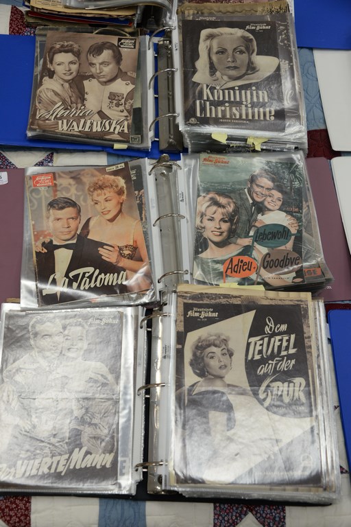 Three binders of Film-Buhne program brochures of Dawn Adams, Michael Caine, Debra Paget, Ray Danton, etc.