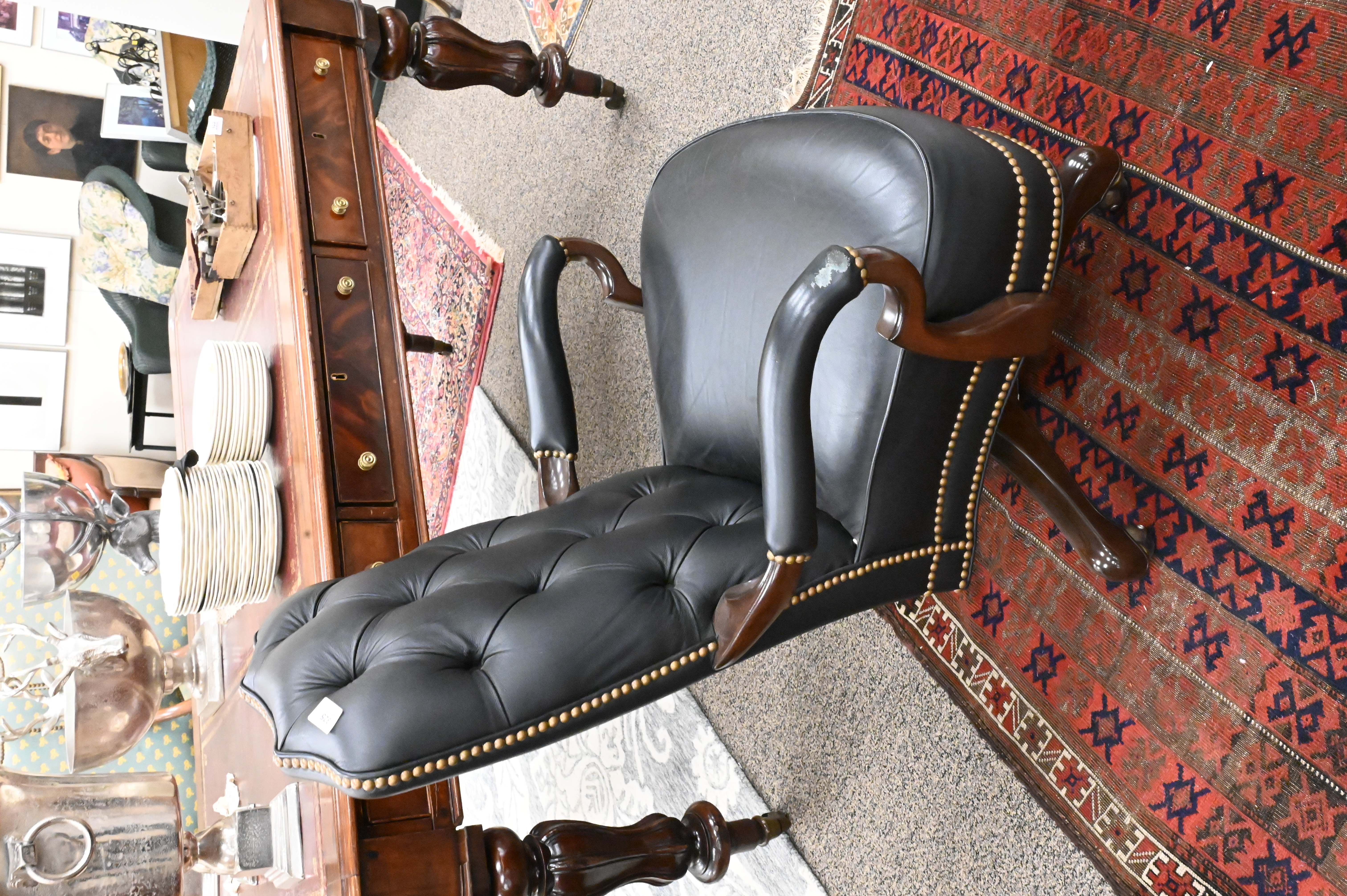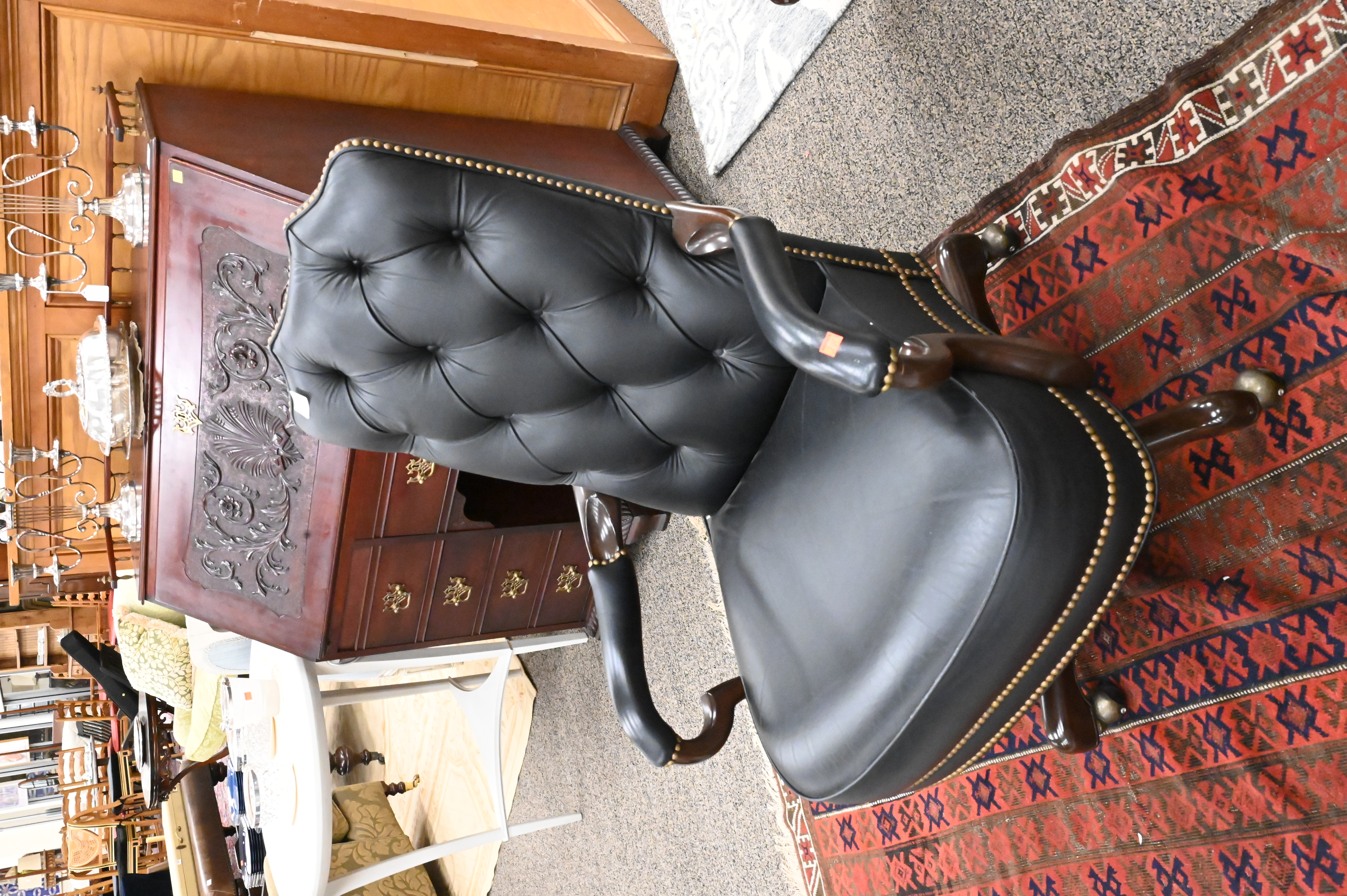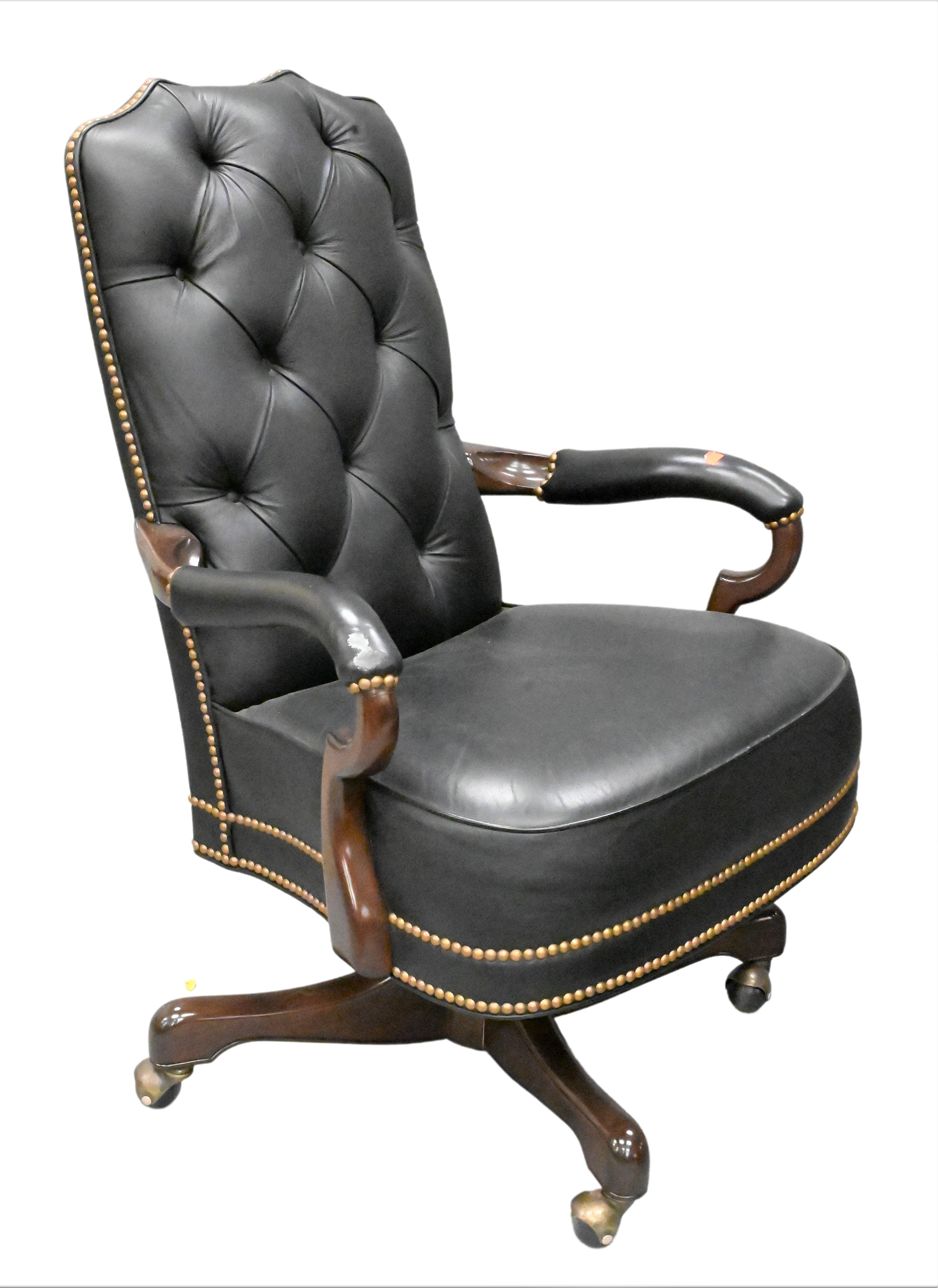 Tufted Leather Executive Swivel Office Chair, abrasion to arm ends, height 39 inches.