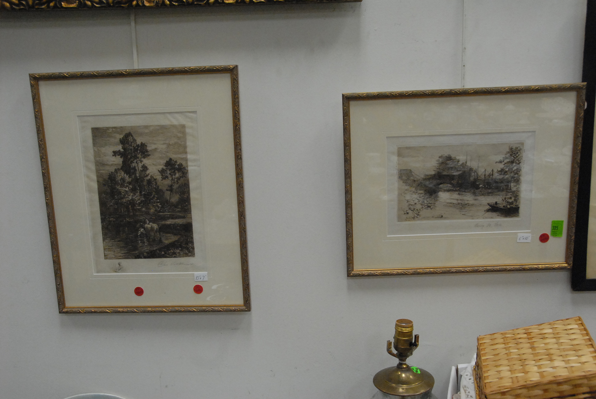 Two framed etchings one signed lower right Charles Volkmar, the other signed lower right Leroy M. Yale.