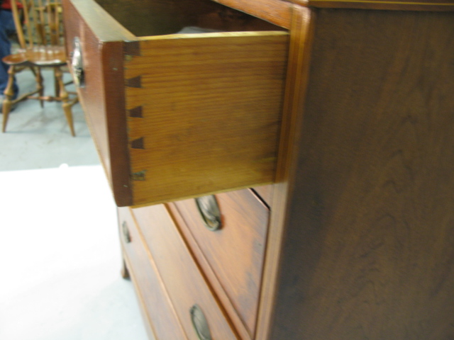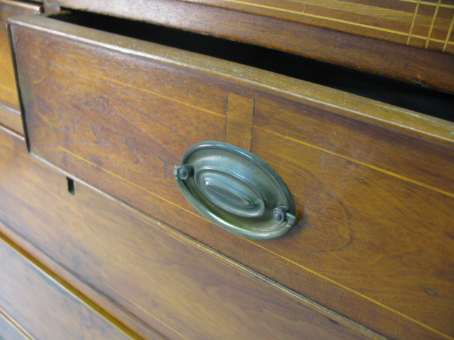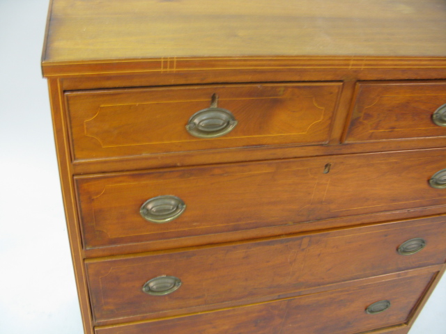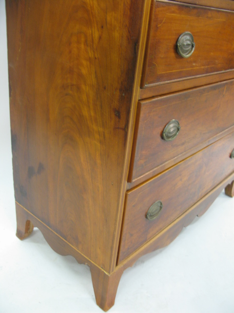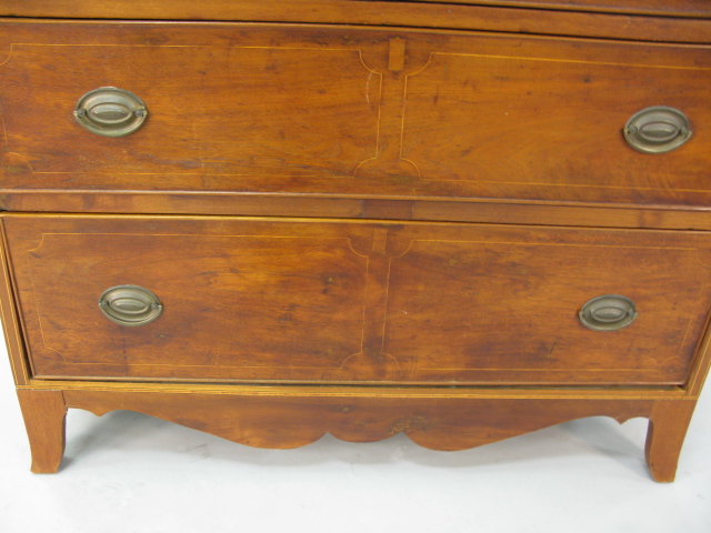 Two over three drawer Federal chest with line inlays on flared French feet.