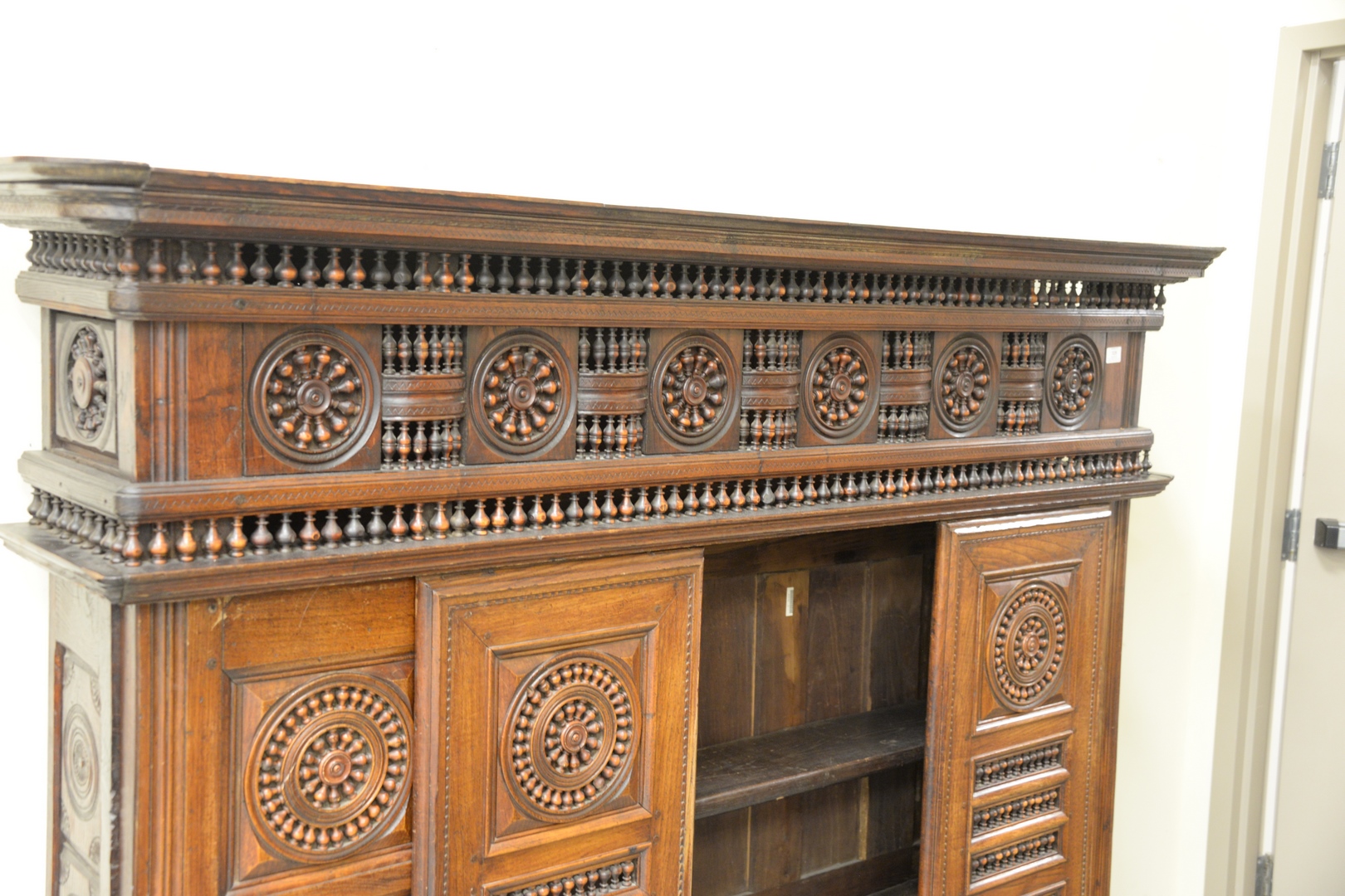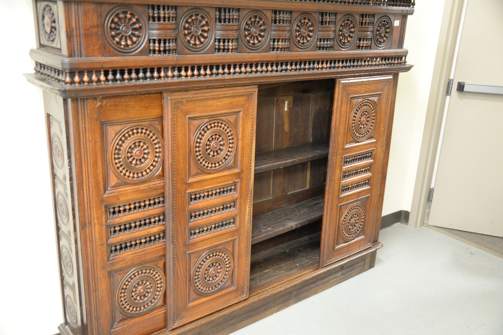 Lot 325: Walnut Two Part Cabinet with sliding doors, and carved spindles late 18th century – early 19th century, possibly Moorish or French h…
