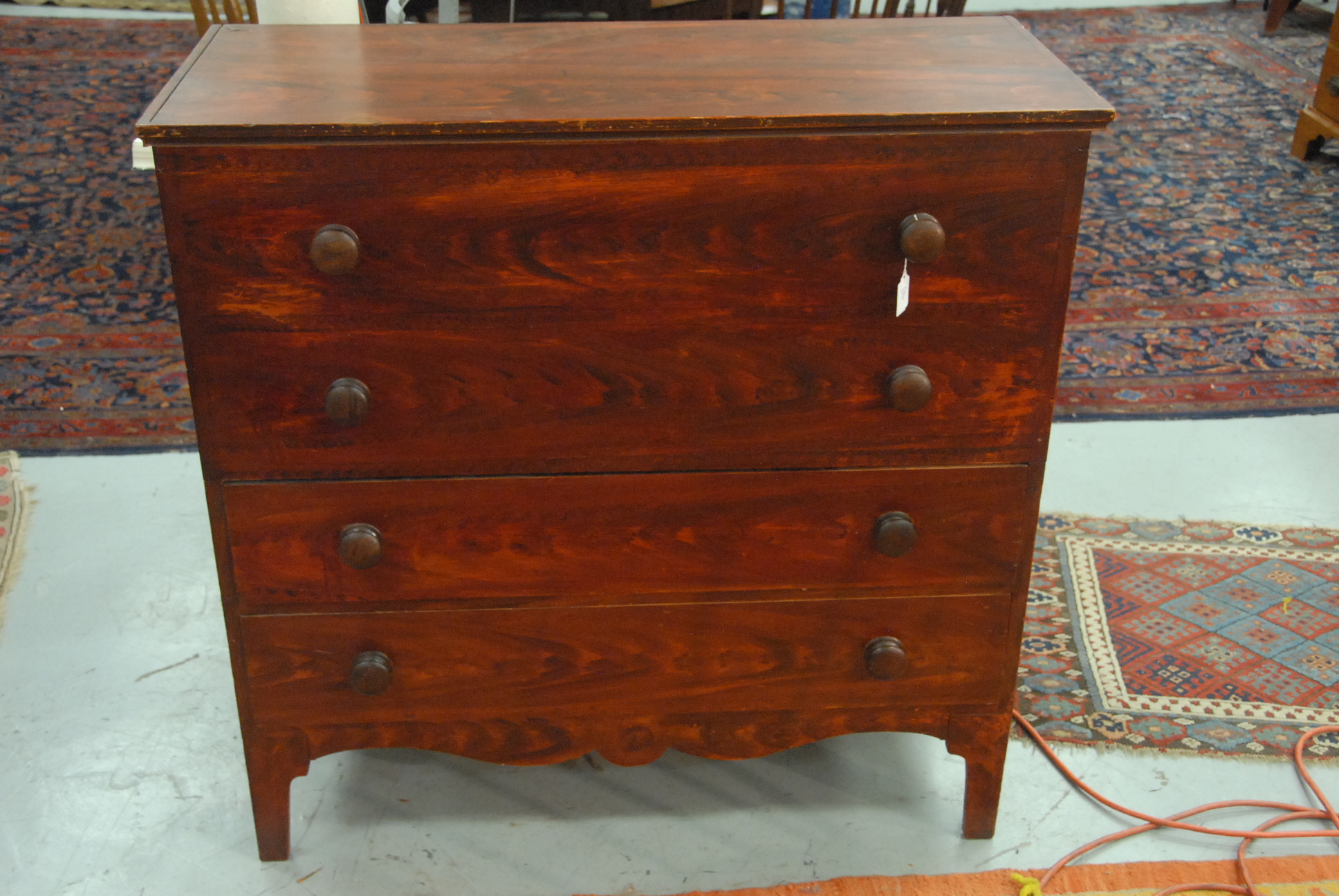 Lot 326: Blanket chest with lift top over two false drawers over two drawers on bracket base with original grain paint. ht. 39 in. wd. 38 1/2 in.