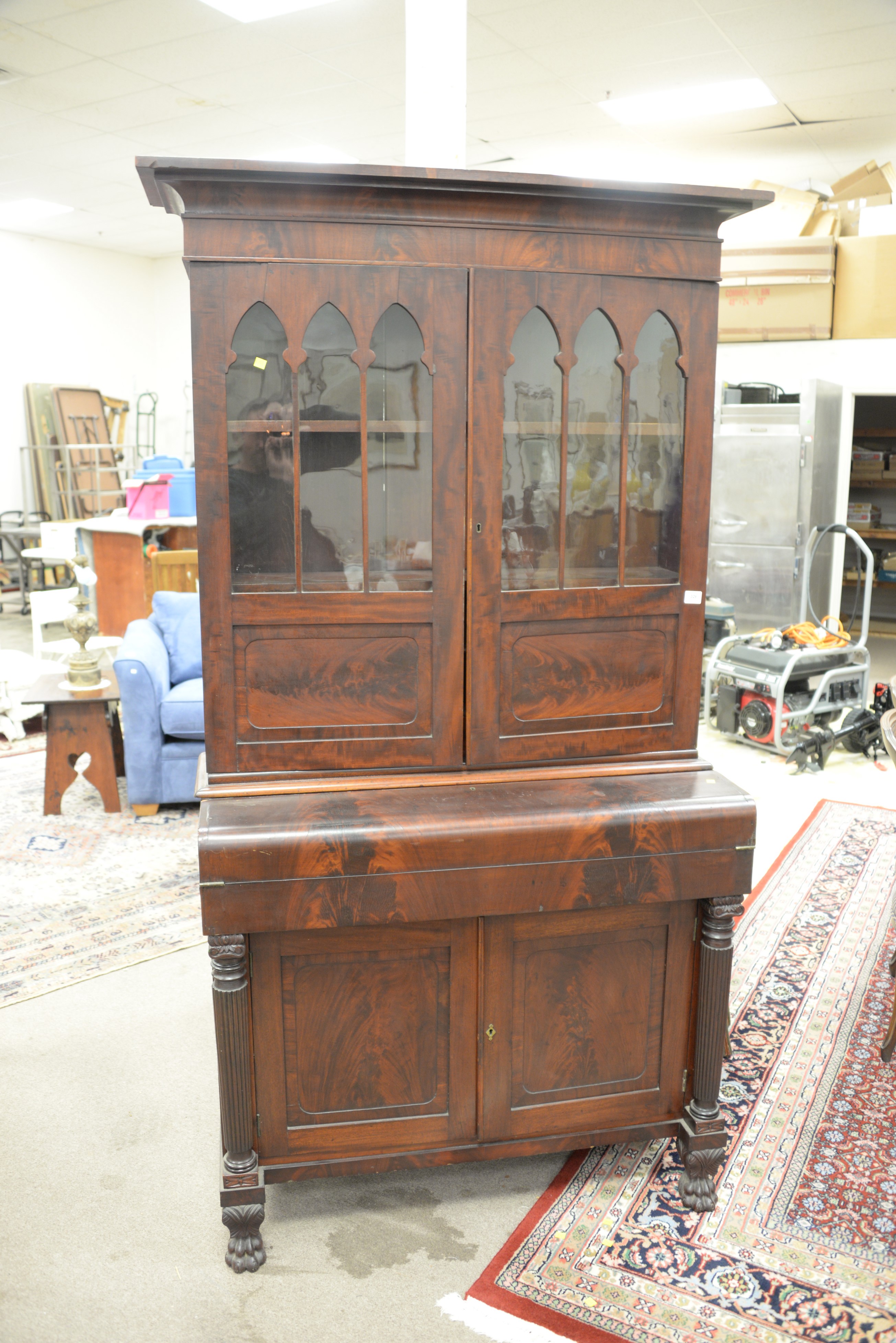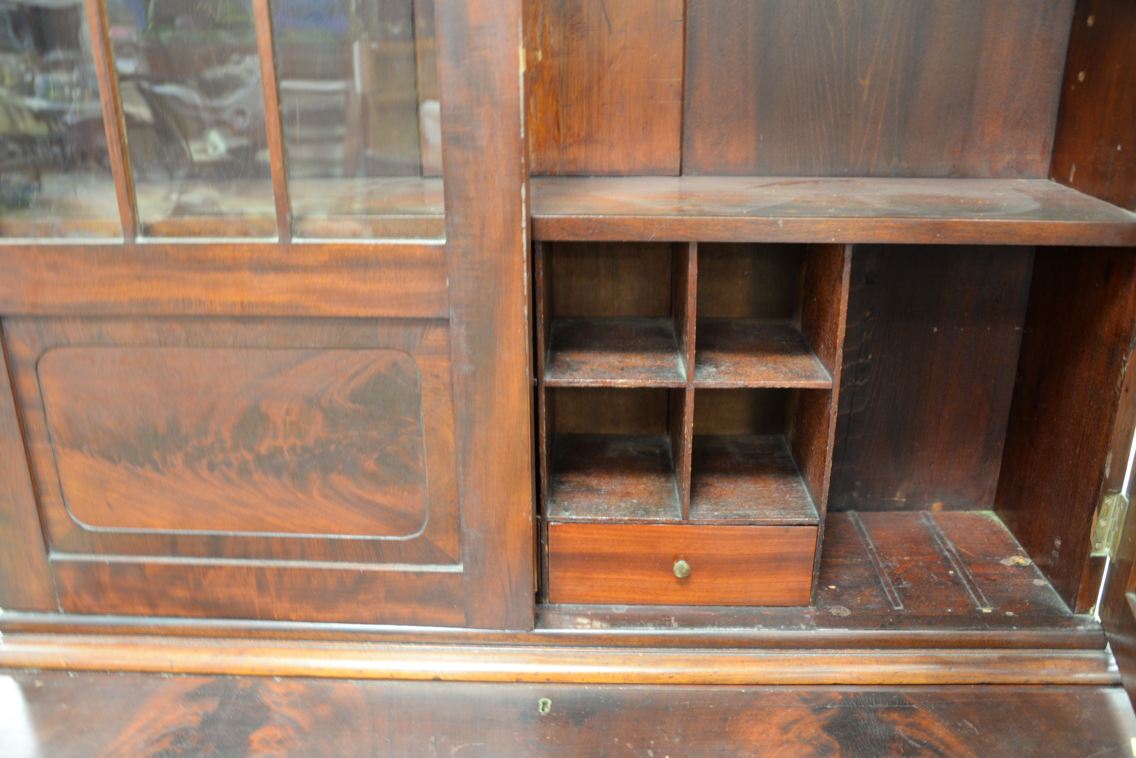 Empire mahogany secretary desk in two parts. ht. 84 in. wd. 42 in. dp. 19 in.