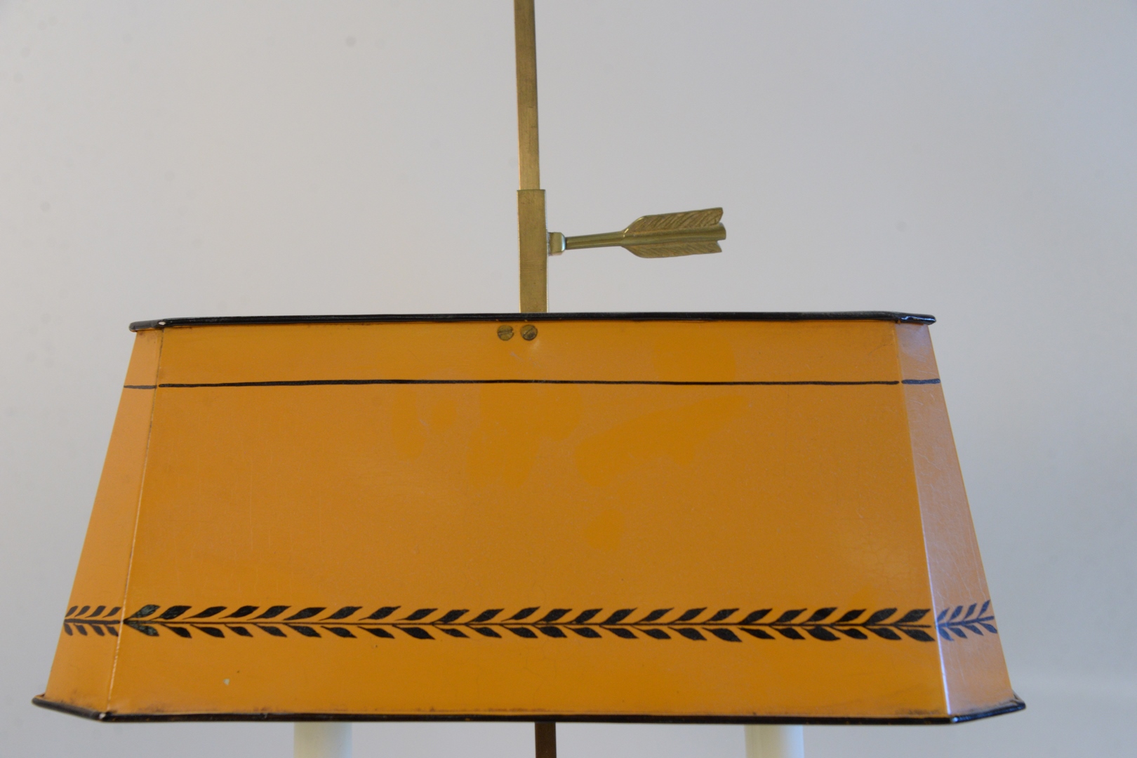 French Bouillotte Brass Table Lamp, having orange told shade, with 2 lights, total height 26 inches.