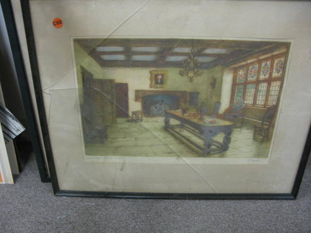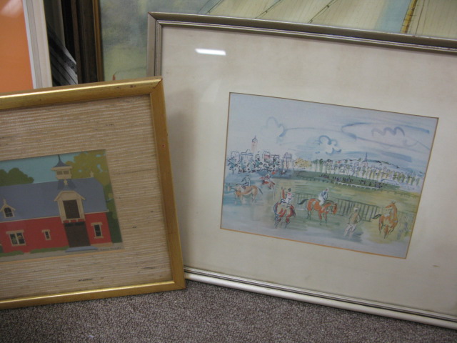 Large group of 9 prints including one with a sailboat with orange striped sails