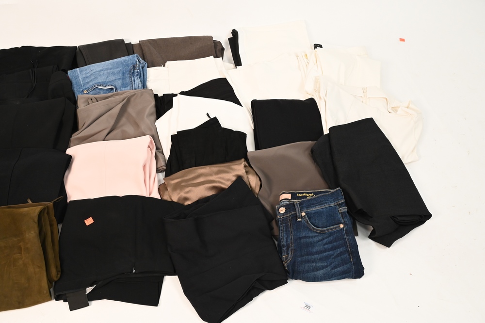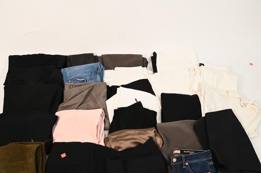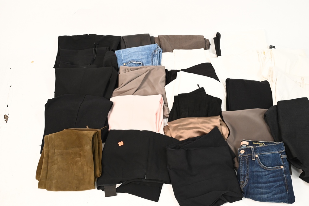 Large Lot of Designer Pants, to include Akris, Cambio, Armani, Zara, along with others, inseams 28″ – 32″, waist size small, condition consistent with normal wear.