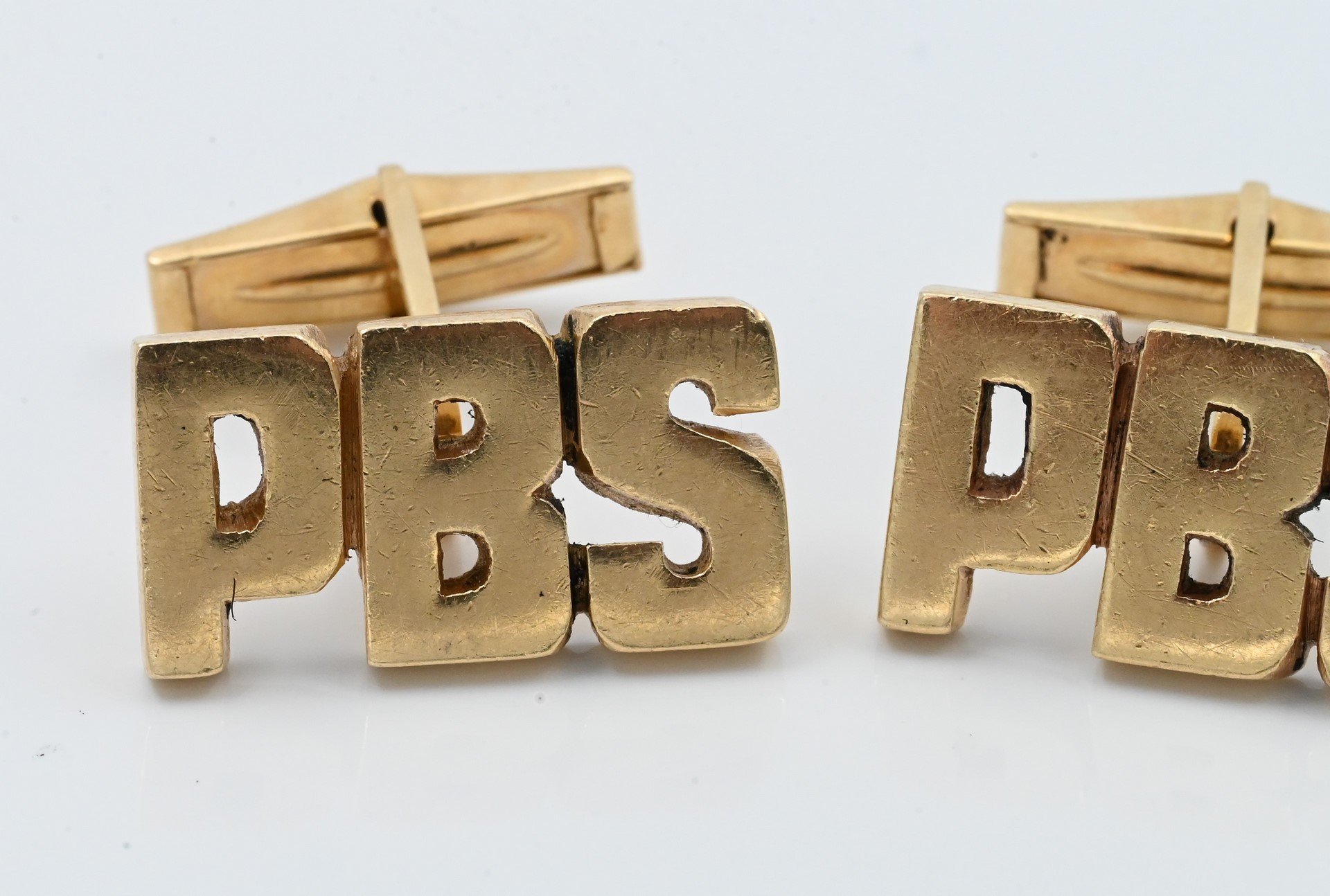 Lot 326: Pair of 14K Yellow Gold Initial Cufflinks “PBS”