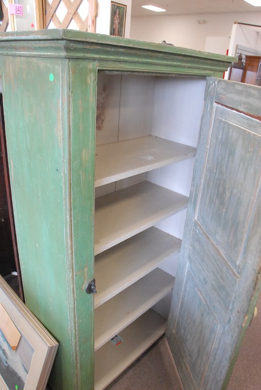Primitive style one door cupboard, ht. 64, wd. 32.