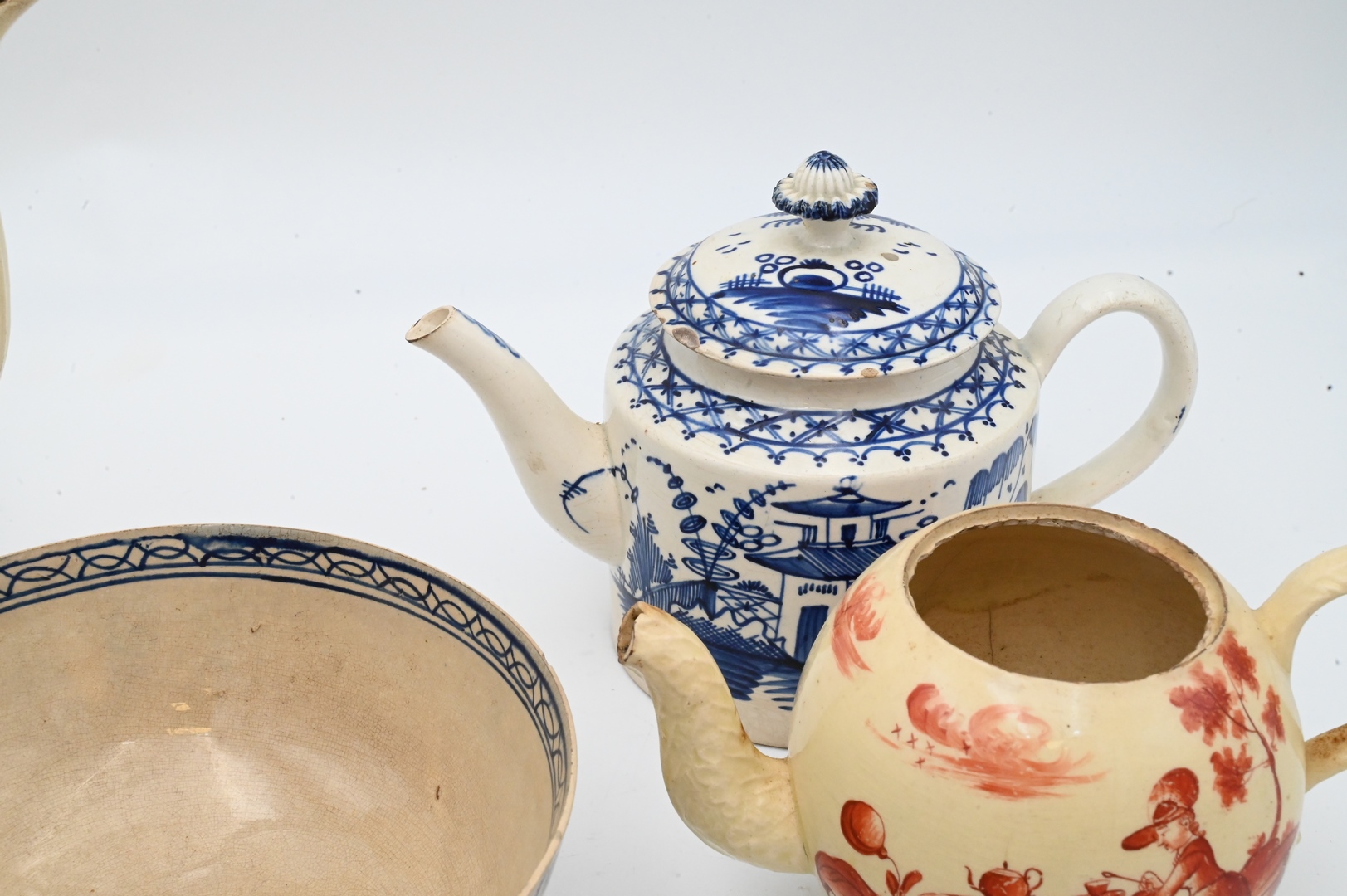 Lot 326: Seven Piece Group of Softpaste Teapots and Assorted Porcelain