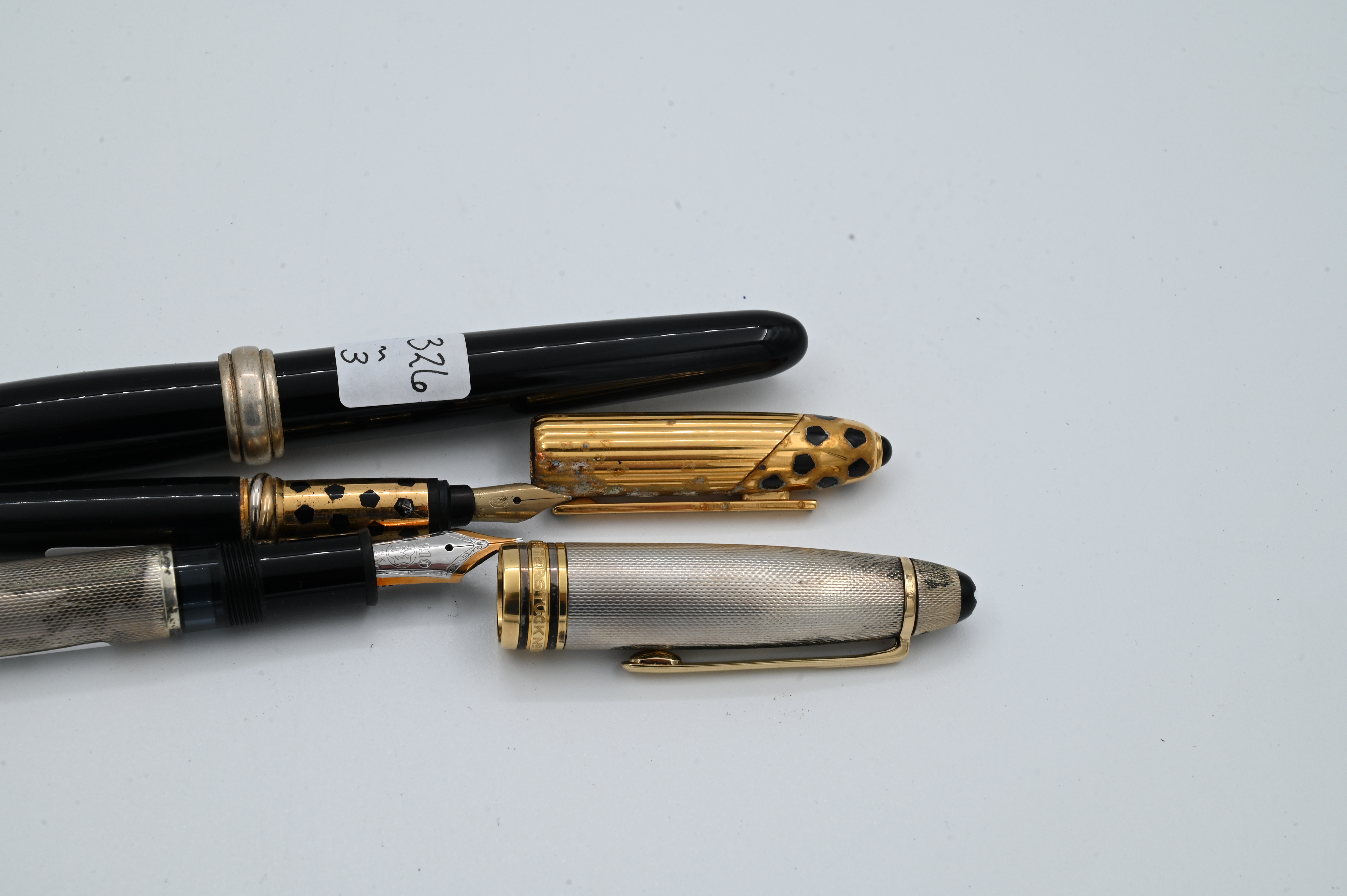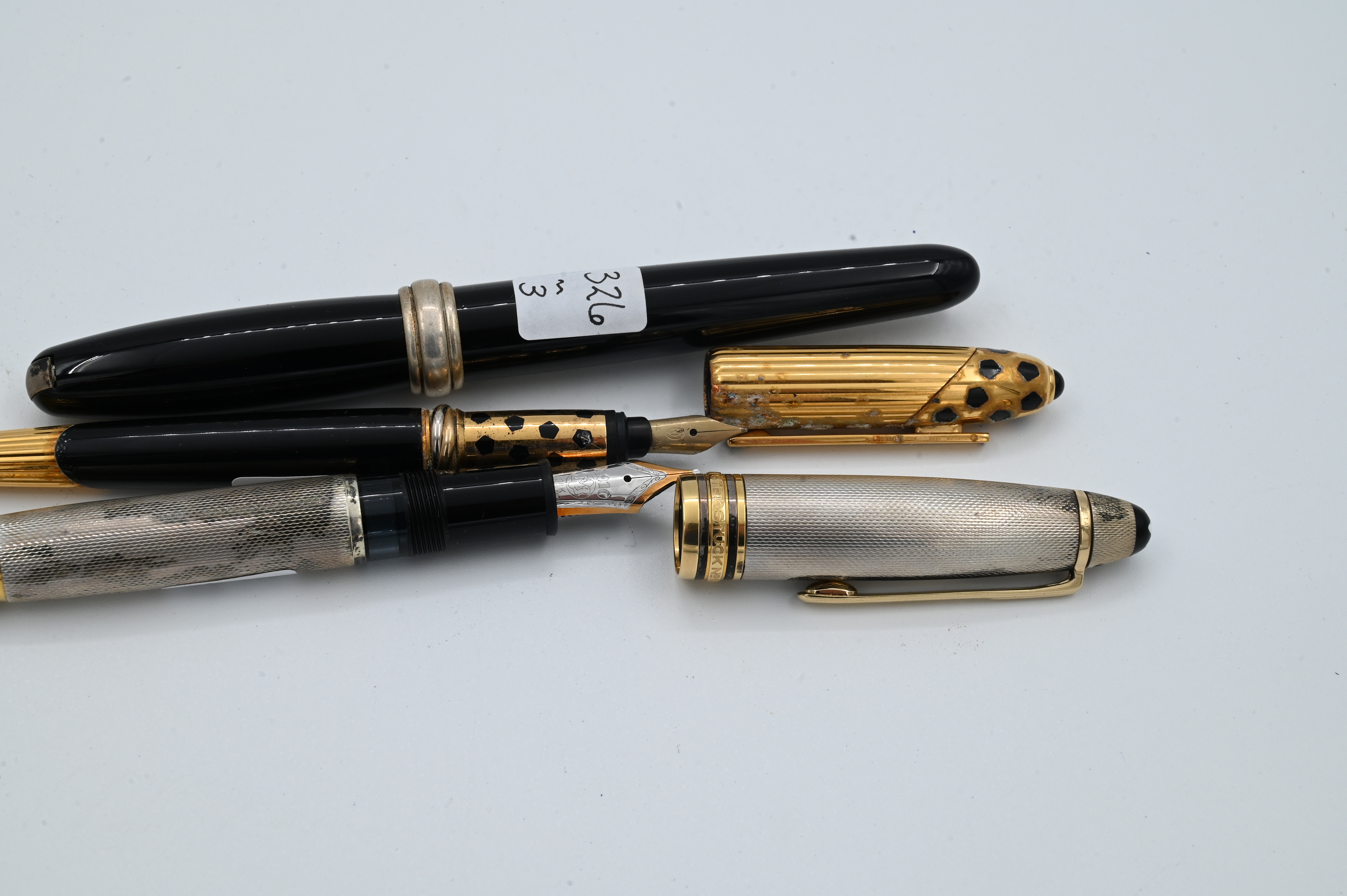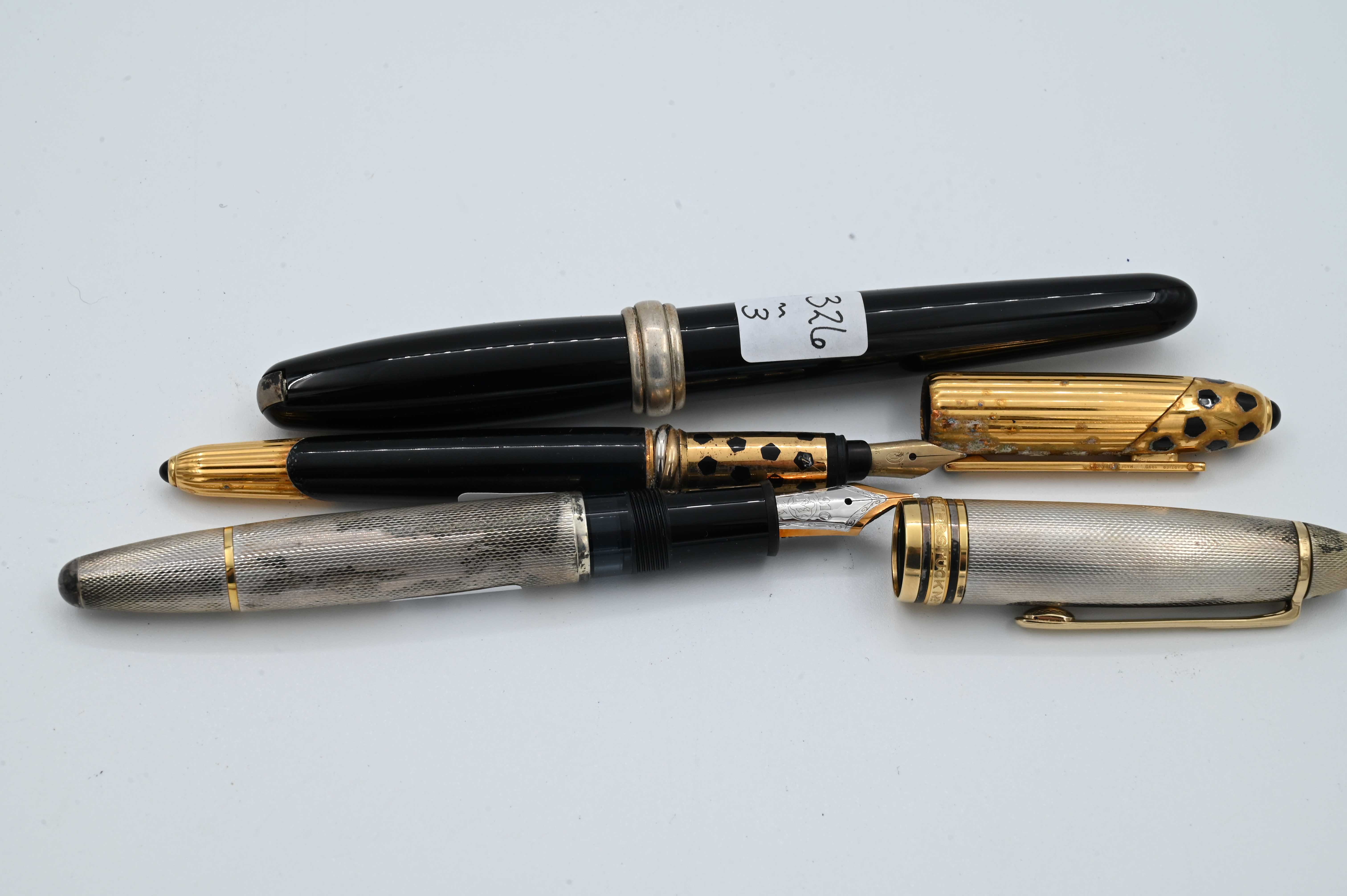 to include Cartier Panthere Trinity 1990 in black and gold plate having 18k gold nib, Tiffany and Co. Mont Blanc 925 sterling, Tiffany and Co. Mont Blanc meisterstuck