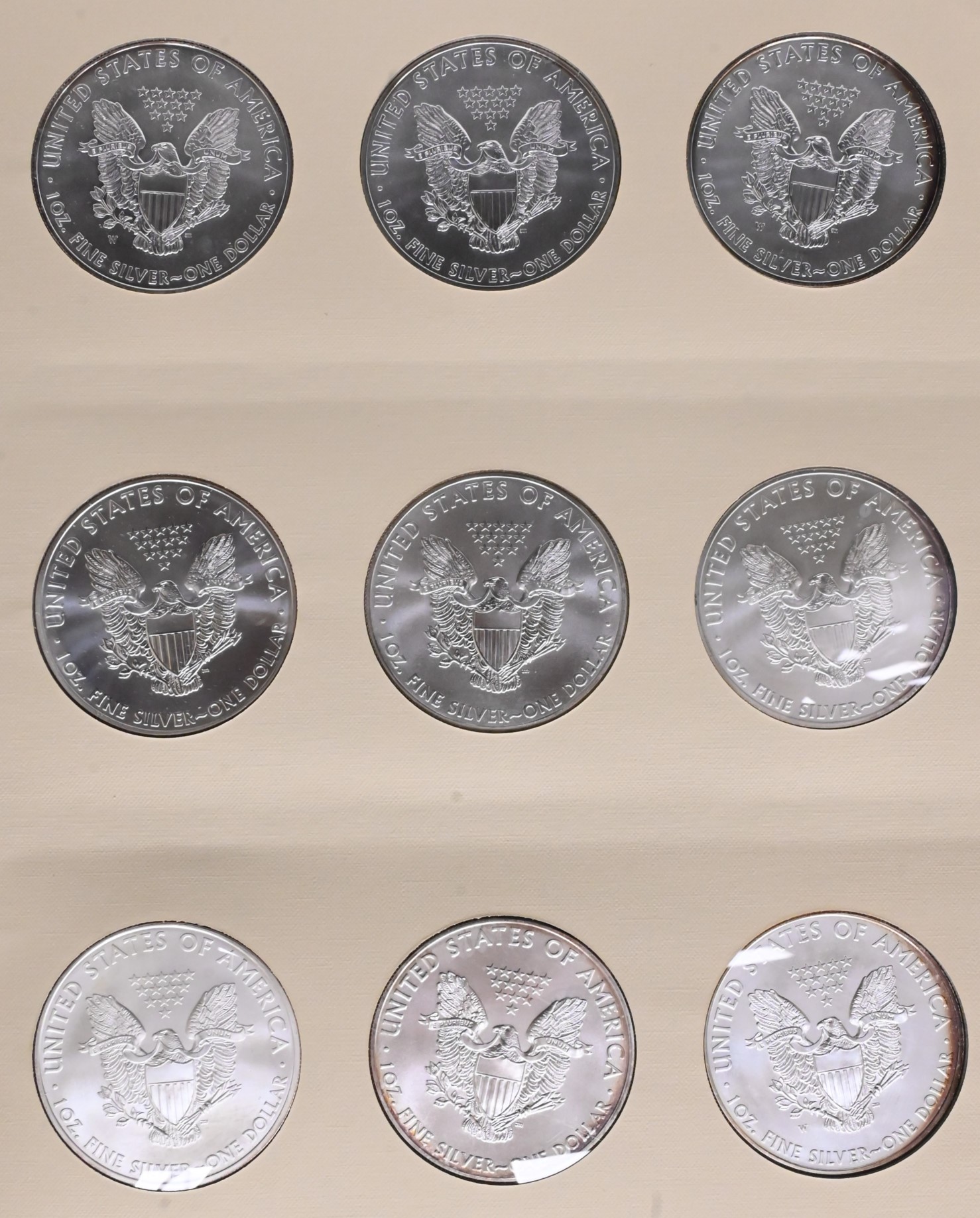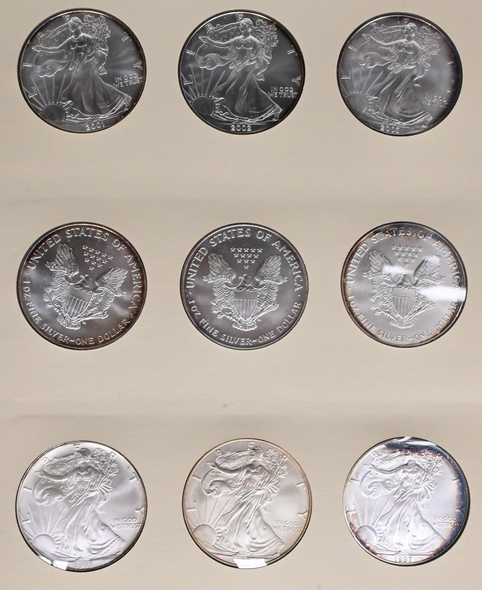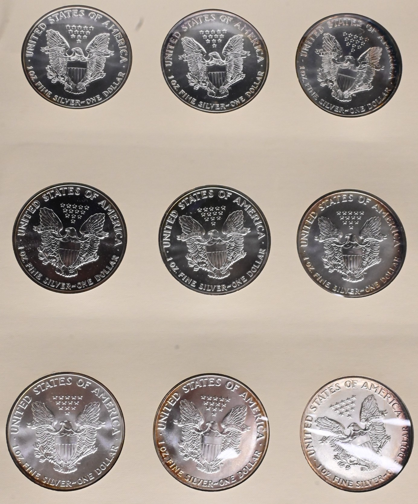 38 Piece Album of American Silver Eagle Dollars, all brilliant uncirculated from 1986 – 2016