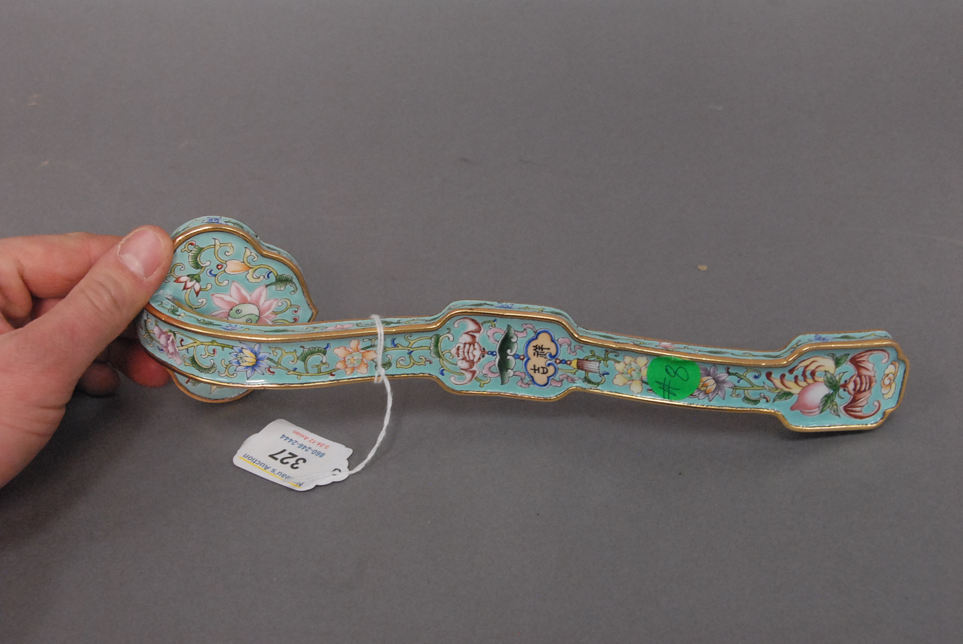 Enameled ruyi scepter decorated with vines and flowers, lg. 11 .