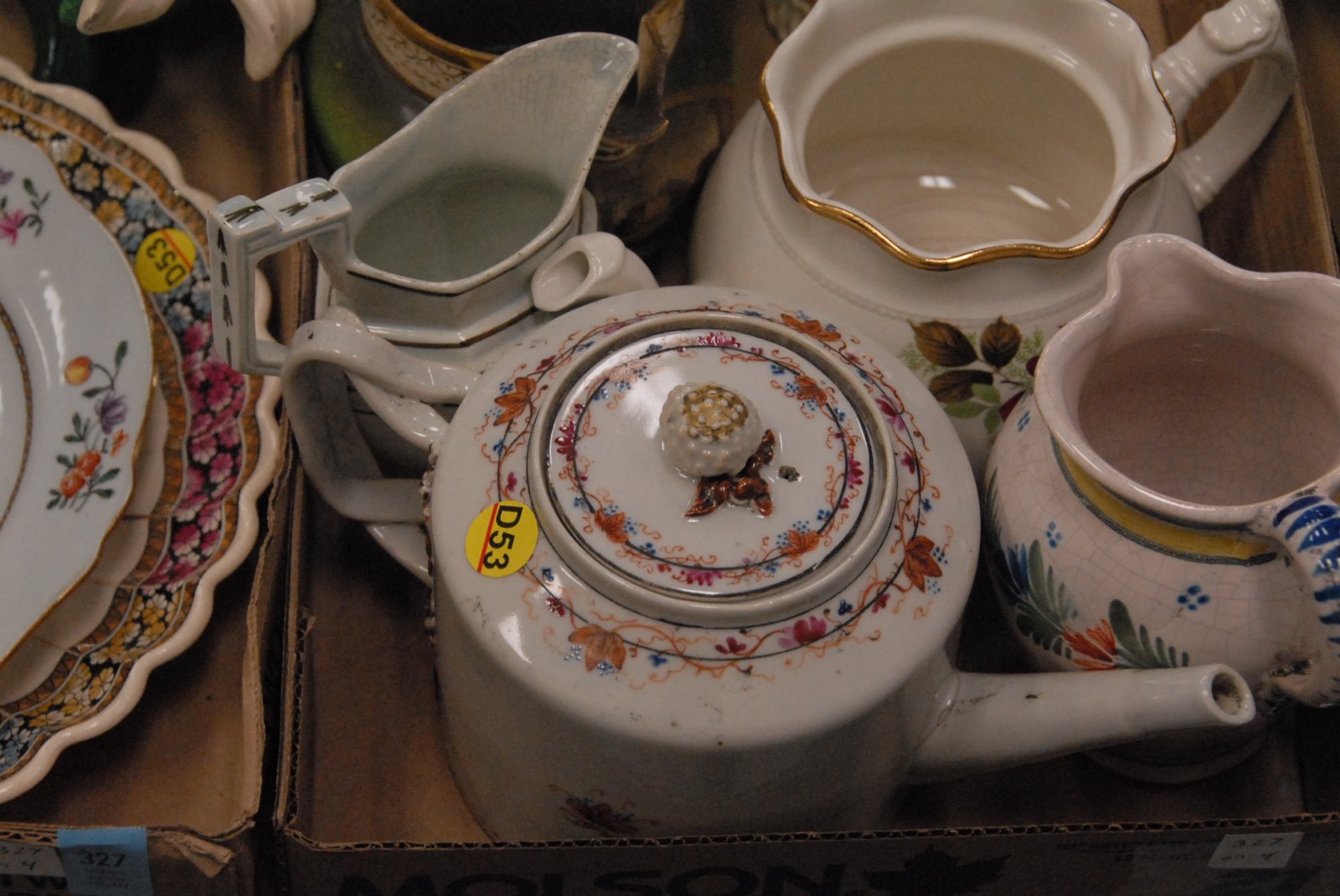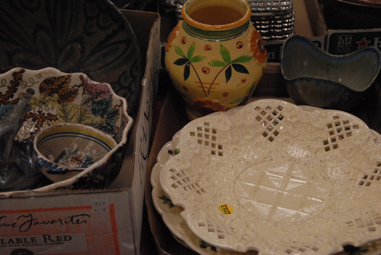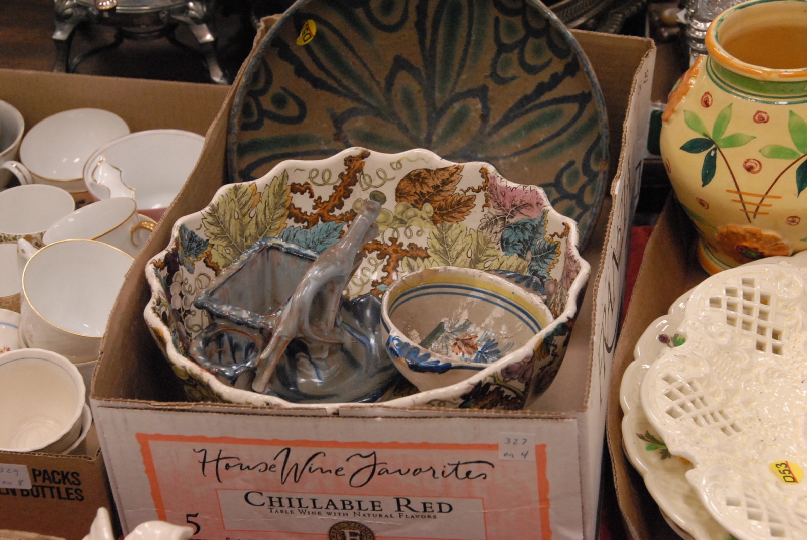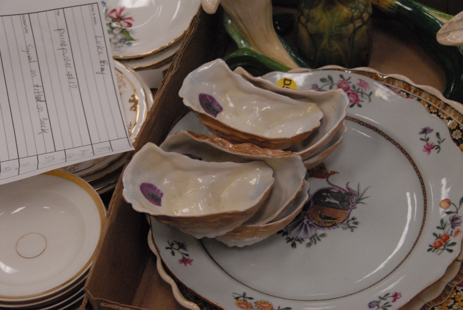 Four box lots including Quimper, export china, oyster dishes, pottery bowls, platters, misc