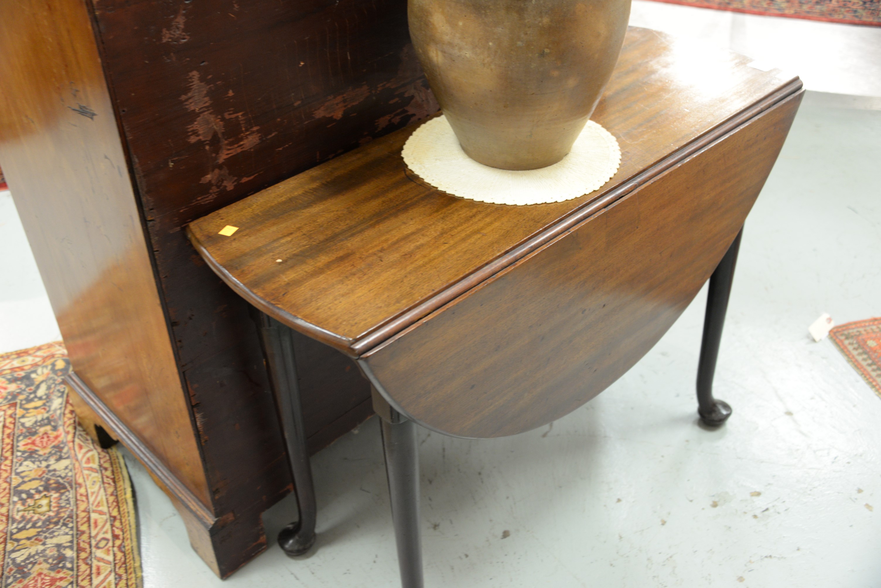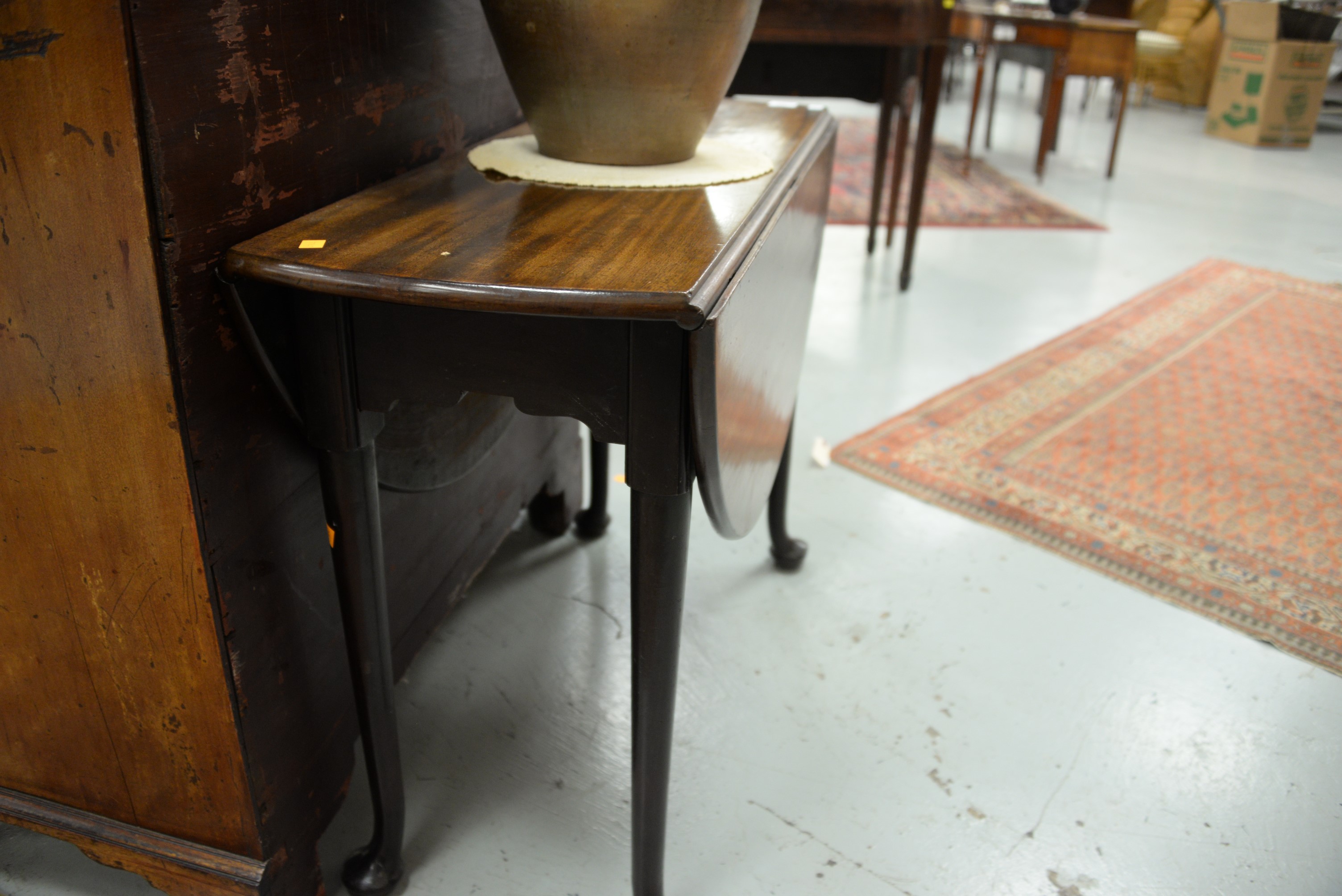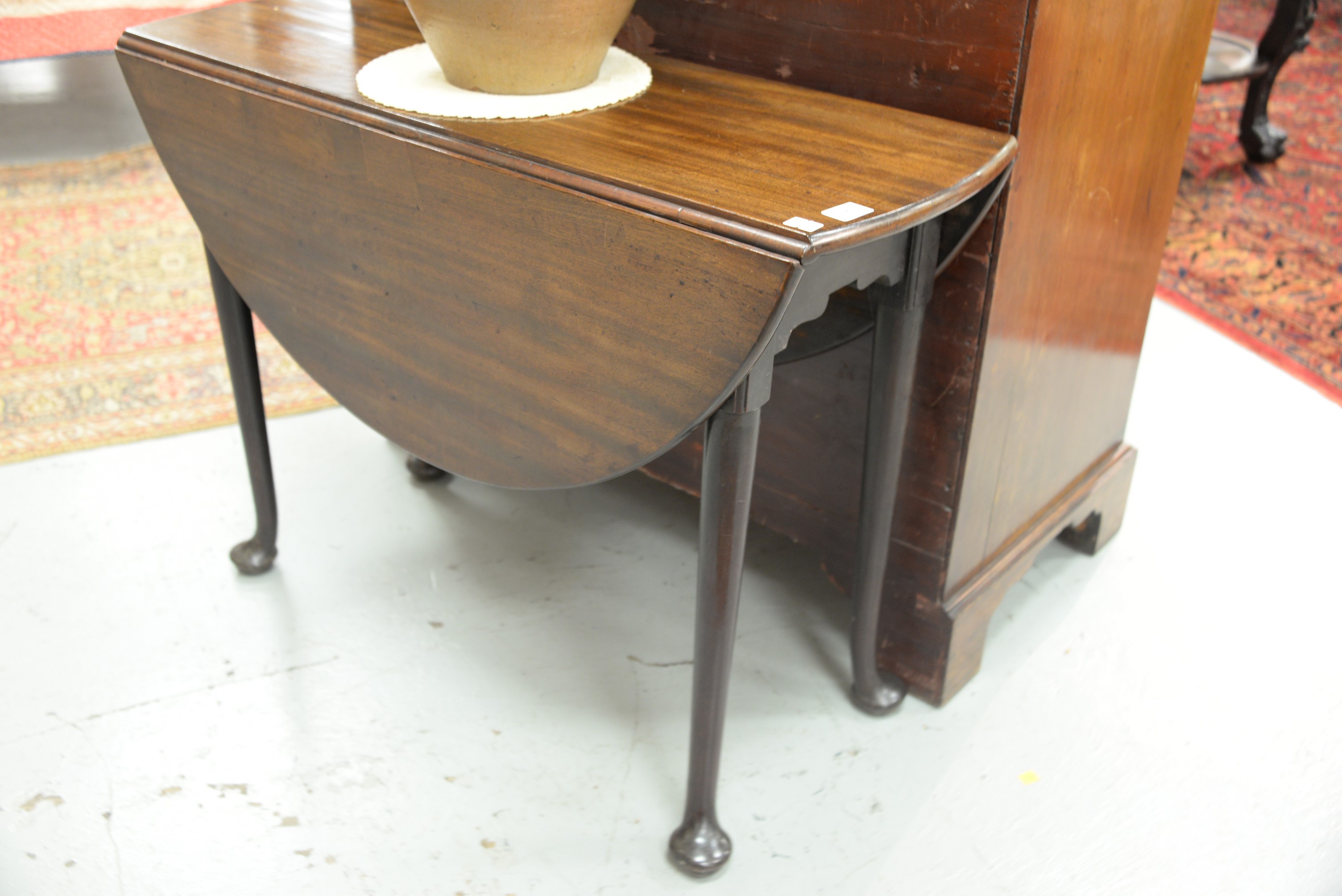 Lot 327: George II style mahogany table with oval drop leaves on turned legs ending in pad feet. ht. 28 in. open: 39 x 41 Provenan…