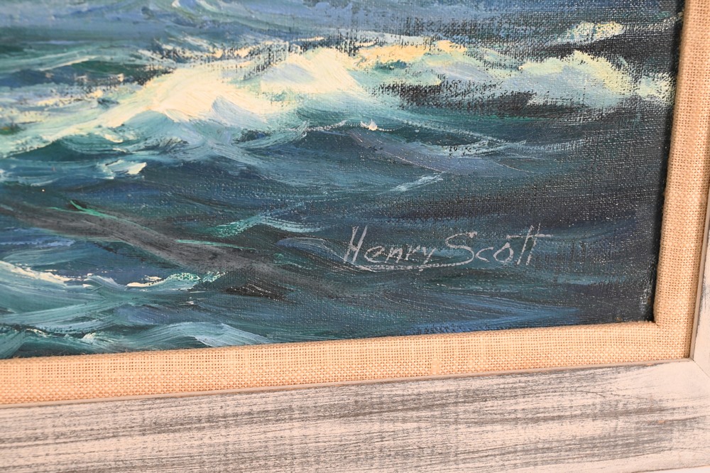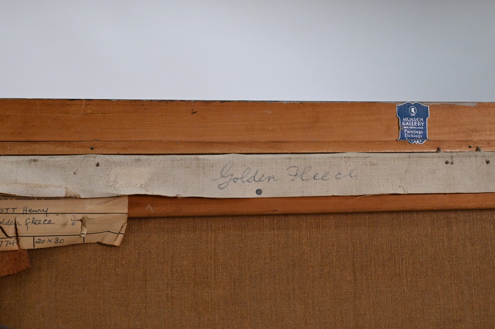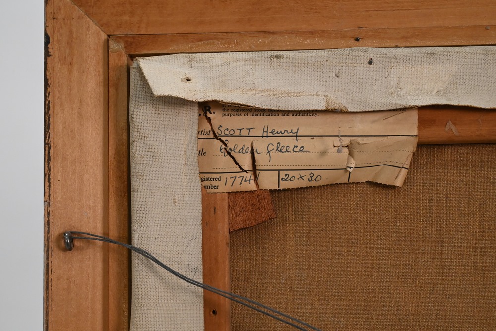Lot 327: Henry Scott (1911 – 2005), Golden Fleece, oil on canvas, signed lower right Henry Scott, original label on back, 20″ x 30″. Provenan…