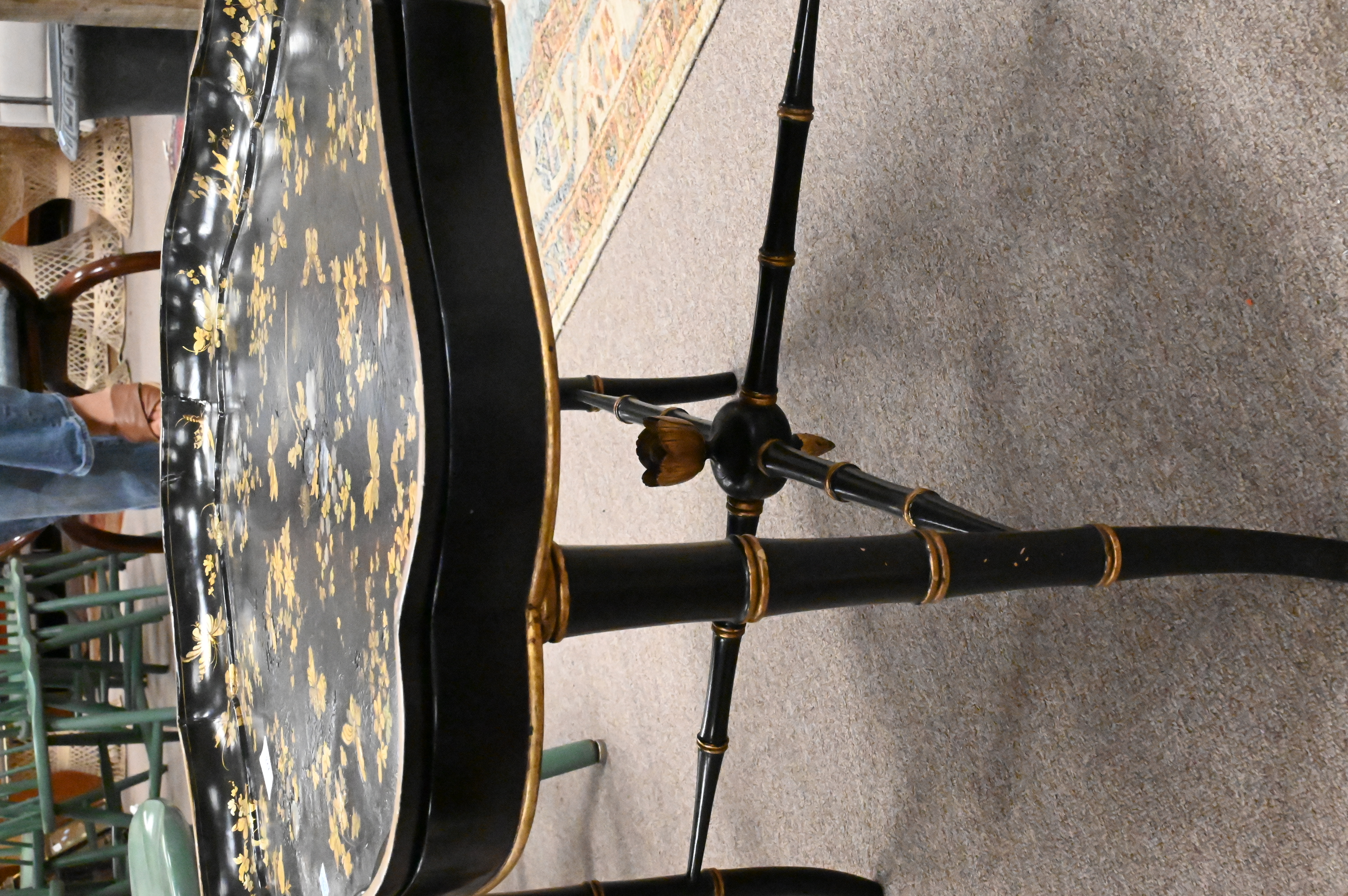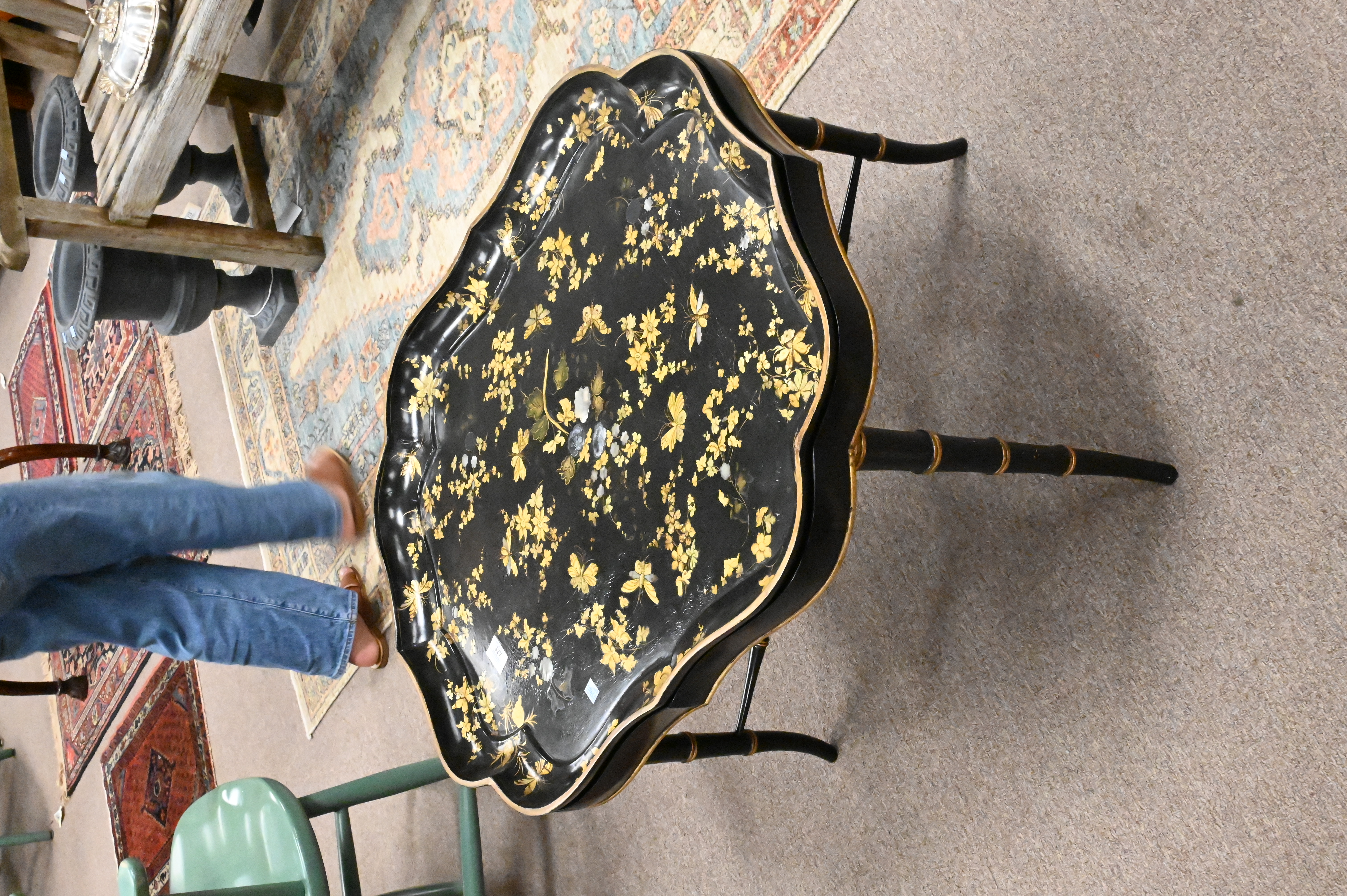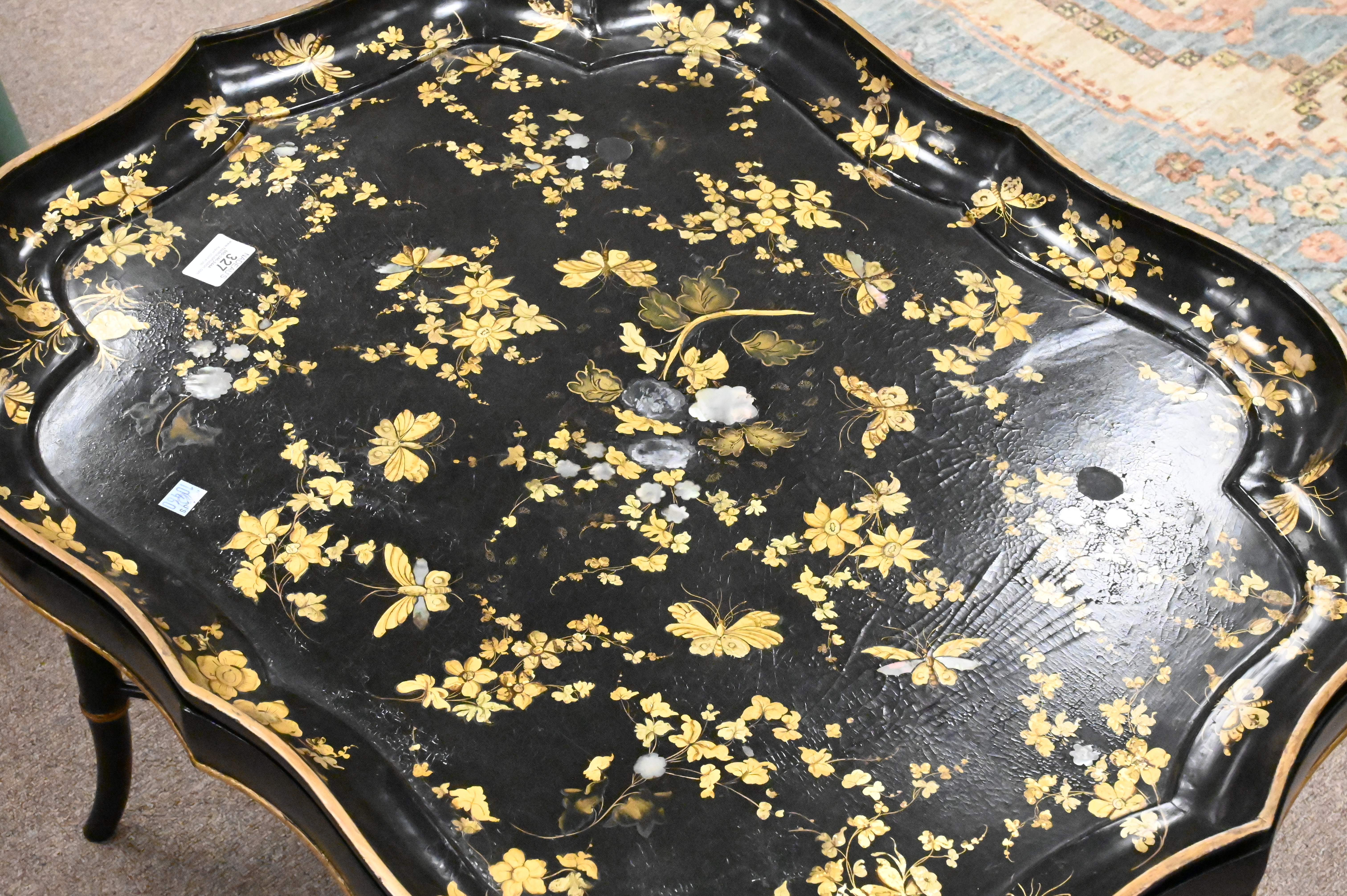 Lot 327: Mother of Pearl Inlaid Papier Mache Tray Top Coffee Table