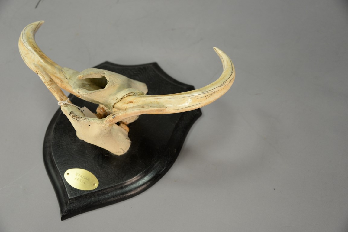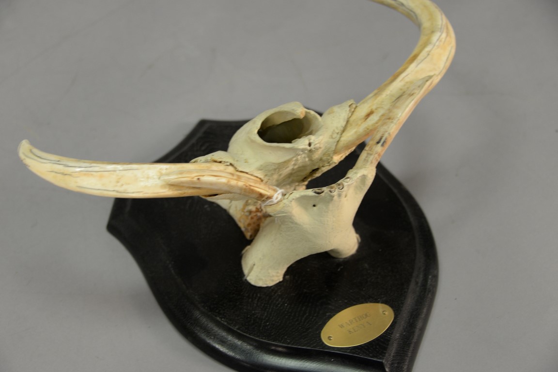 Taxidermy warthog jaw bone mount with skull and horns. wd. 15in.