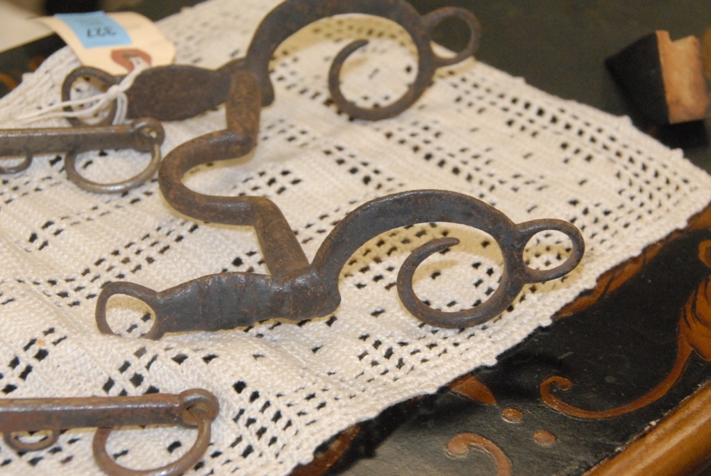 Two early horse bits one American or English riding 18th century other is US dragon bit War of 1812