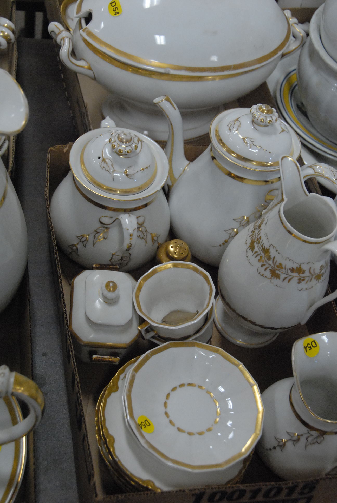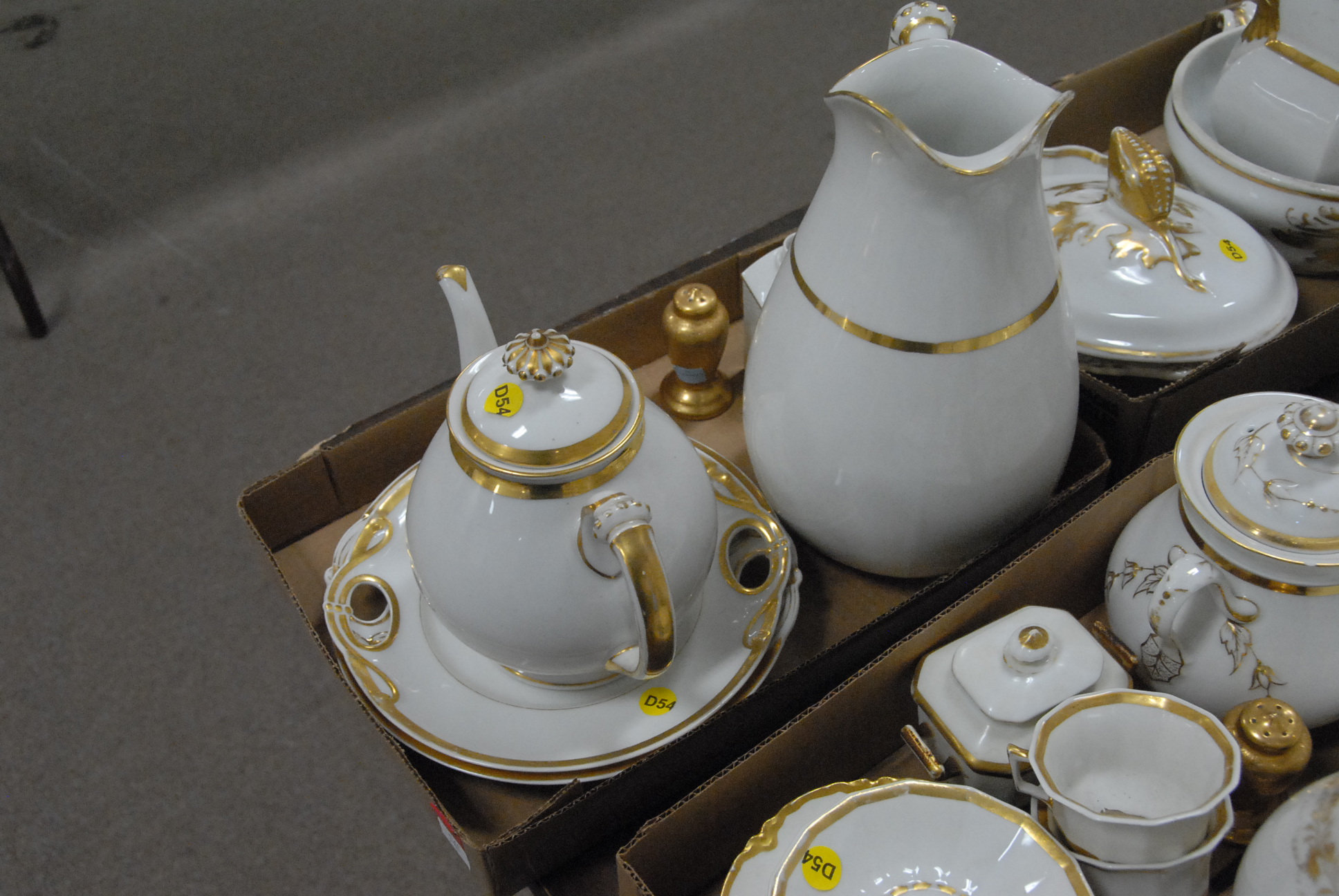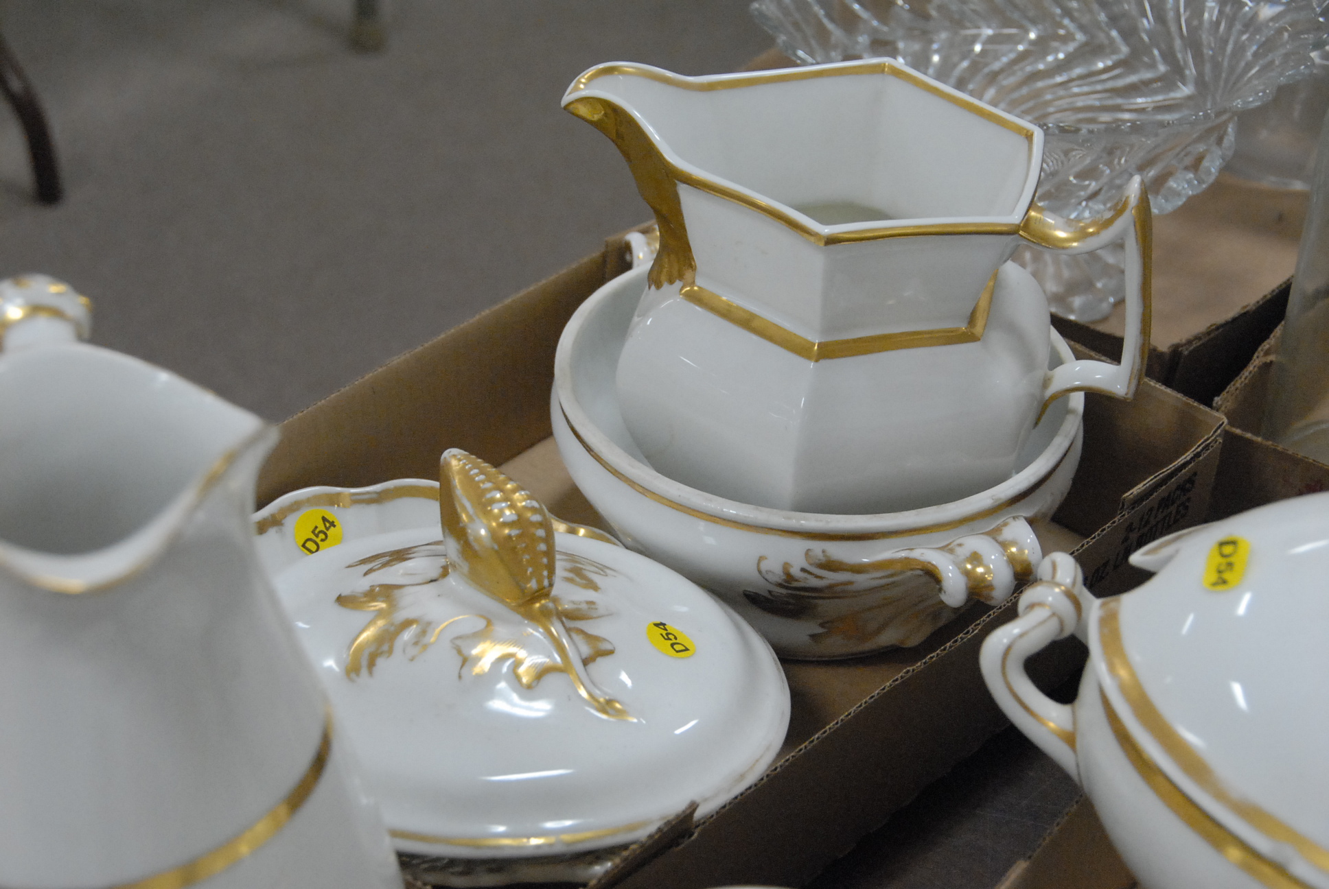 Four box lots of 19th century porcelain with gold trim, pitcher, tureen, pots, trays, misc