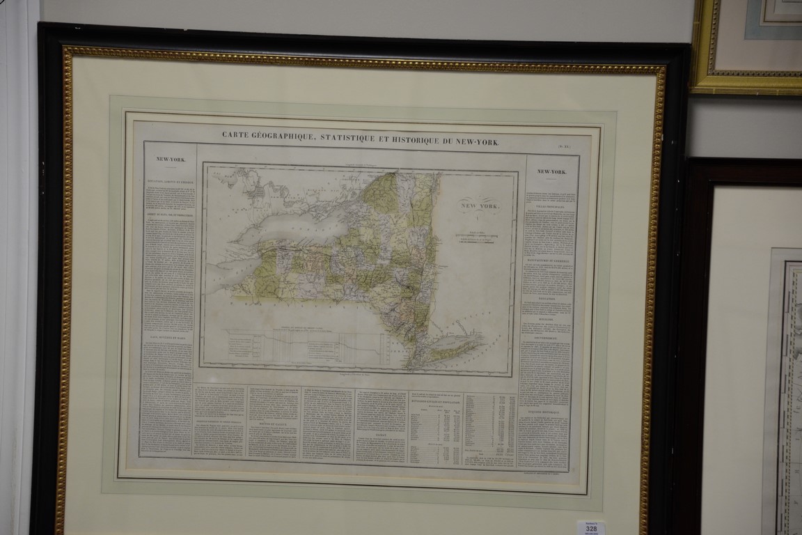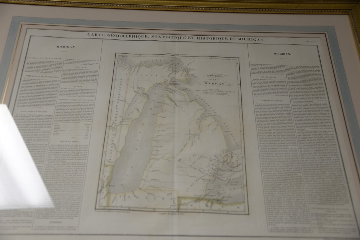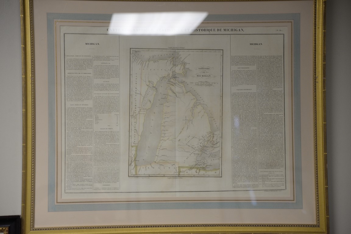 Lot 328: Group of four colored double engraved maps, lithographs and prints including Carte Geographique Statistique Michigan, Geographical S…