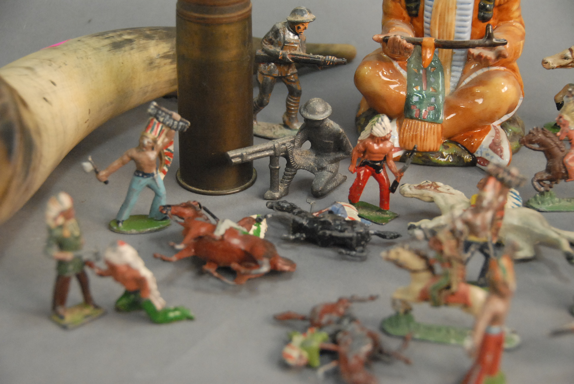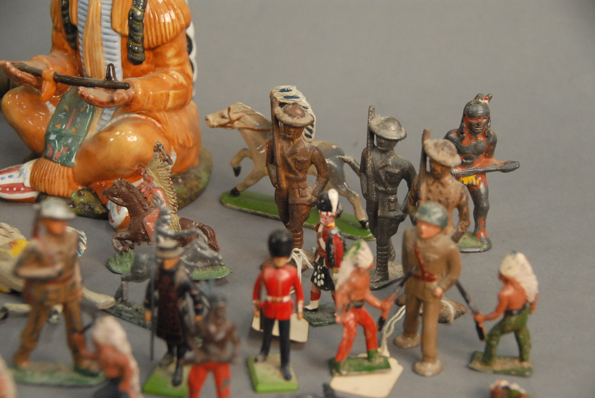 Group of lead Indian figures and a Royal Doulton The Chief.