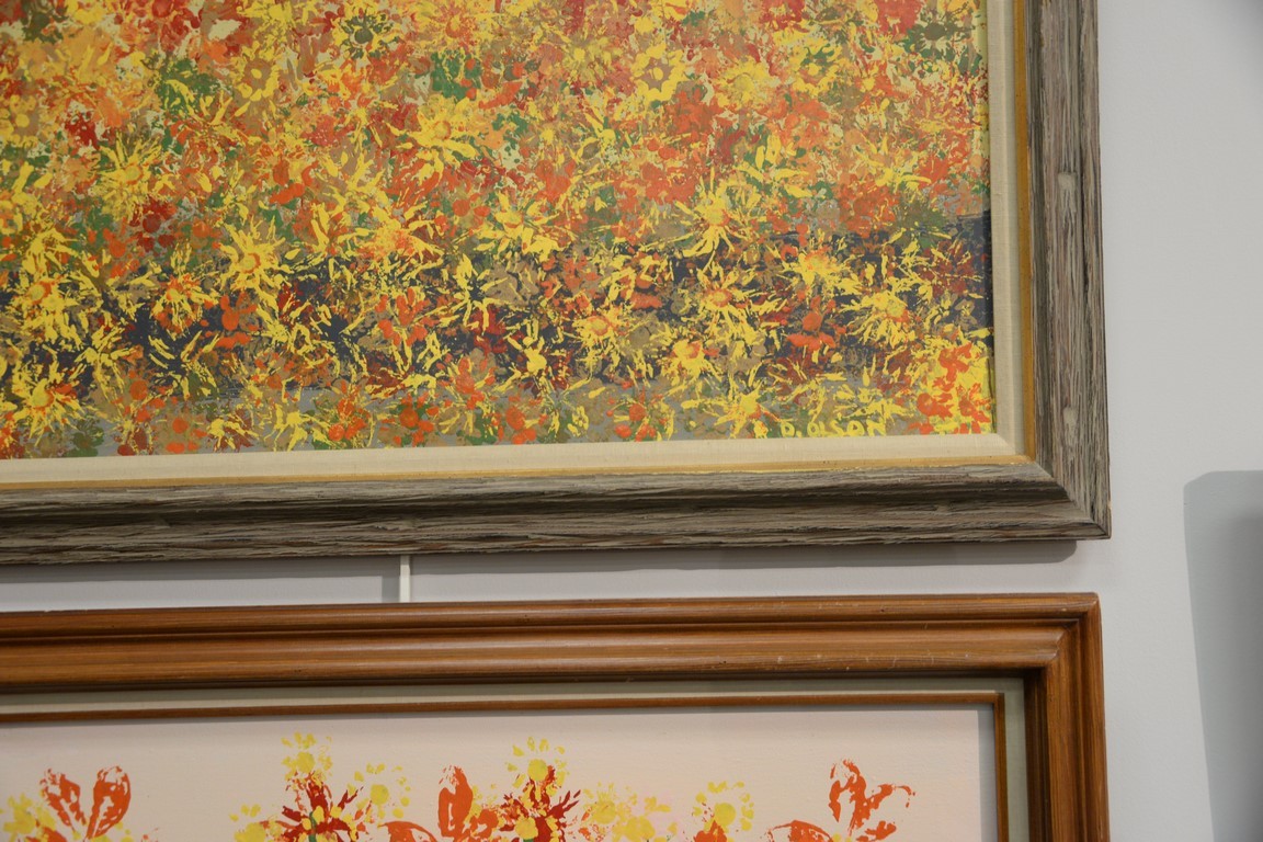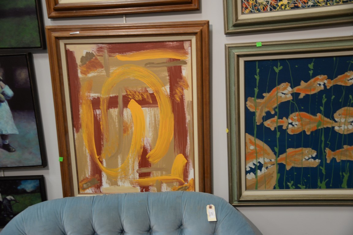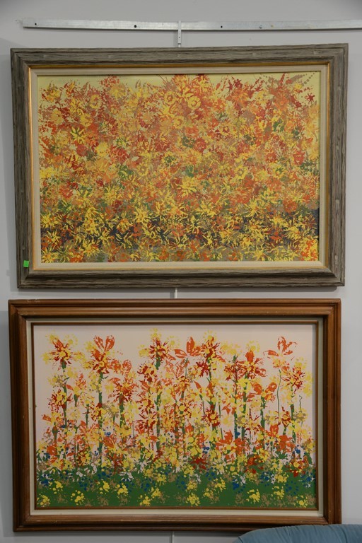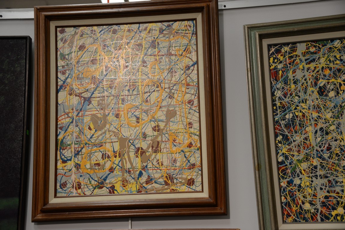Lot 328: Group of six Dan Olson abstract and abstraction oil on canvas paintings. 22 1/4 x 28 1/4 to 24 x 36 Provenance: Estate of Arthur…