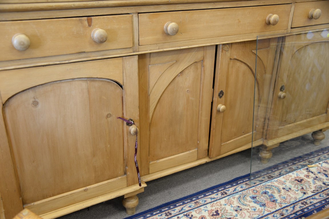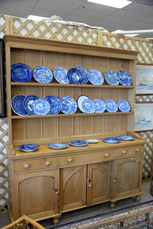 Irish pine two part hutch. ht. 85 in. wd. 72 in. dp. 19 1/2 in.