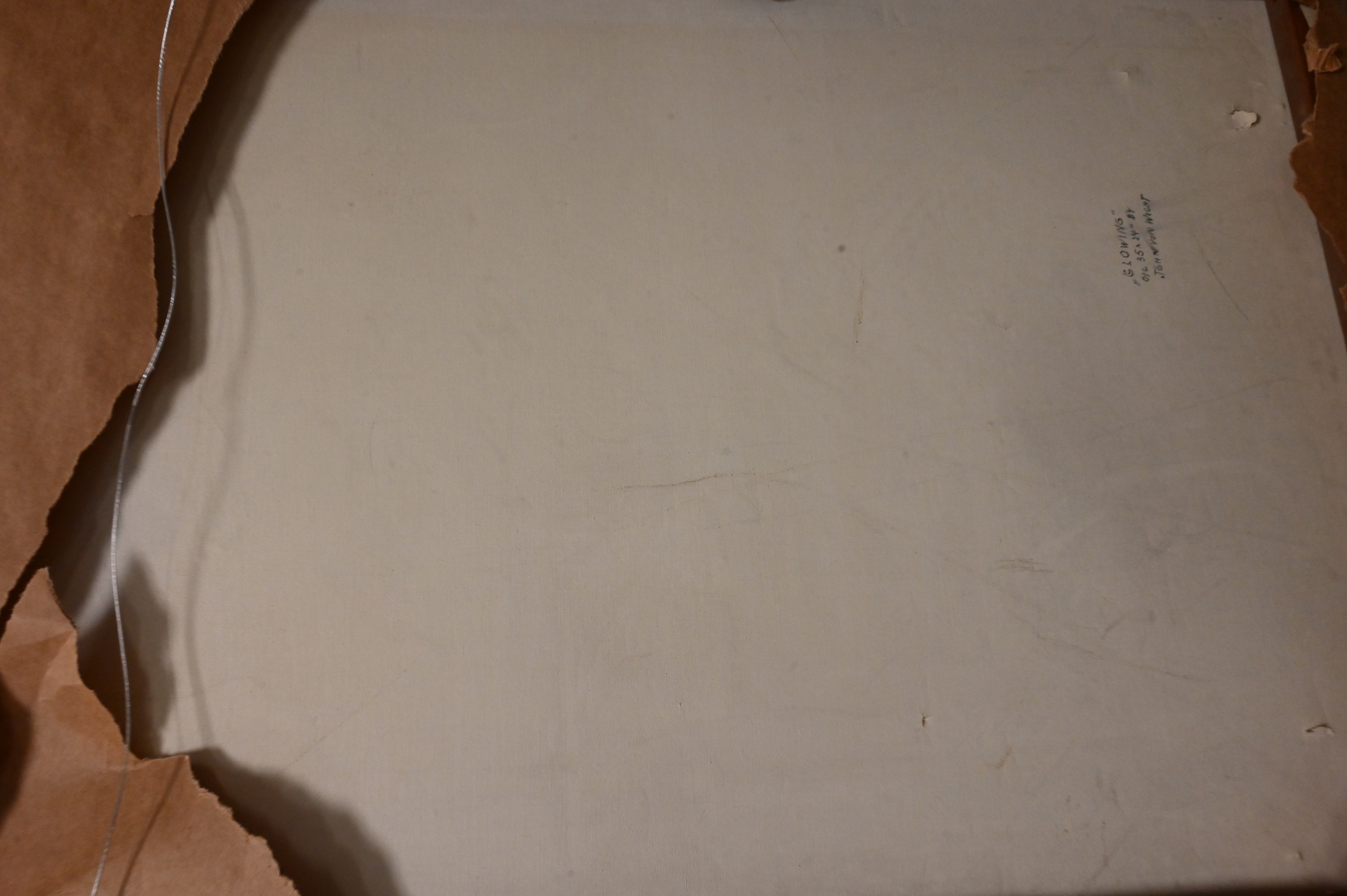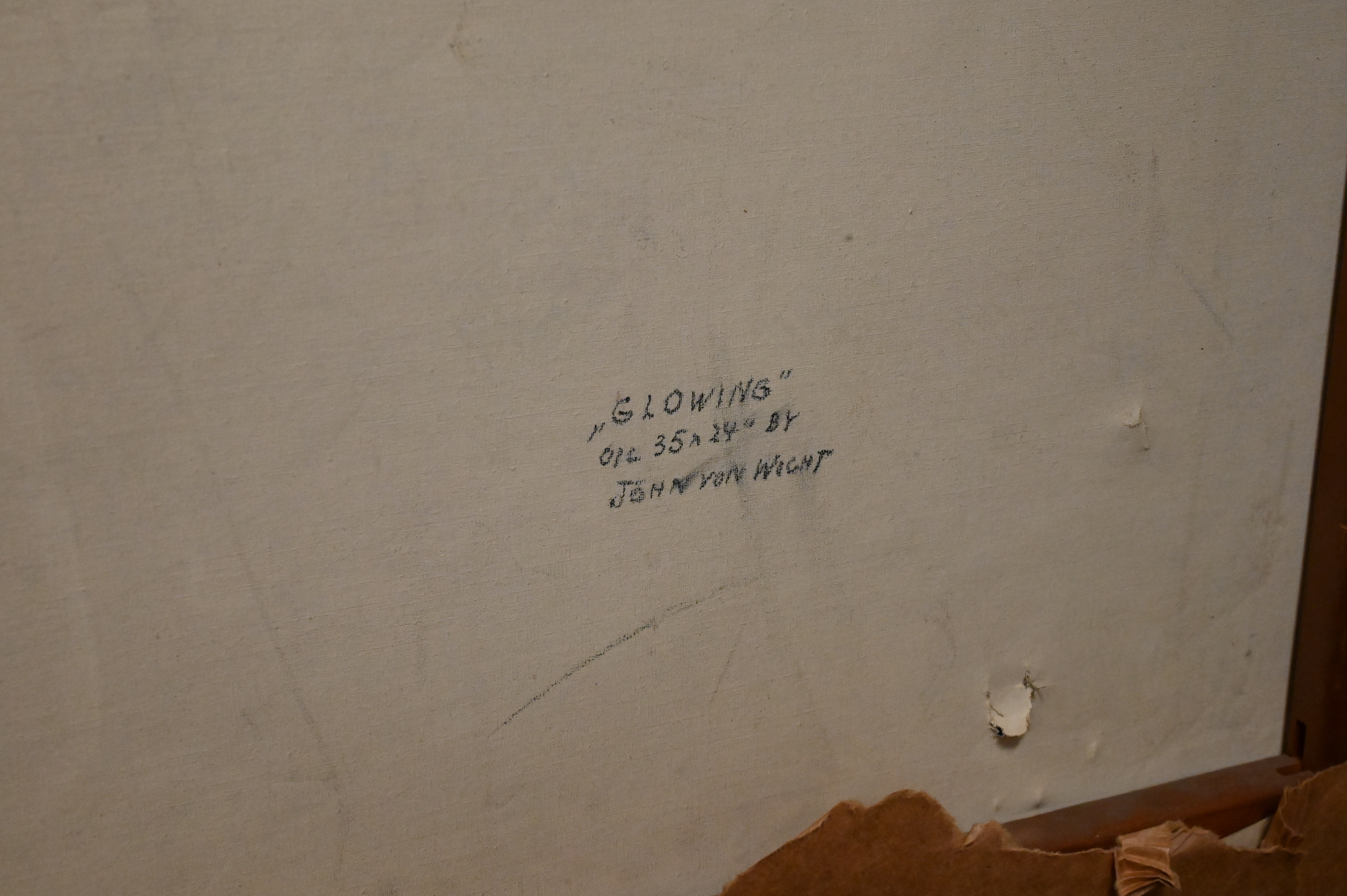 Signed and dated lower left V.Wicht ’52, title, date, signature verso “Glowing, oil, 35×24 by John Von Wicht”