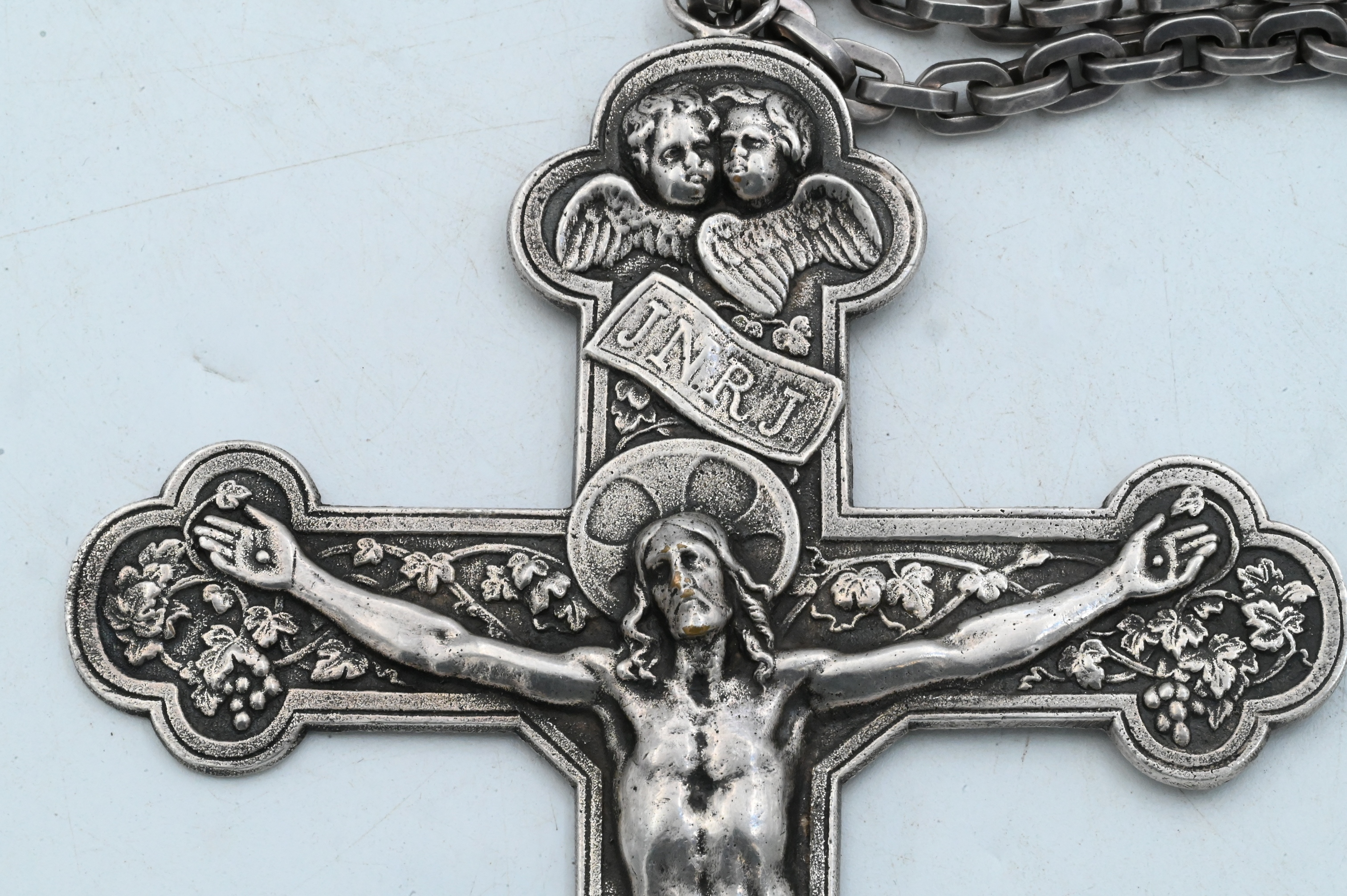 Lot 328: Large Sterling Silver Crucifix with Chain