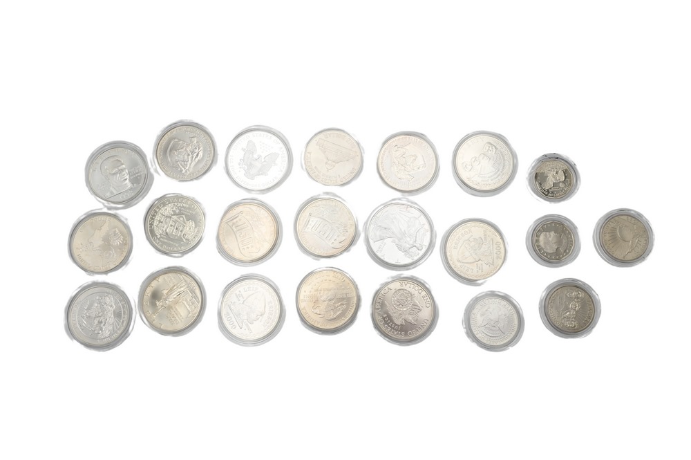 Lot of Coins, to include 2000 Leif Erickson two uncirculated silver dollars; 1997 Law Enforcement, one proof and one uncirculated; four silver dollars, all uncirculated, to include one 1998 Black Revolutionary War Patriots, one 1998 Yellowstone, one 1999 Dolly Madison, and one 2000 Liberty of Congress; one 1991 Korean War uncirculated silver dollar, one 1991 Mount Rushmore uncirculated silver dollar, one 1991 Mount Rushmore half-dollar copper/nickel; 2000 proof American silver Eagle (missing box), 1999 proof American silver Eagle (missing box); two 1999 Susan B. Anthony dollar proofs; 1991 three piece USD silver dollars, two uncirculated and one proof; 1986 one silver dollar uncirculated, and one uncirculated half-dollar; 1998 one RFK silver one dollar, and one JFK half-dollar special finish.