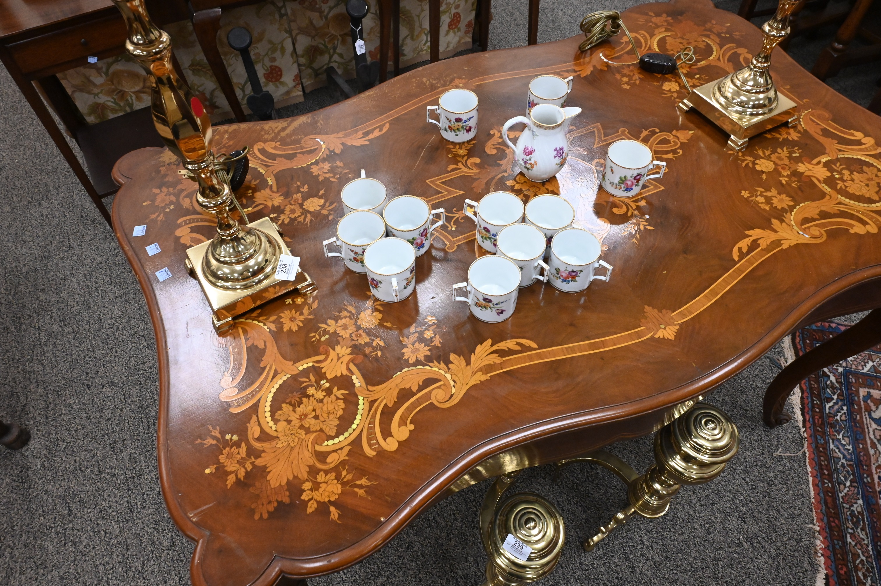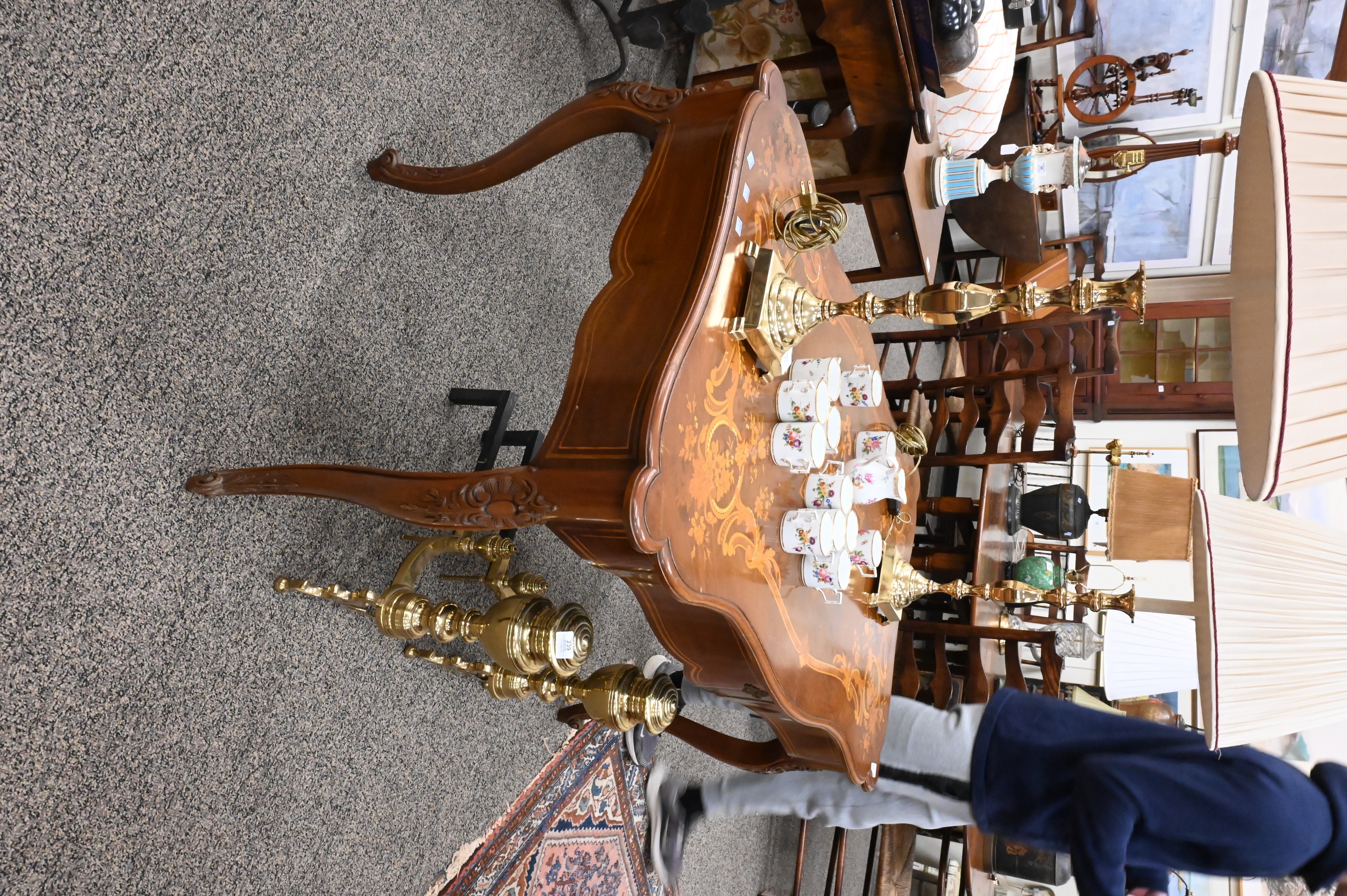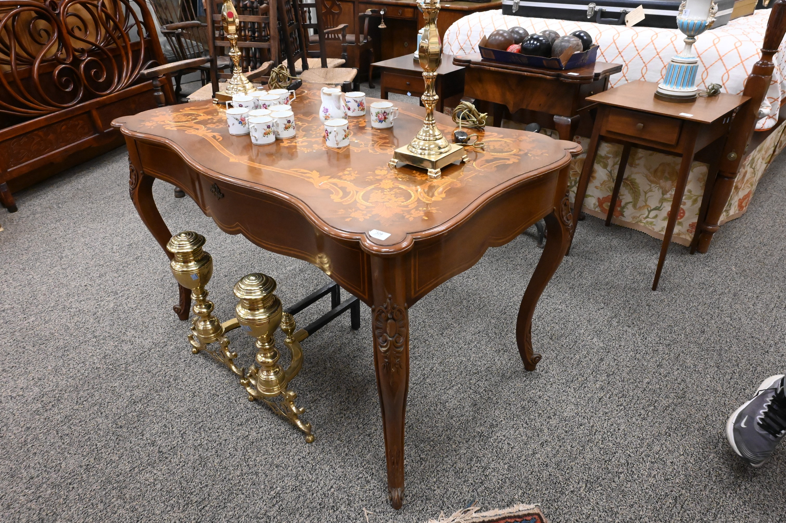 having marquetry inlaid top and single drawer, late 19th to 20th century