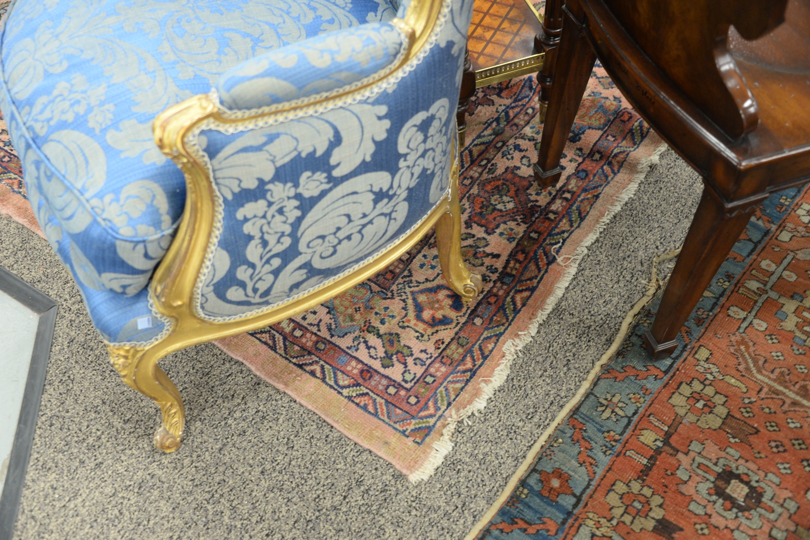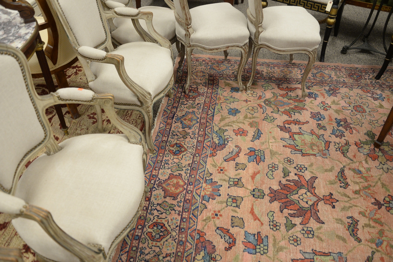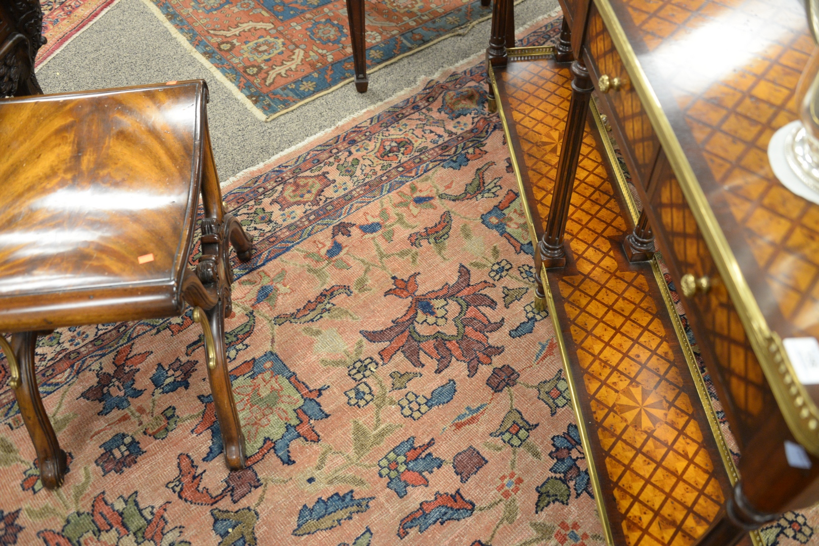Mahal Oriental Rug, having all over design, 8′ 8 x 11′, with wear.