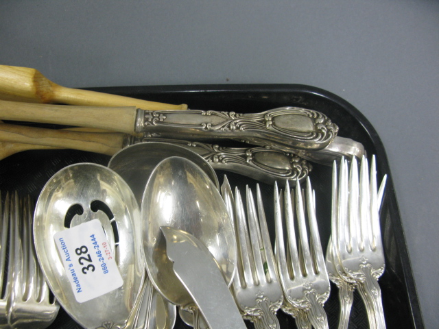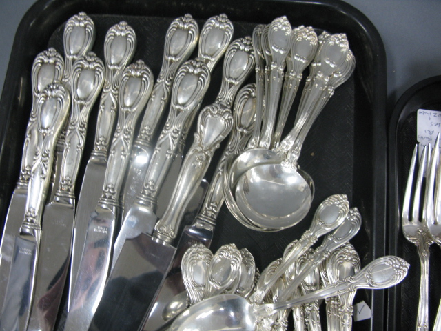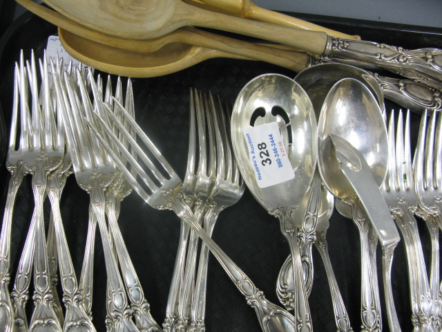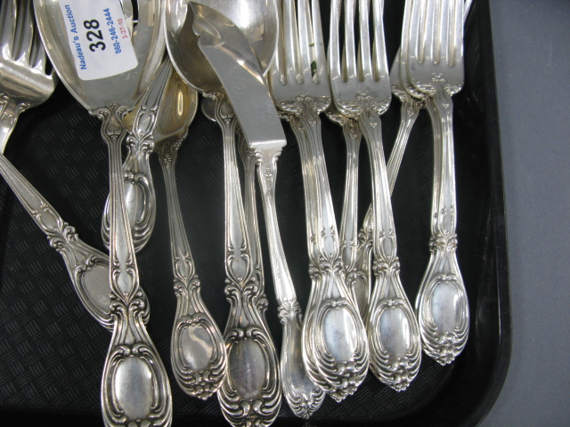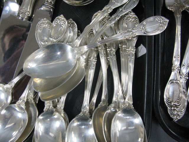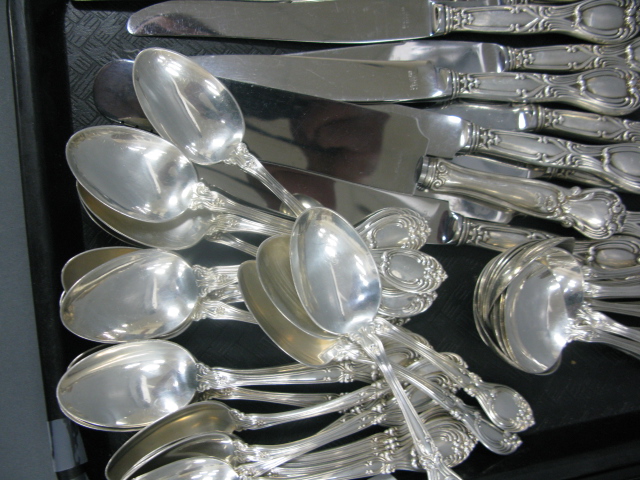 Sterling silver flatware set setting for twelve, eighty-eight pieces including: 24 teaspoons, 12 dinner forks, 12 lunch forks, 12 soup spoons, 12 dinner knives eighty-eight pieces.