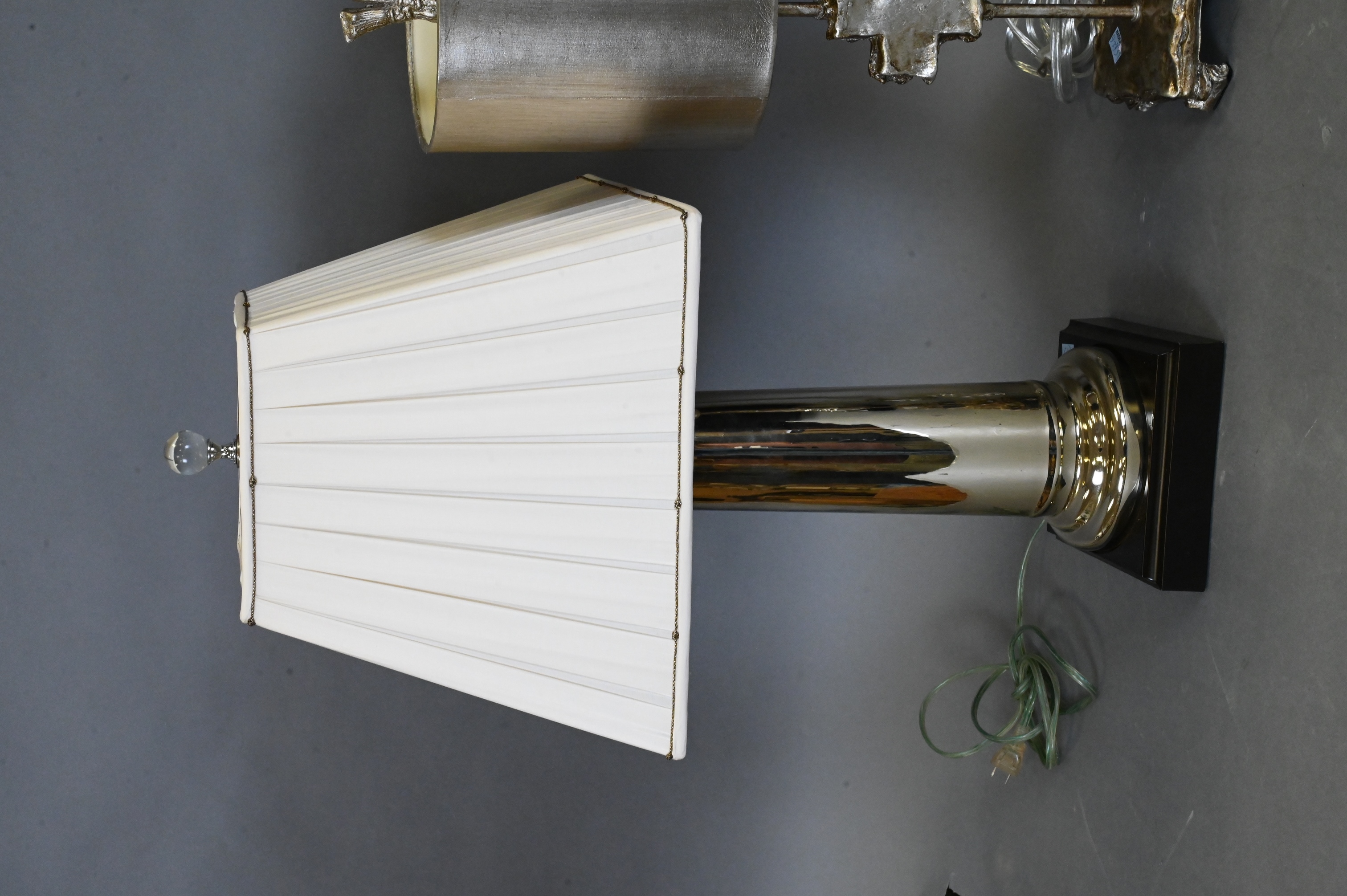 each retails for $337.50, along with a pair of mercury glass Colonial column table lamps having chrome body set on black steel base surmounted by glass orb finial each retails for $150