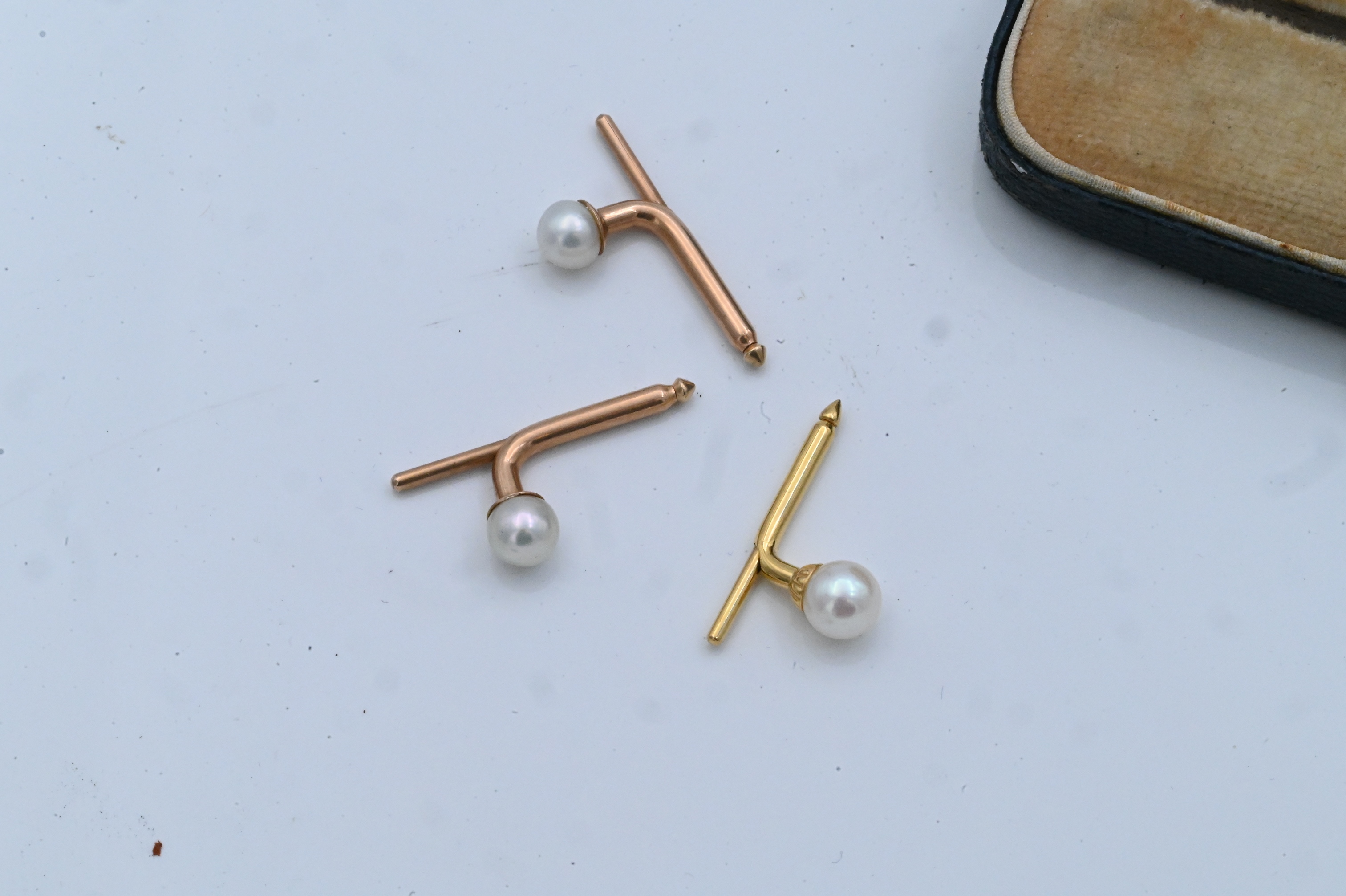 each topped by a cultured pearl measuring approximately 6.1–5.5 mm, total weight approximately 4.0 dwt (6.2 grams).