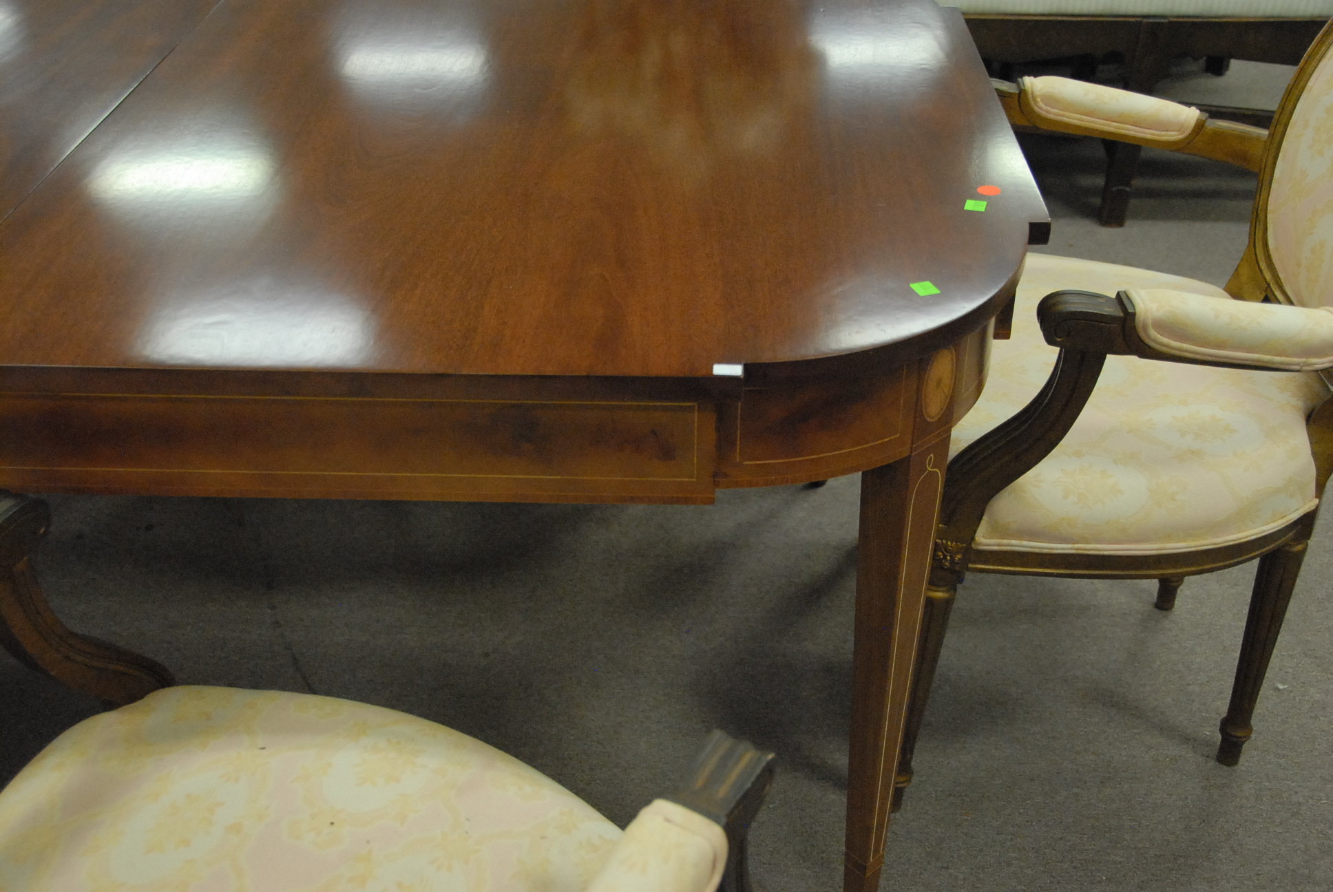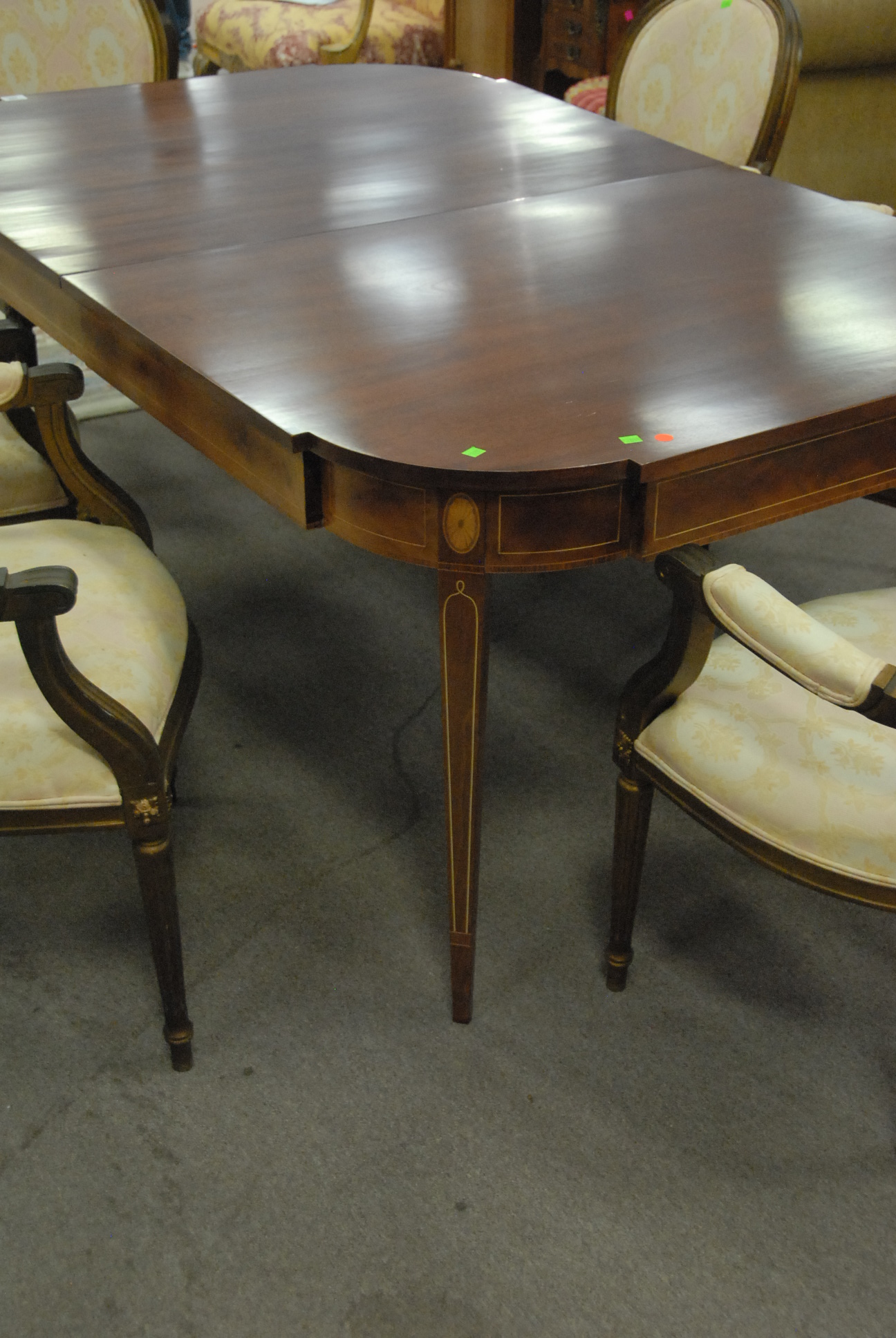 Lot 329: Beacon Hill custom mahogany Federal style dining table with two large leaves, very clean top, top: 68 x 44 with two 21in. leaves o…