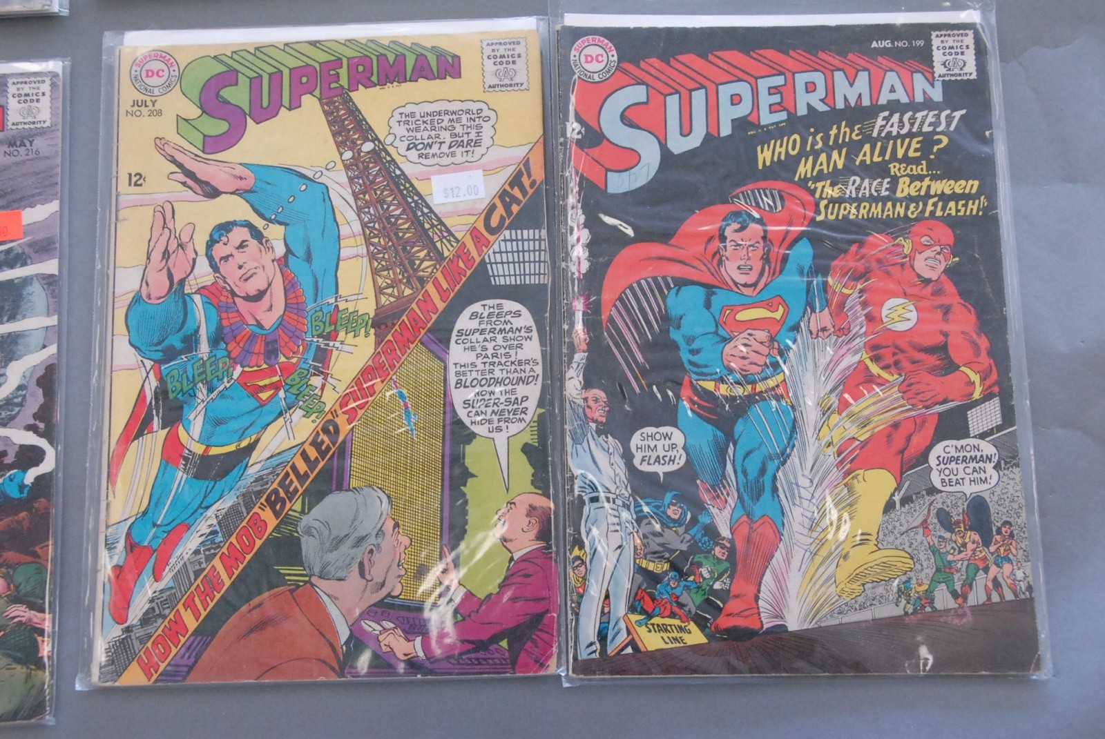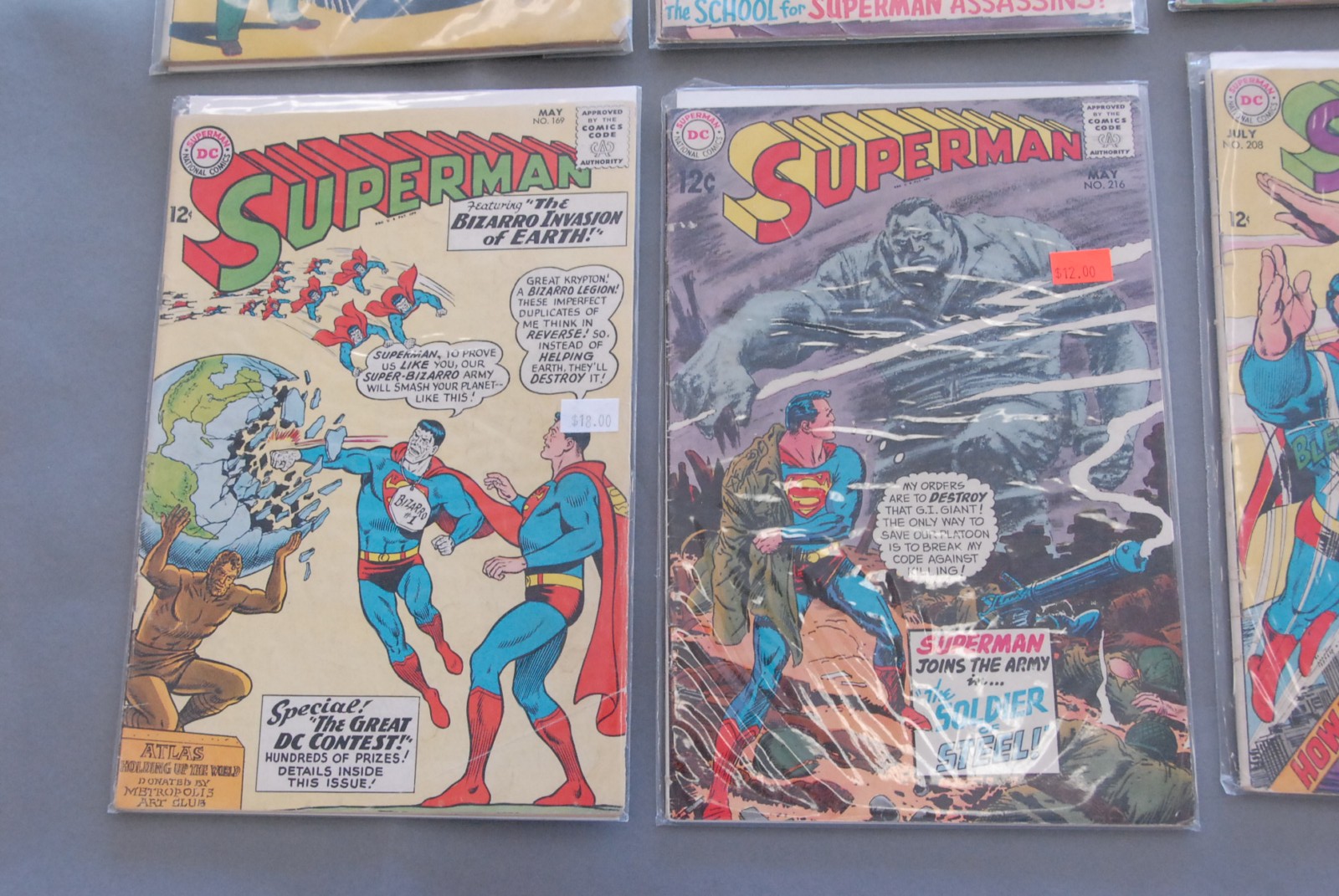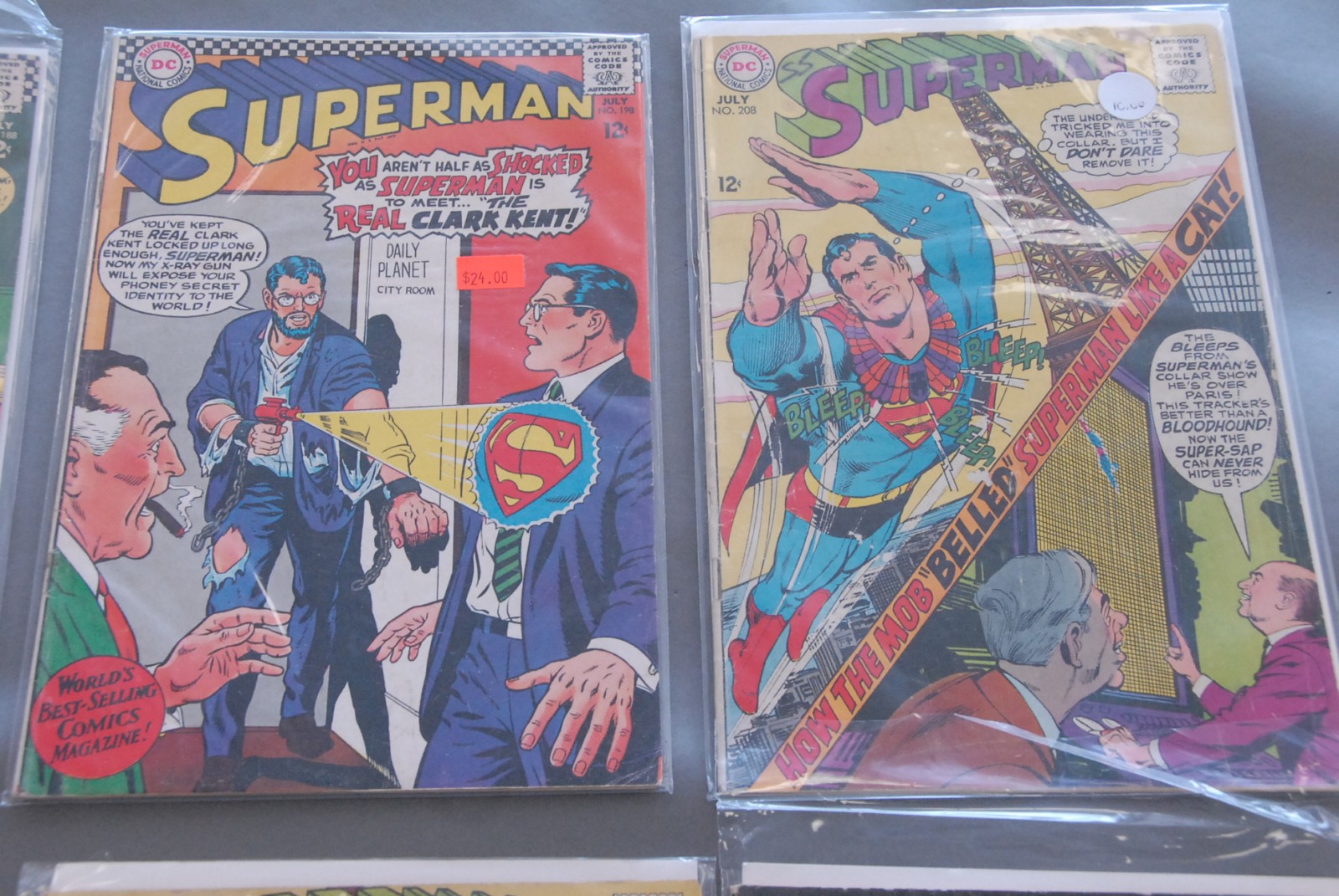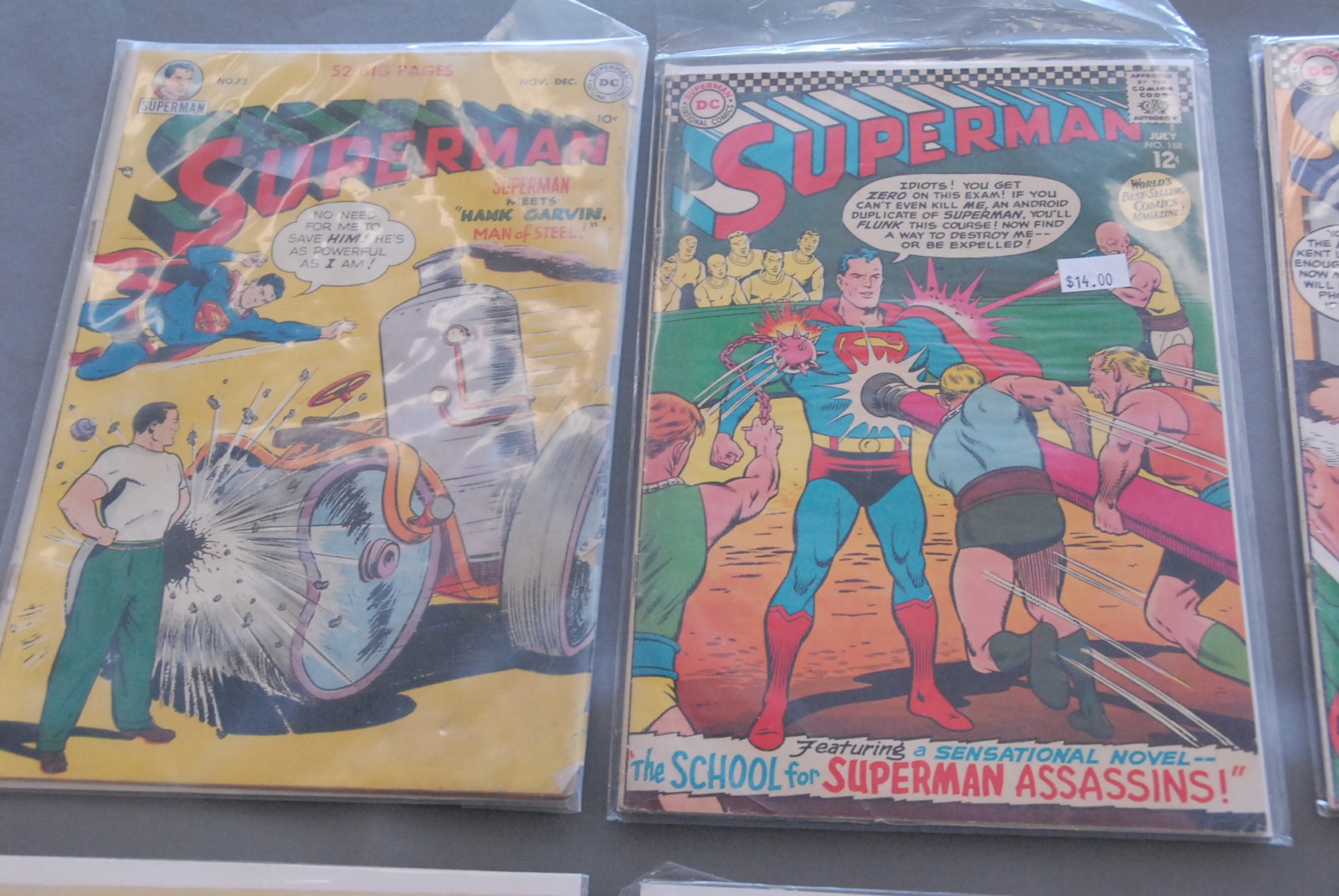 Box lot of eight comic books, Superman #73, 188, 208, 198, 199, 208, 216, and 169