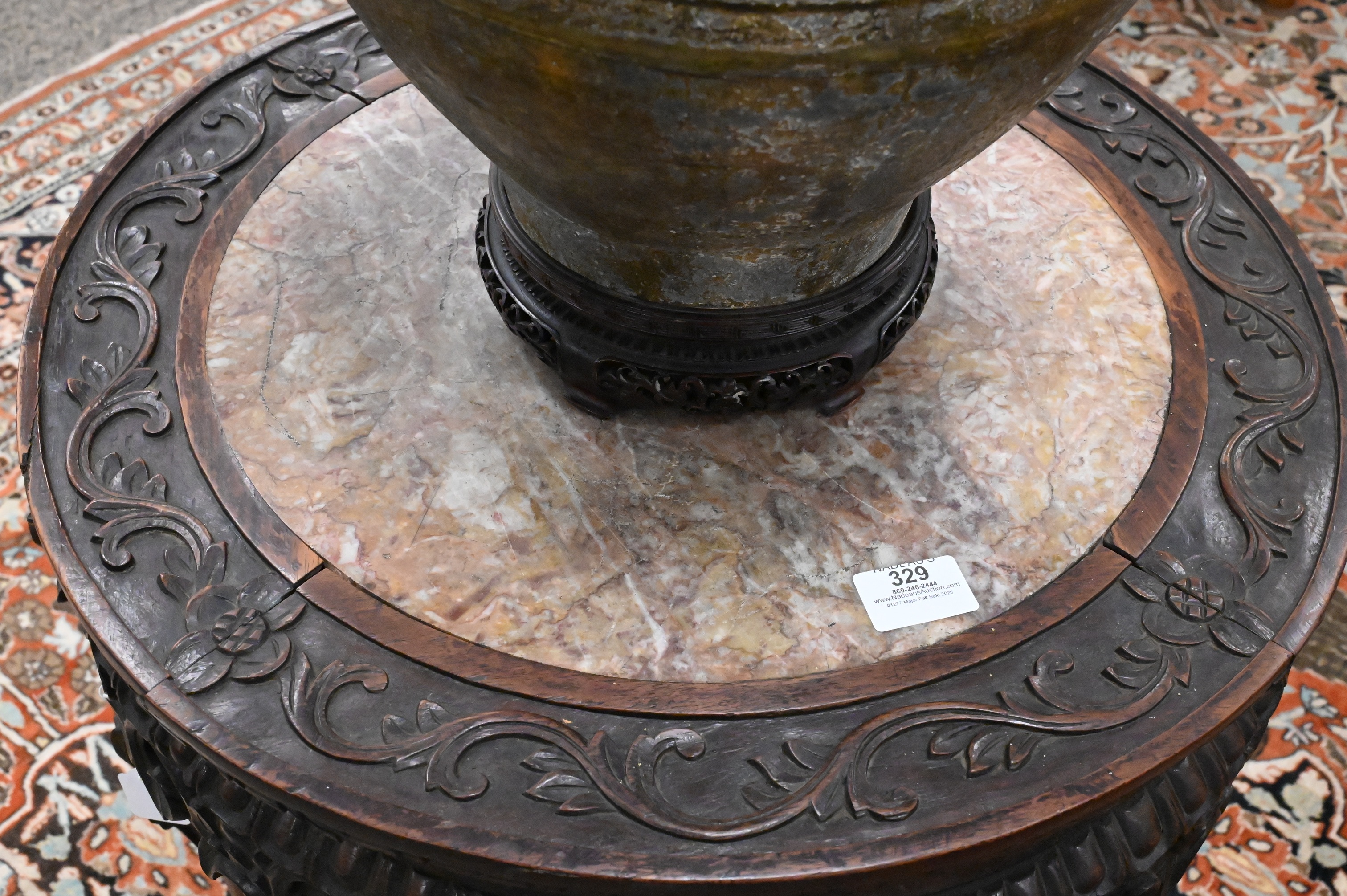 Lot 329: Chinese Carved Hardwood Stand with Marble Inset