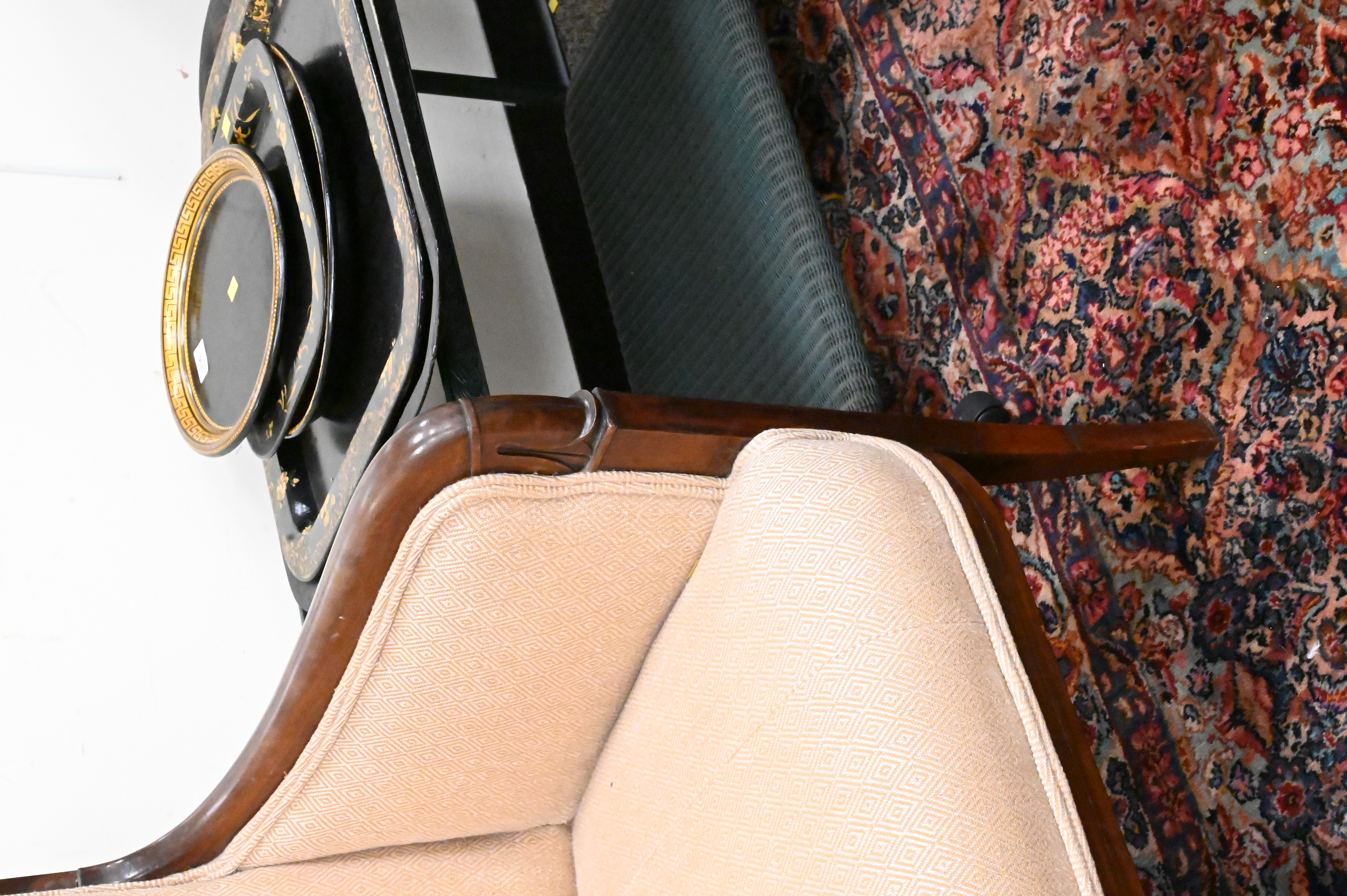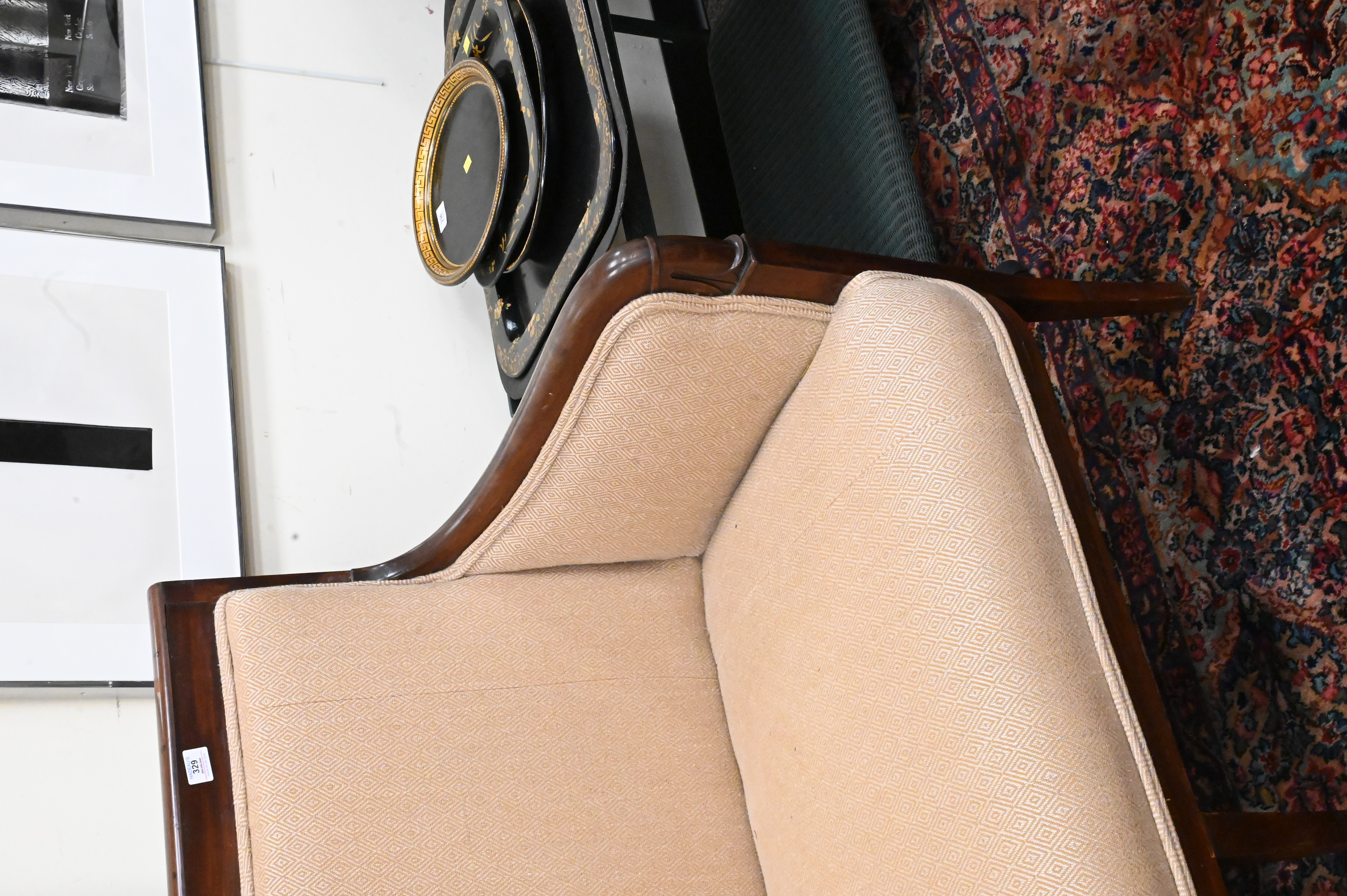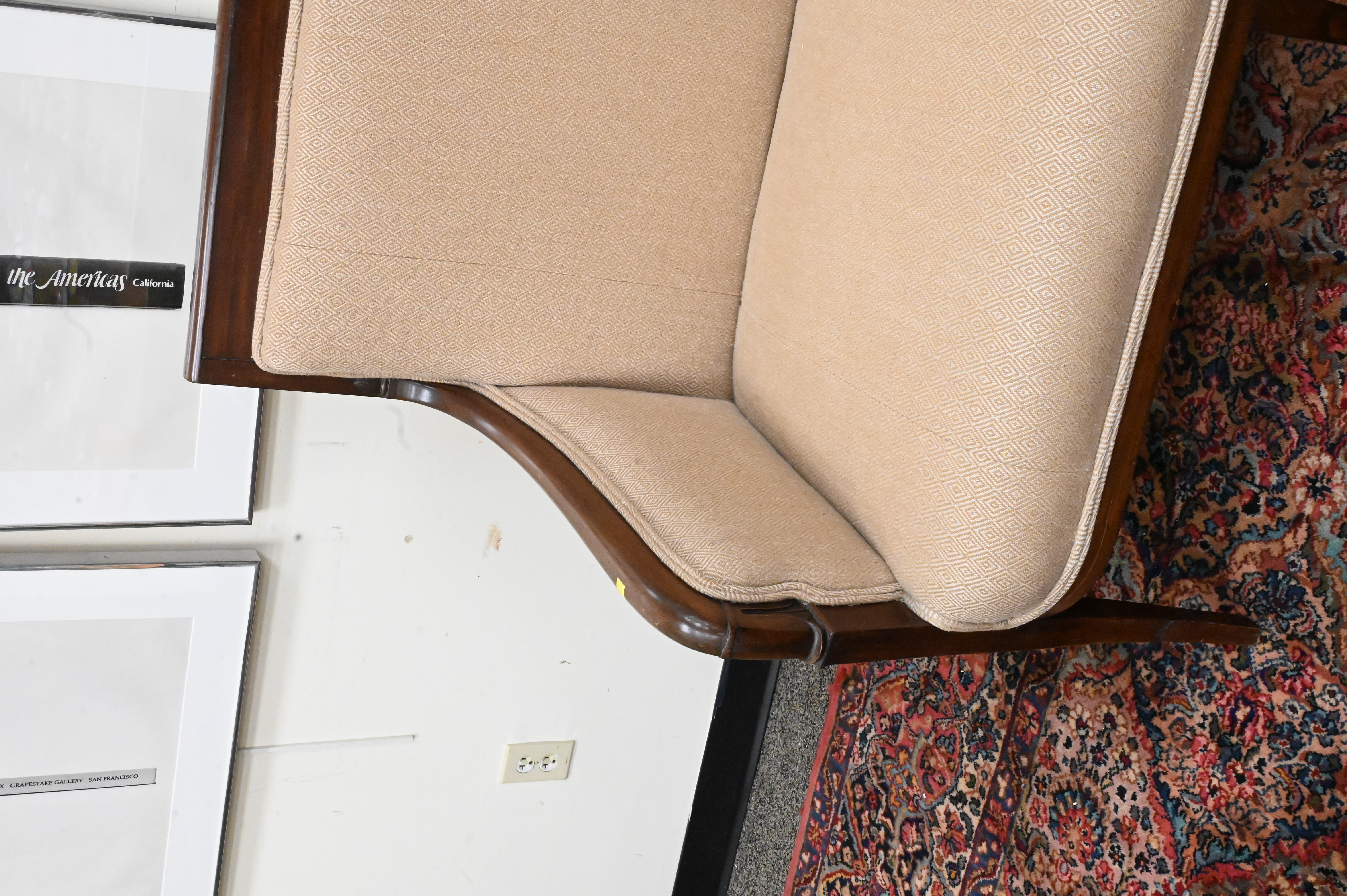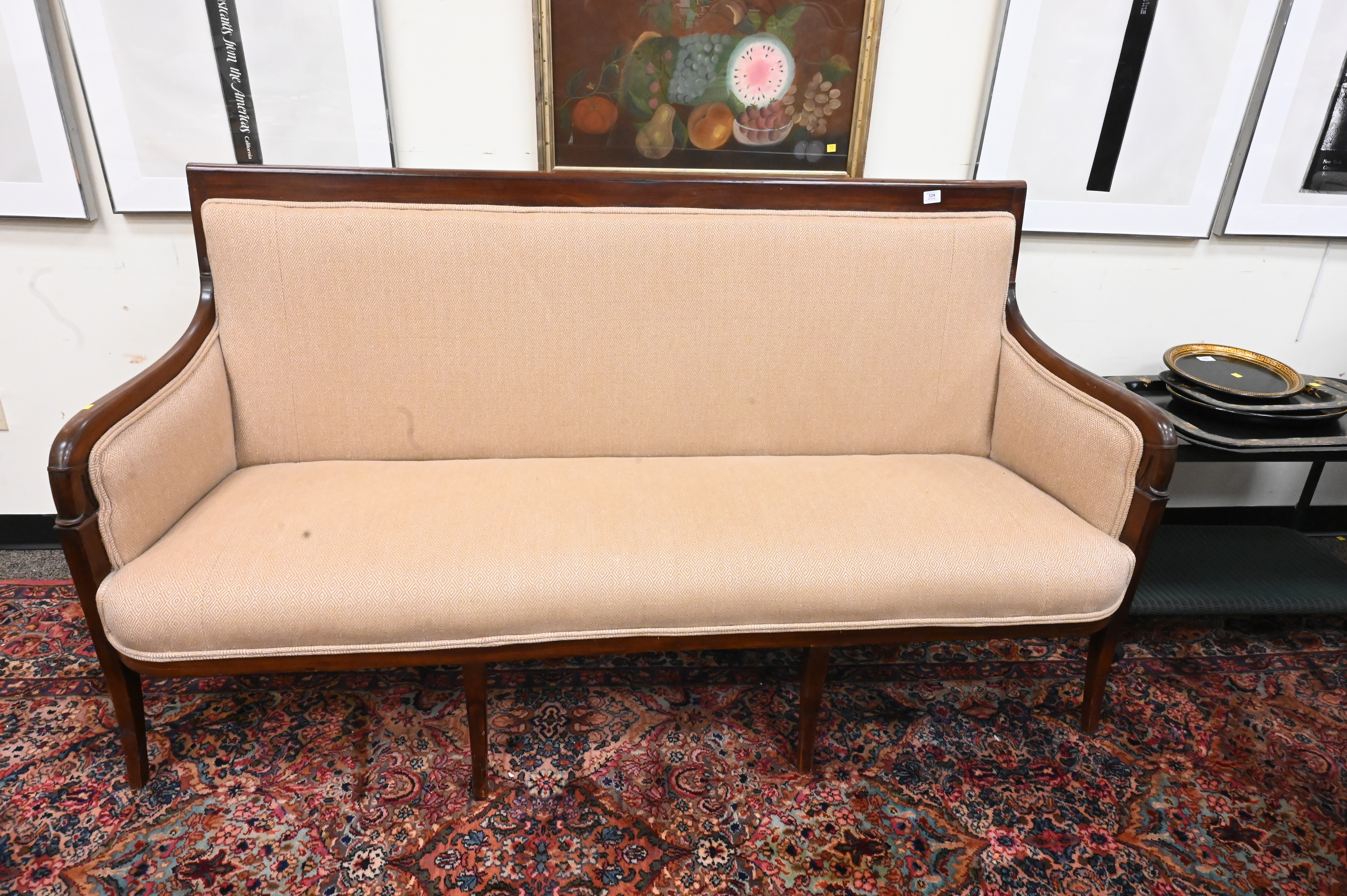 Continental Style Sofa, having mahogany frame, height 40 inches, length 77 inches.