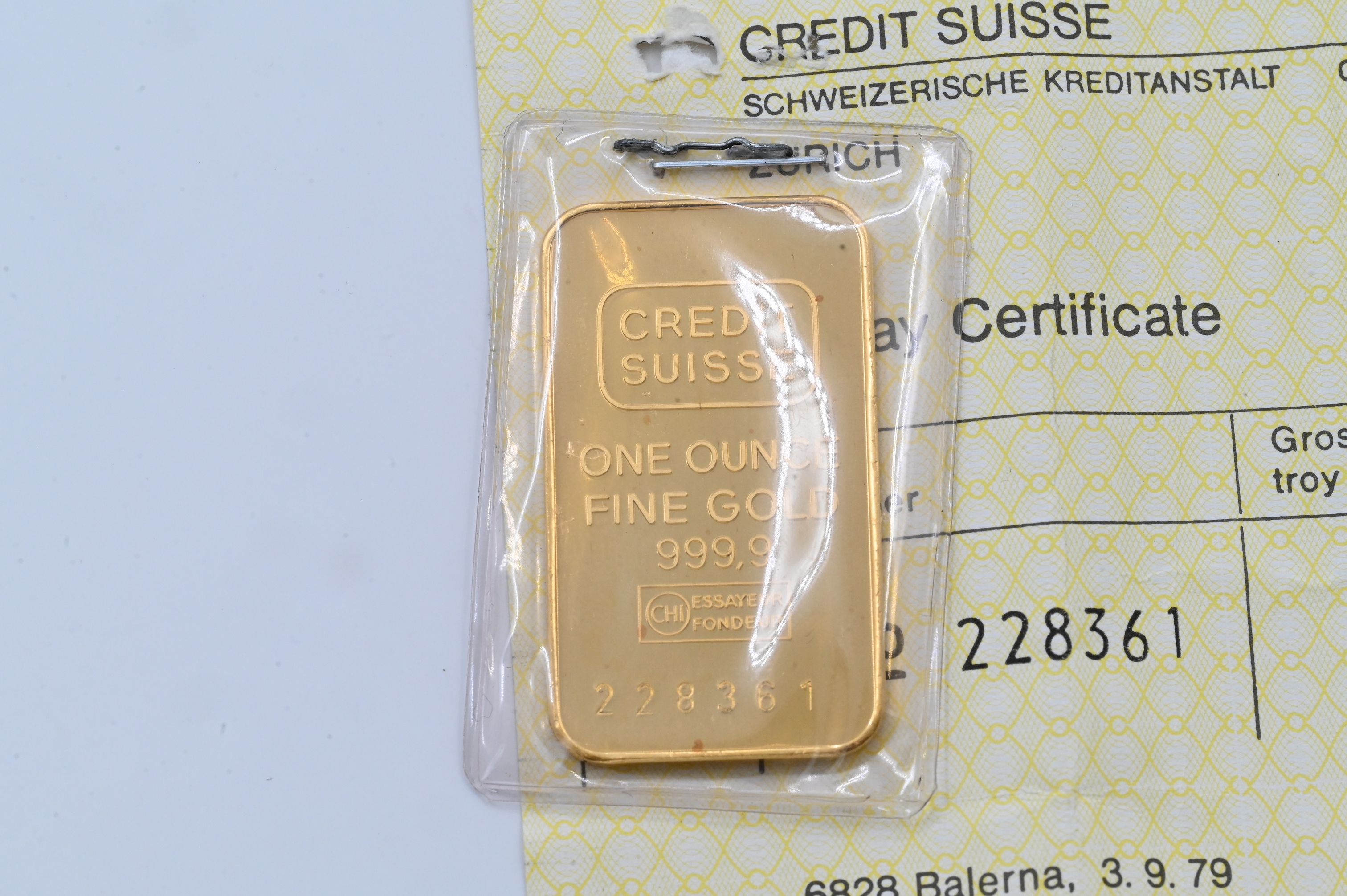Lot 329: Credit Suisse 1 Ounce Gold Bar